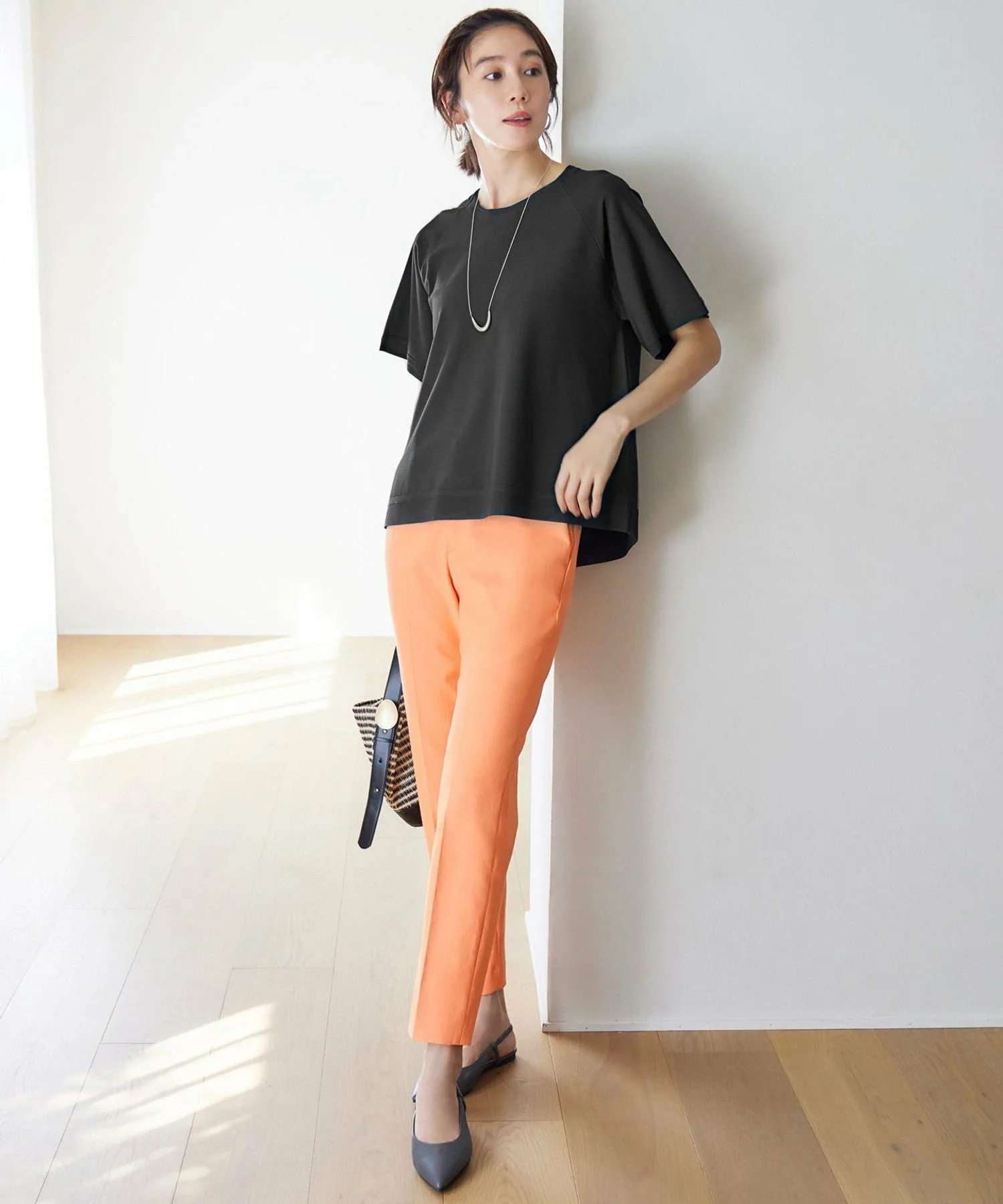 Трикотажная блузка с объемным расклешением для создания женственного образа. Дизайн: Эта блузка имеет красивый, мягкий и умеренно объемный А-образный силуэт с объемным расклешением. Лента по низу создает изящный силуэт, придавая образу женственность и подчеркивая фигуру. Длина спереди и сзади различается, что позволяет легко сочетать ее как с юбками, так и с брюками. Материал: Изготовлена из скрученной пряжи из вискозы и эластичного полиэстера. Эластичная текстура обеспечивает свободу движений и комфортную посадку, облегая тело для комфортного ношения. Плотно скрученная пряжа создает крепоподобную поверхность, обеспечивая сухость, свежесть и ощущение свежести, сохраняя при этом элегантную драпировку. Также обладает охлаждающими свойствами и защитой от УФ-излучения. Похожие товары: Вязаный пуловер (KRWRCM0452), Кардиган (KRWRGM0453), Комбинированный вязаный свитер с кружевом (KRWRGM0454) Обратите внимание, что представленные изображения являются образцами, и характеристики, отделка и размер фактического изделия могут незначительно отличаться от показанных. Благодарим за понимание. *Из-за условий съемки цвет может отличаться от реального изделия. Рост: 174 см, Обхват груди: 80 см, Обхват талии: 61 см, Обхват бедер: 86 см.