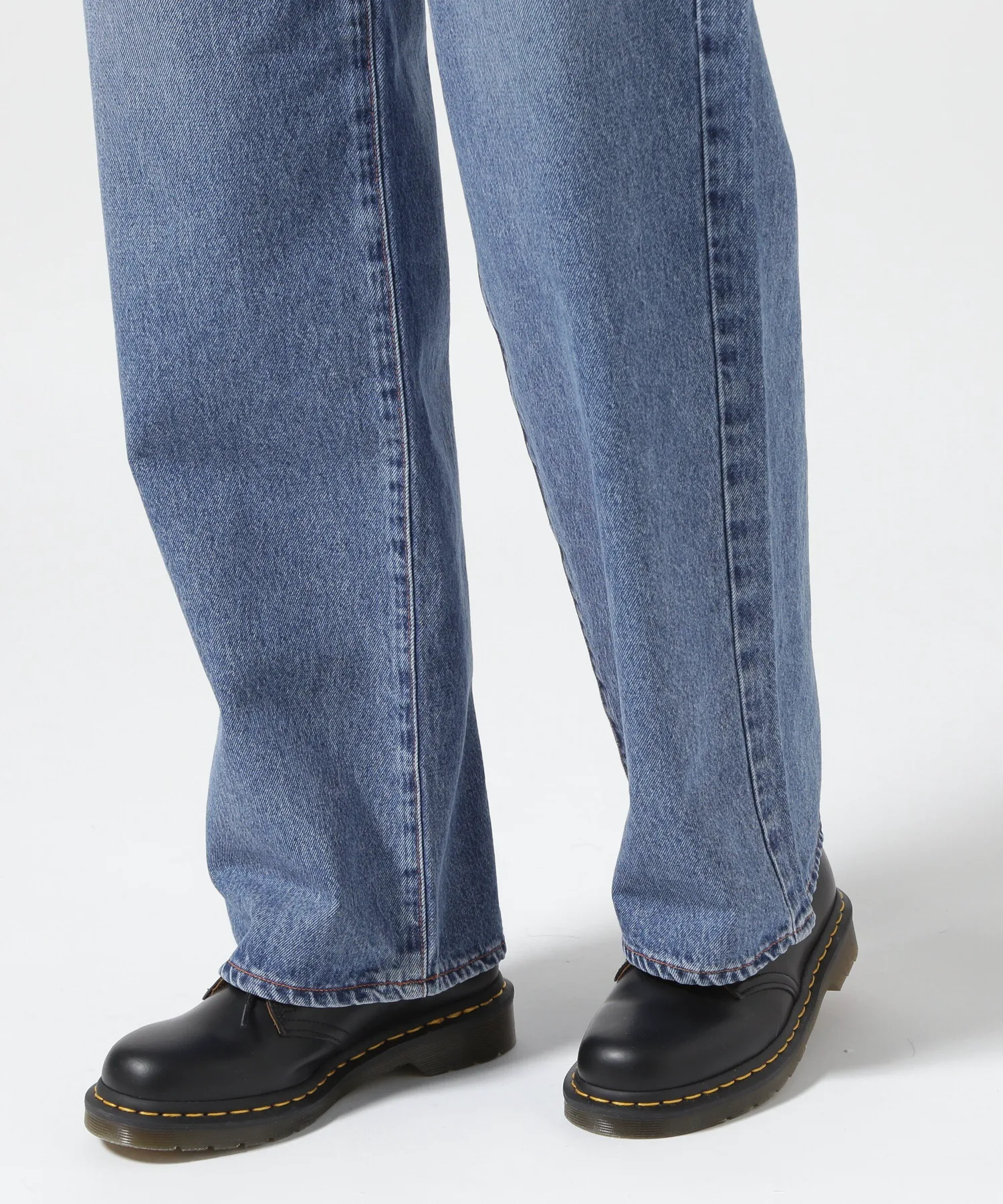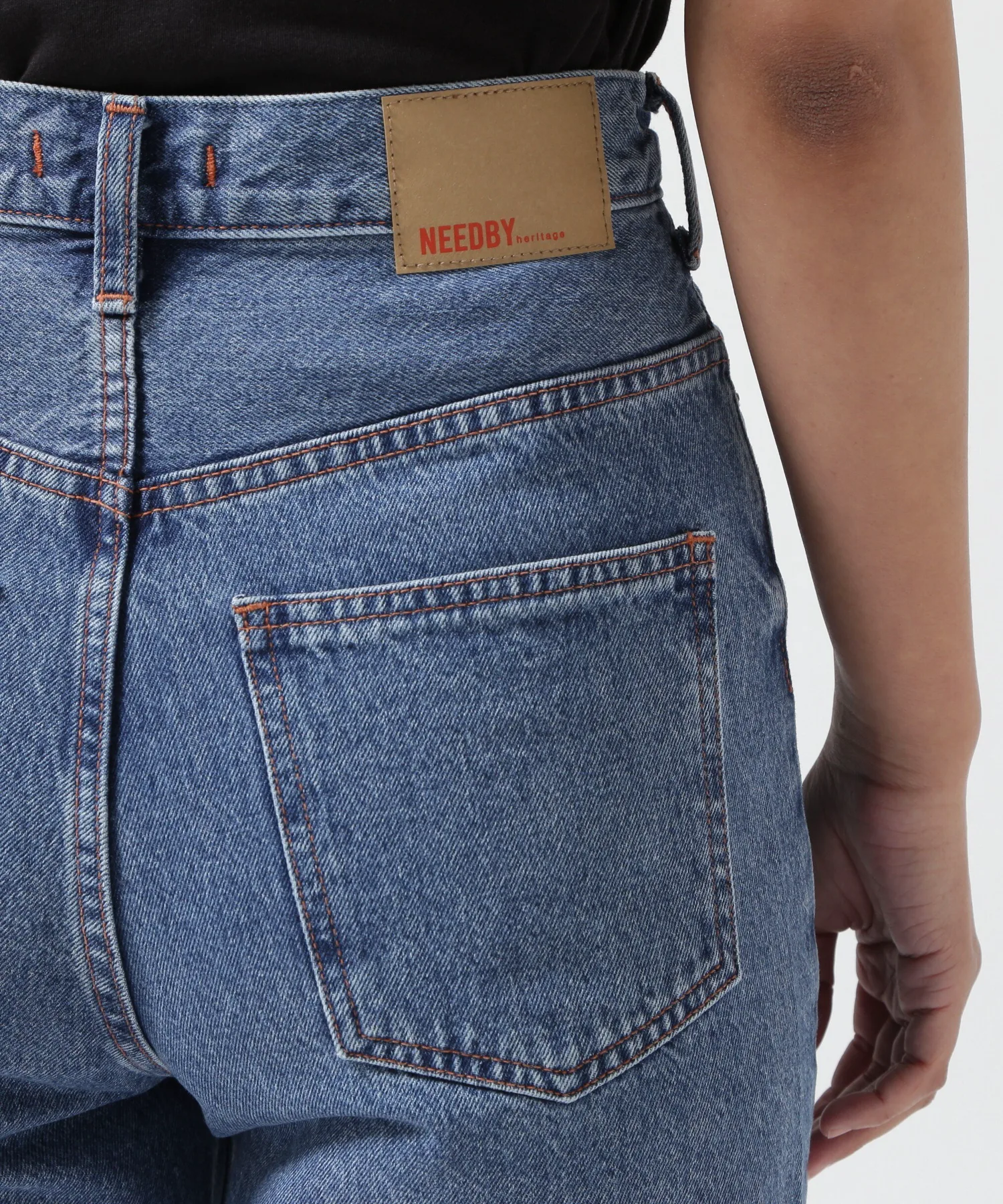 Хотя они широкие от бедер до низа, они облегают талию, подчеркивая фигуру. Они изготовлены из оригинальной джинсовой ткани NEEDBY с использованием нитей открытого типа в качестве утка. При разработке учитывались принципы экологичного производства с применением метода окрашивания i-Next. Мы экспериментировали с множеством прототипов, чтобы добиться фирменной текстуры NEEDBY, одновременно снижая затраты (на обработку, энергию, производство и т. д.), в результате чего получилась ткань с винтажным оттенком, уникальная для продукции, произведенной в Японии.