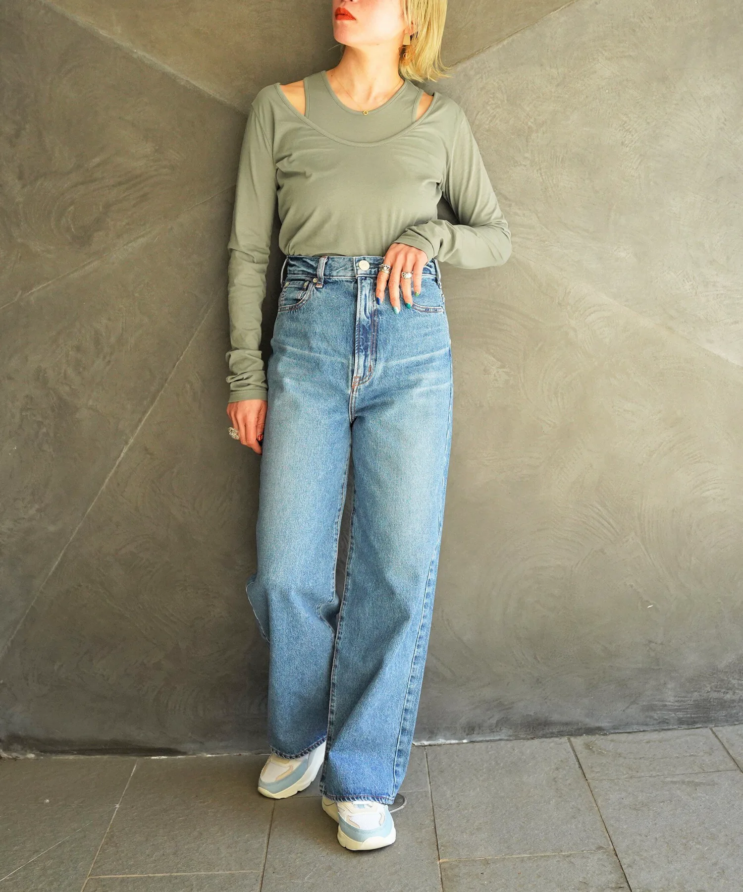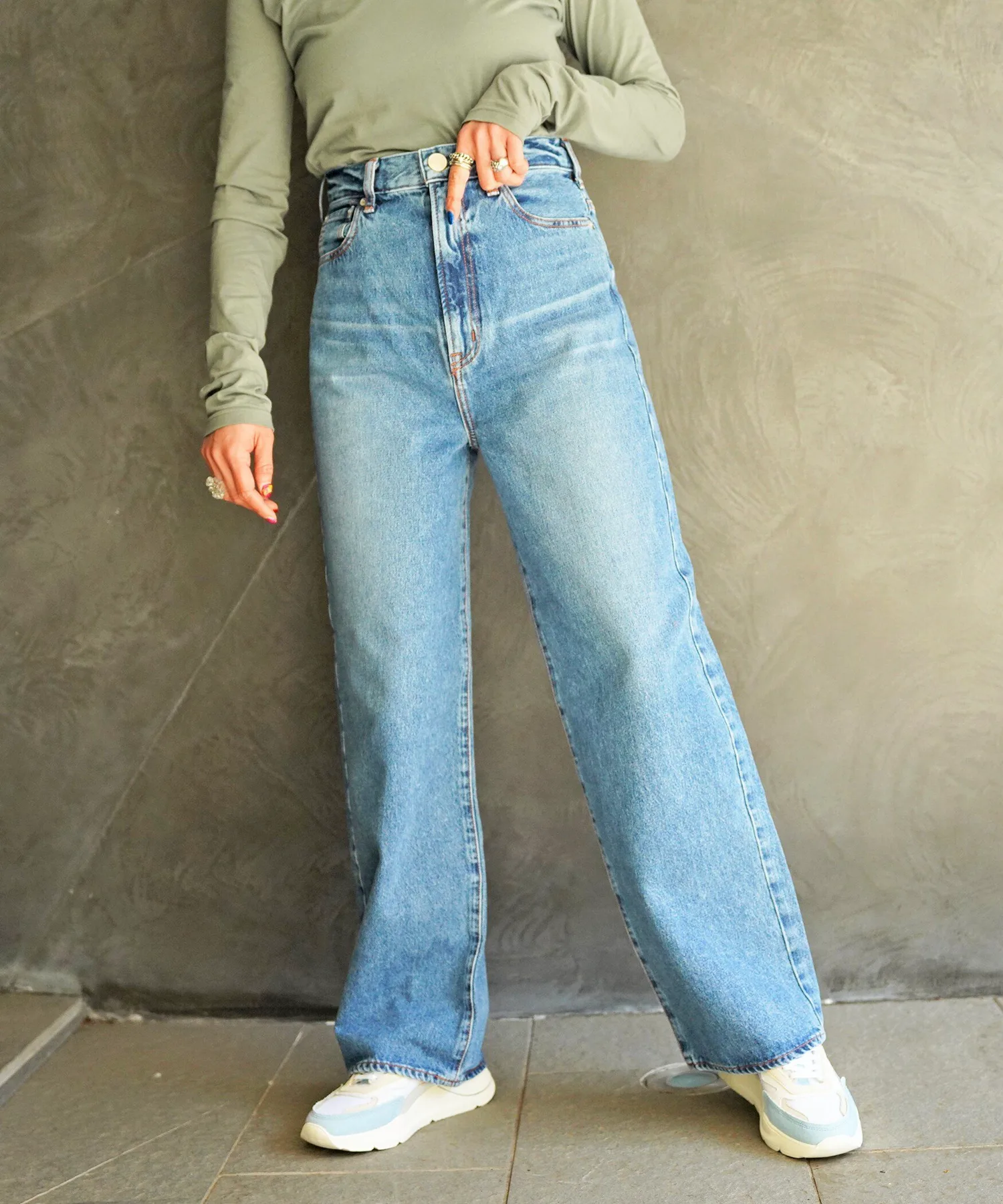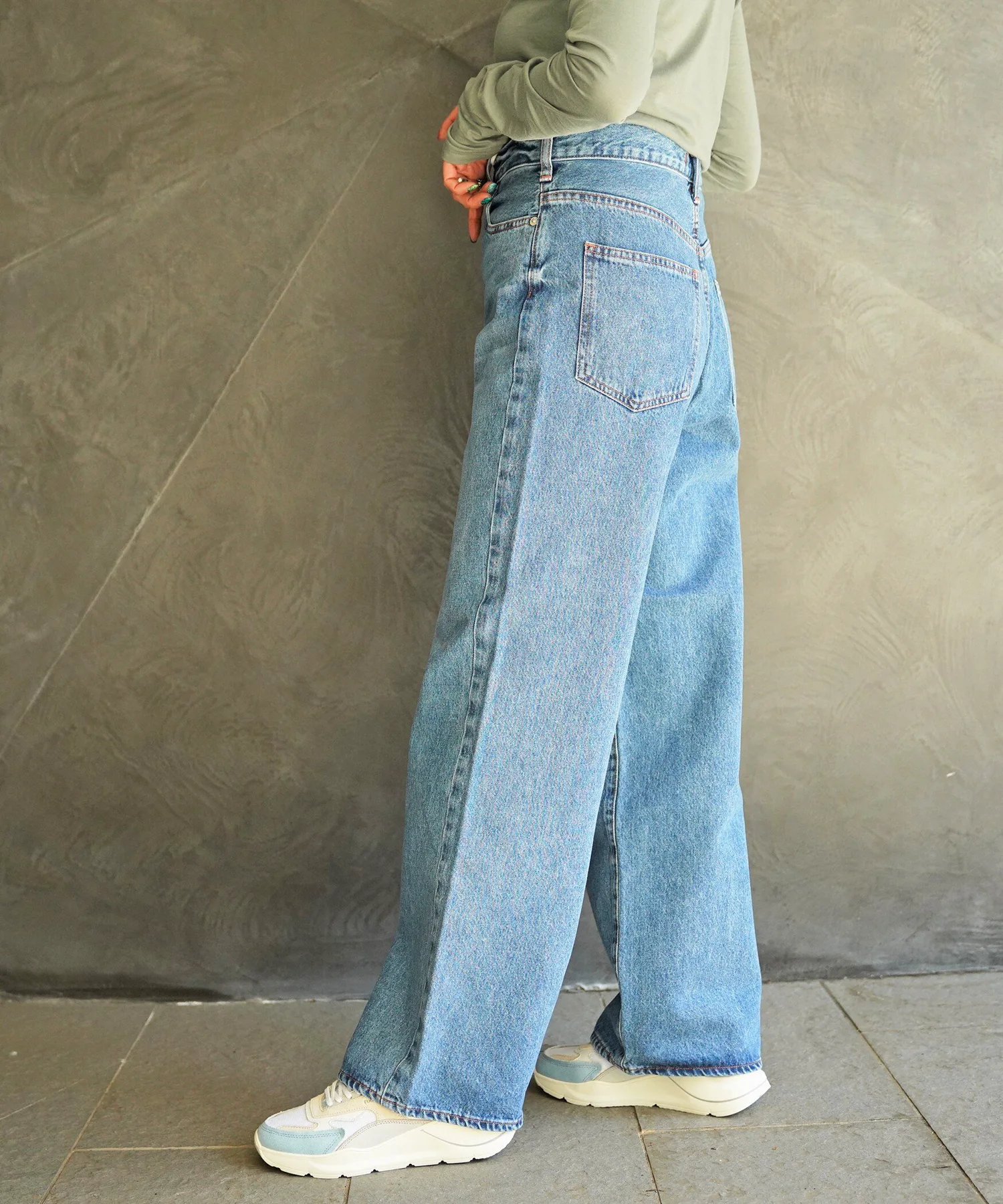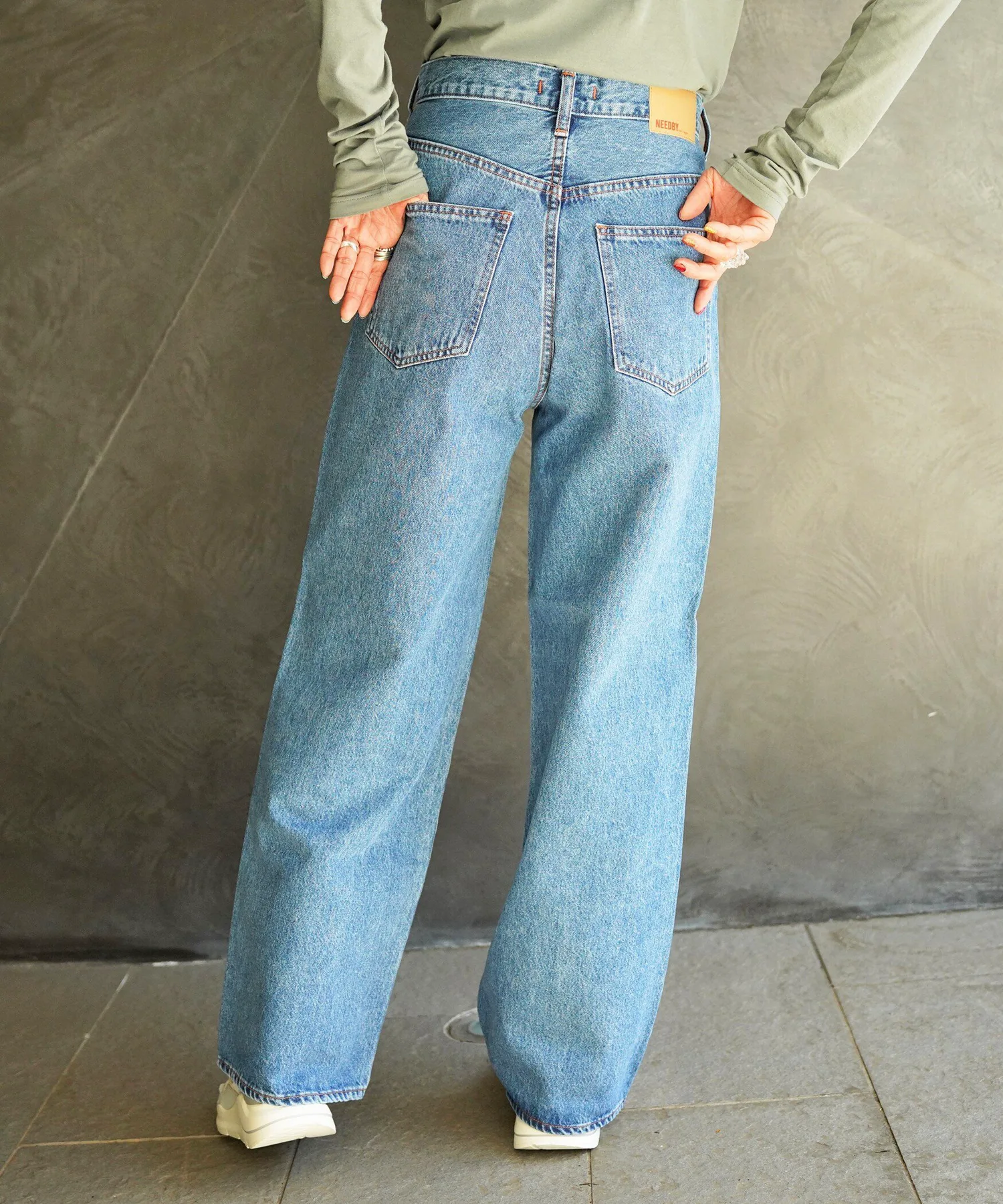 Хотя они широкие от бедер до низа, они облегают талию, подчеркивая фигуру. Они изготовлены из оригинальной джинсовой ткани NEEDBY с использованием нитей открытого типа в качестве утка. При разработке учитывались принципы экологичного производства с применением метода окрашивания i-Next. Мы экспериментировали с множеством прототипов, чтобы добиться фирменной текстуры NEEDBY, одновременно снижая затраты (на обработку, энергию, производство и т. д.), в результате чего получилась ткань с винтажным оттенком, уникальная для продукции, произведенной в Японии.