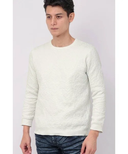 Жаккардовое полотно с оборками, выполненное из мохеровой пряжи и эластичной полиэстеровой пряжи. Благодаря использованию пряжи с разной текстурой, трикотажное полотно имеет едва заметный рельефный узор.
