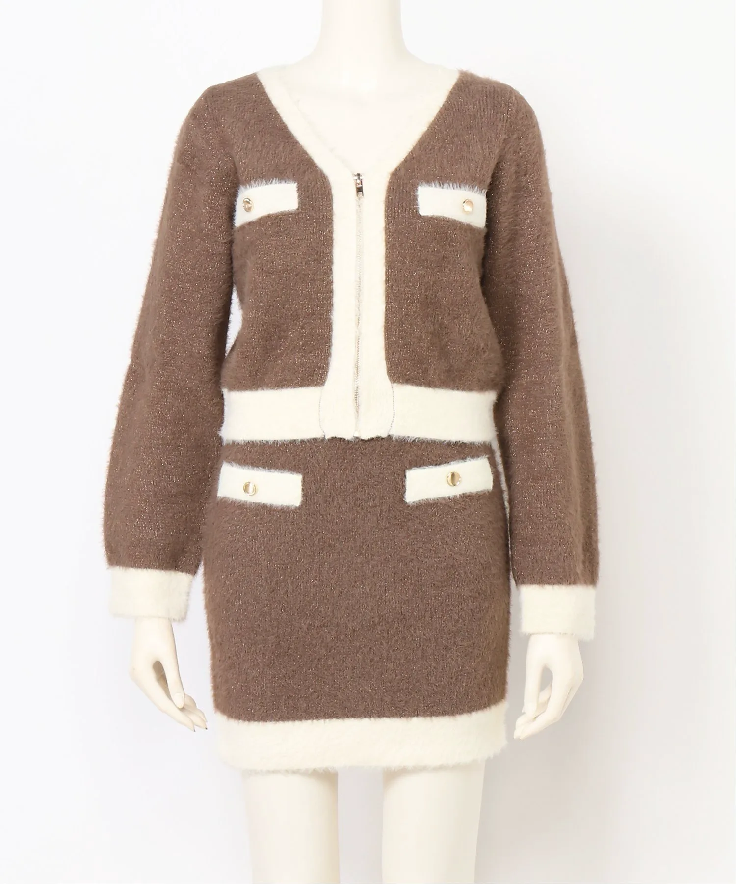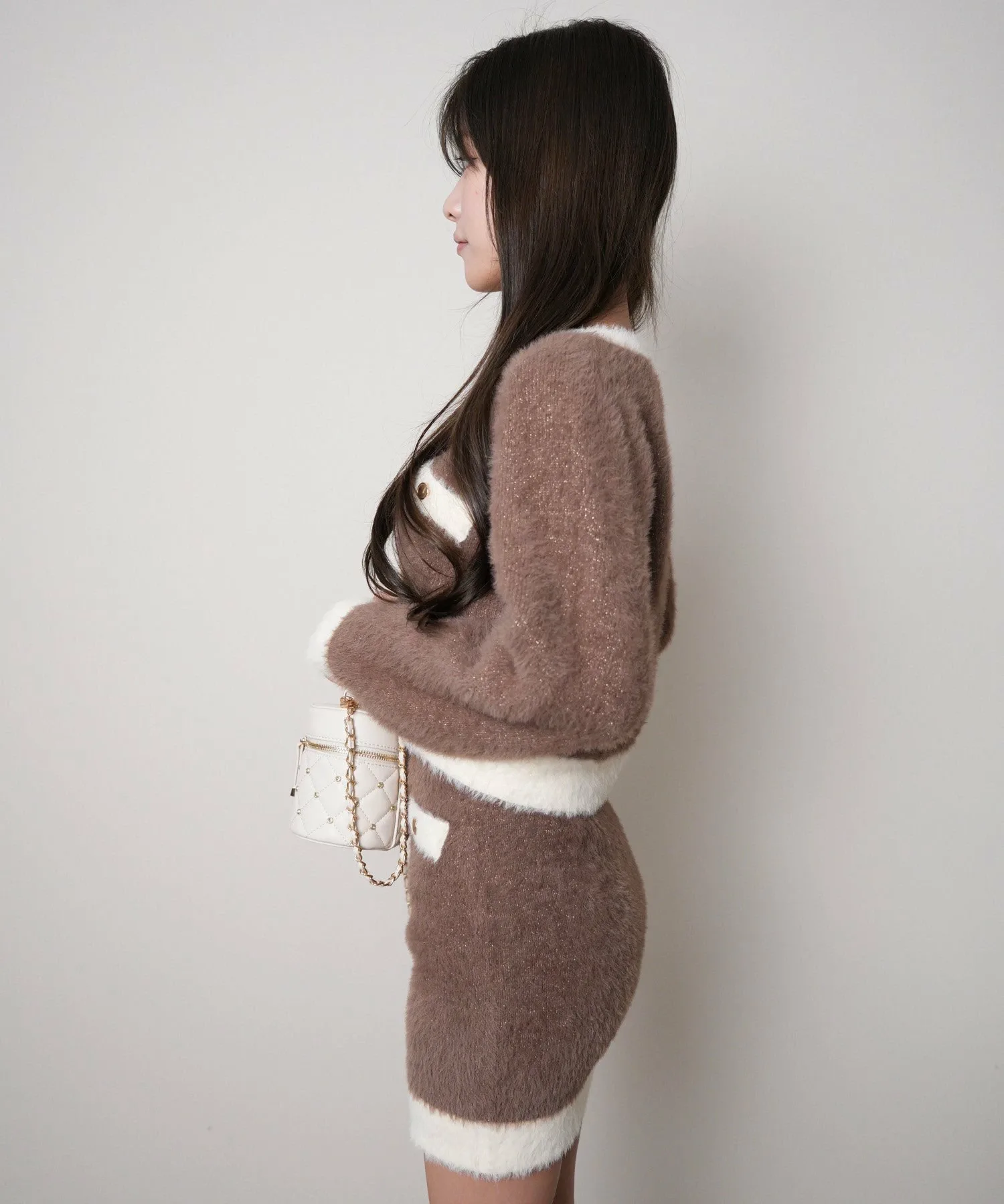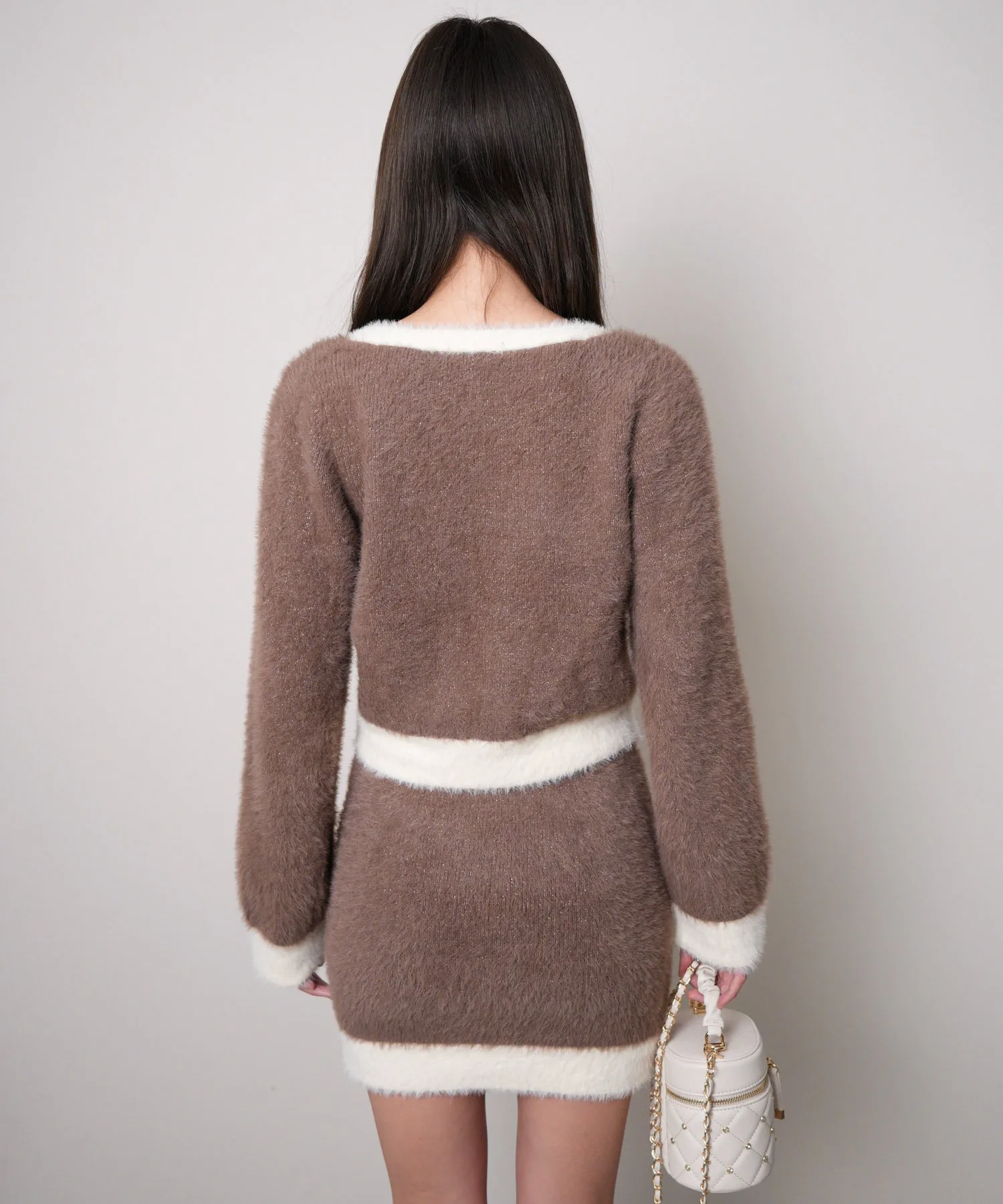 - Коричневый — трендовый цвет этого сезона, а двухцветное сочетание со слоновой костью — нежный оттенок.
