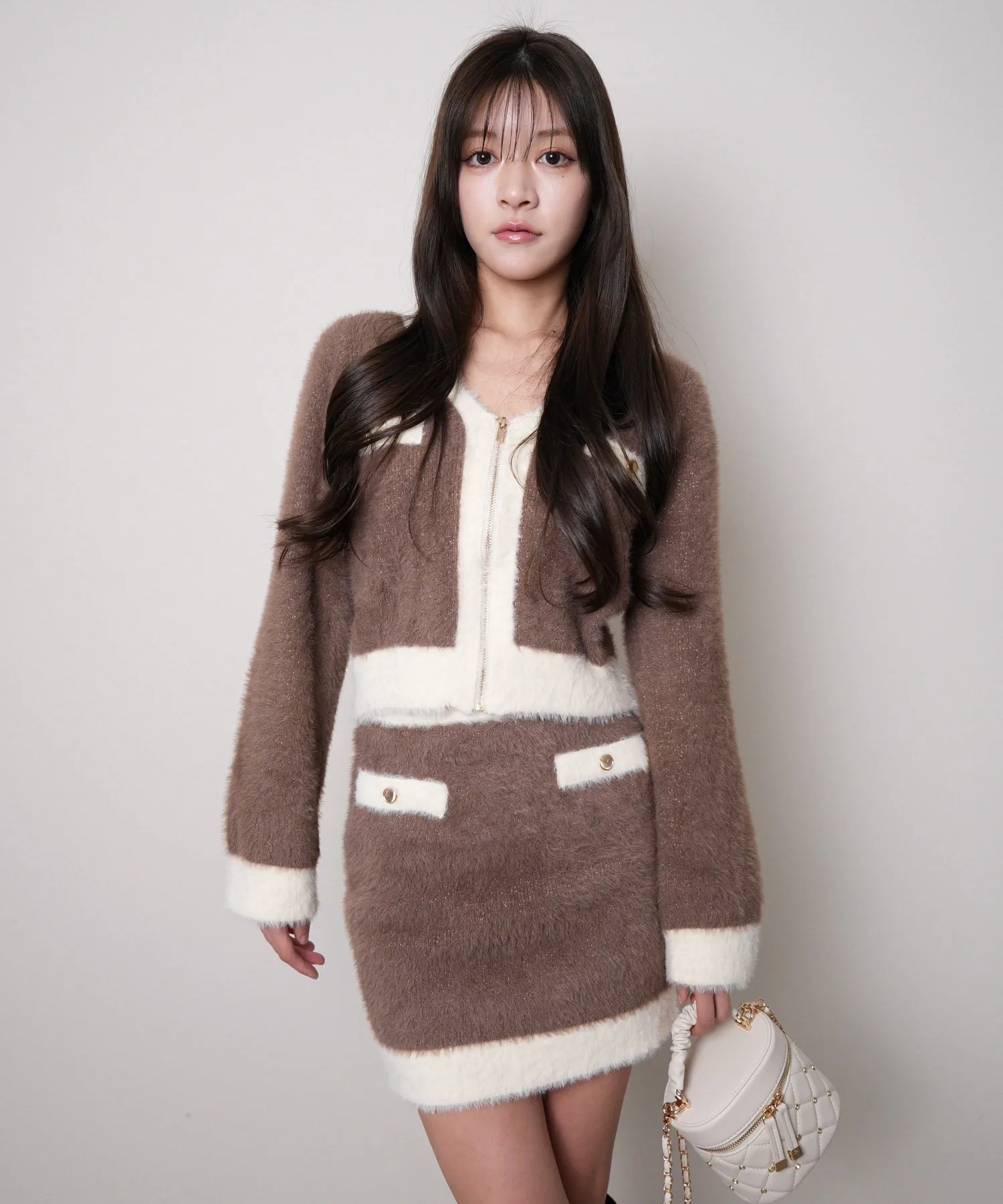 - Застежка-молния спереди добавляет акцент, не делая образ слишком слащавым.