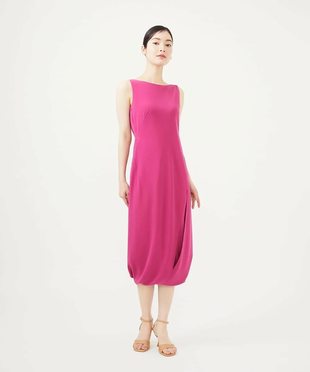 Все детали двухслойные, а подол имеет приподнятую петлю, создающую силуэт, напоминающий тюльпан.