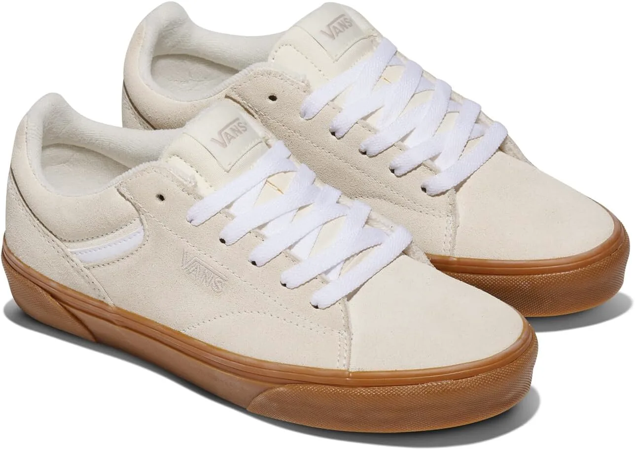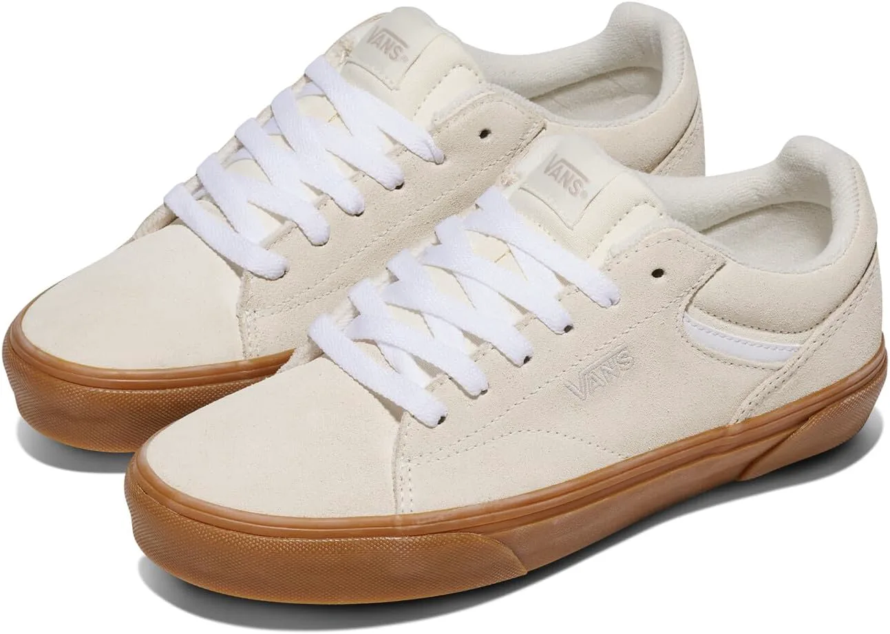 Теннисный стиль 90-х с изящными деталями Vans. Вернитесь к чистым линиям стиля 90-х с женскими кроссовками Seldan - низкими кроссовками с ретро-отсылкой и вечной привлекательностью. Вдохновляясь теннисной обувью и этой культовой модной декадой, эта обтекаемая модель сочетает верх из плотного холста, ребристые накладки на пятке и носке, а также простое вышитое фирменное оформление для безупречно стильного образа.