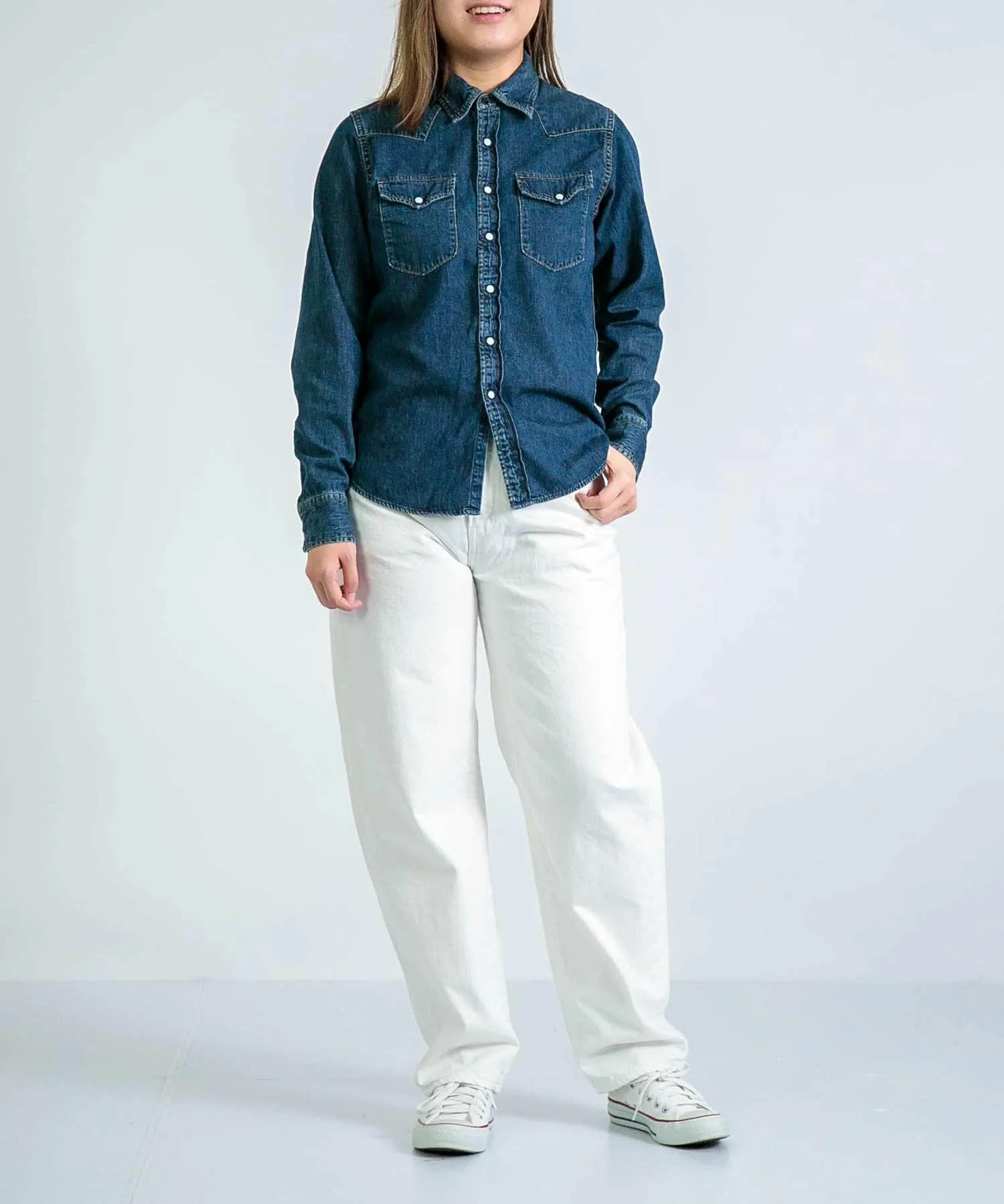 Деним цвета слоновой кости с неравномерной пряжей создает ощущение рабочей одежды. Мягкие узелки тут и там подчеркивают естественную текстуру и плотность пряжи.Денимовая ткань, изготовленная из темно-синей индиговой пряжи, плотностью 12,5 унций. Умеренно плотный материал обеспечивает ощущение прочности, но при этом приятен на ощупь. Эффект потертости создает вид поношенного денима.Трехмерный силуэт отличается красивыми изогнутыми линиями. Талия плотно облегает бедра, оставляя достаточно места в области бедер и ягодиц, а силуэт плавно переходит в более узкий подол. Платье создано таким образом, чтобы быть просторным, но при этом визуально уменьшать бедра. Простой дизайн подчеркивает линию силуэта.Просто сочетайте его с простой футболкой для стильного и сбалансированного образа.……………………Прозрачность: отсутствуетТолщина: обычнаяРастяжимость: отсутствуетПередняя часть: молнияМожно стирать: да……………………100% хлопок