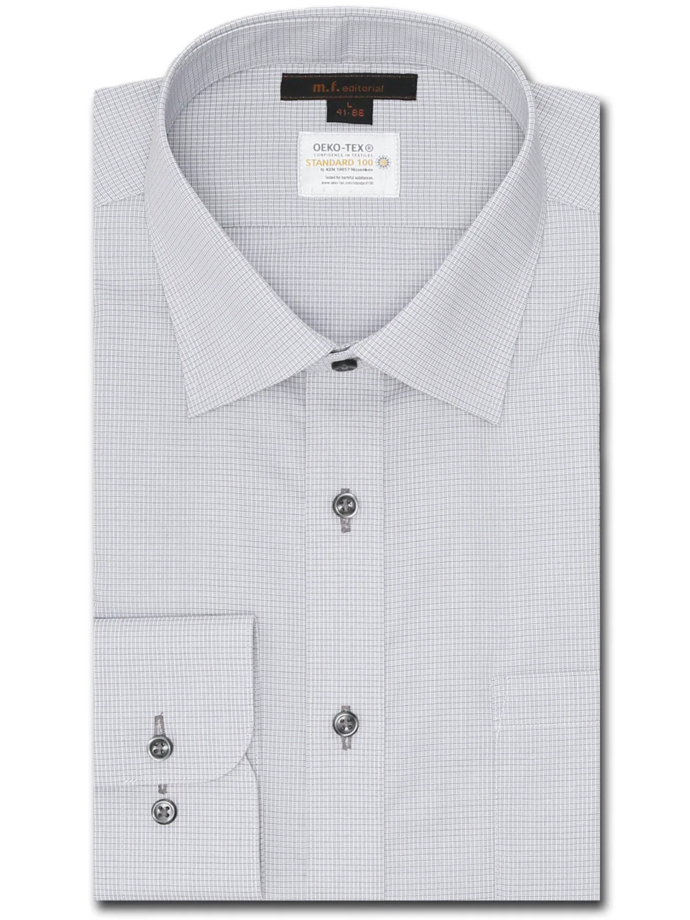 Рубашка стандартного кроя, с широким воротником и длинными рукавами, устойчивая к сминанию, влагоотводящая, стандартного кроя.