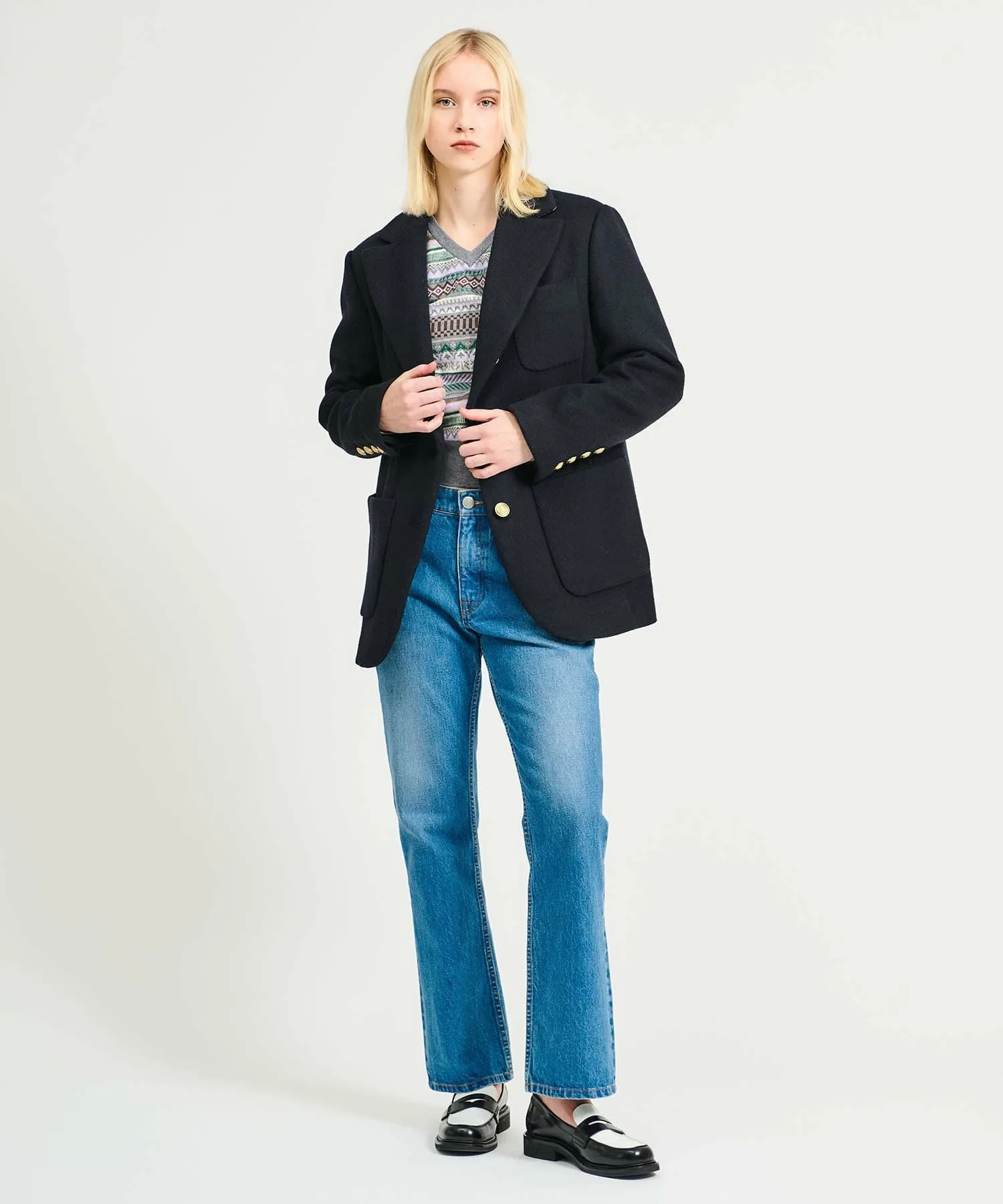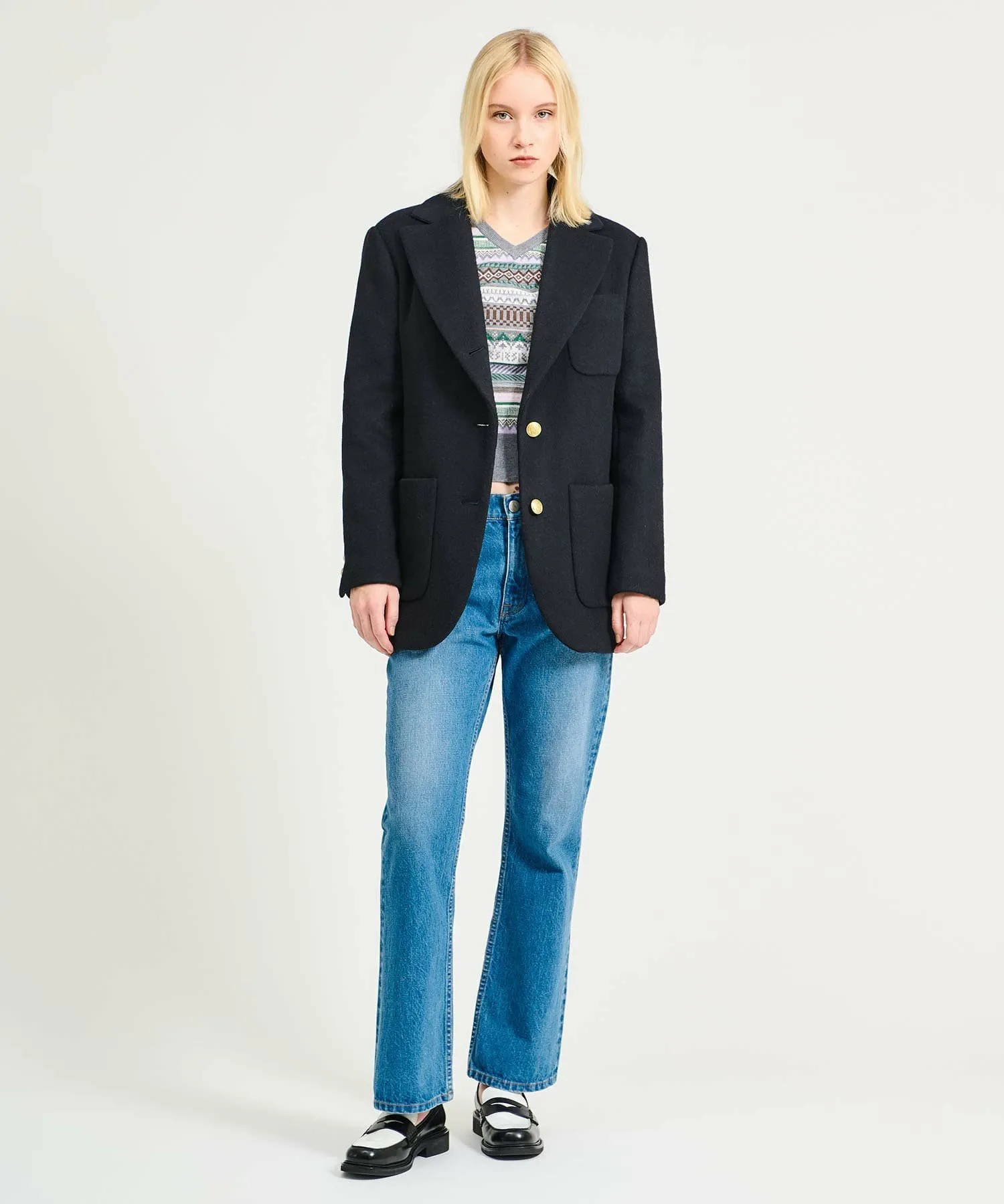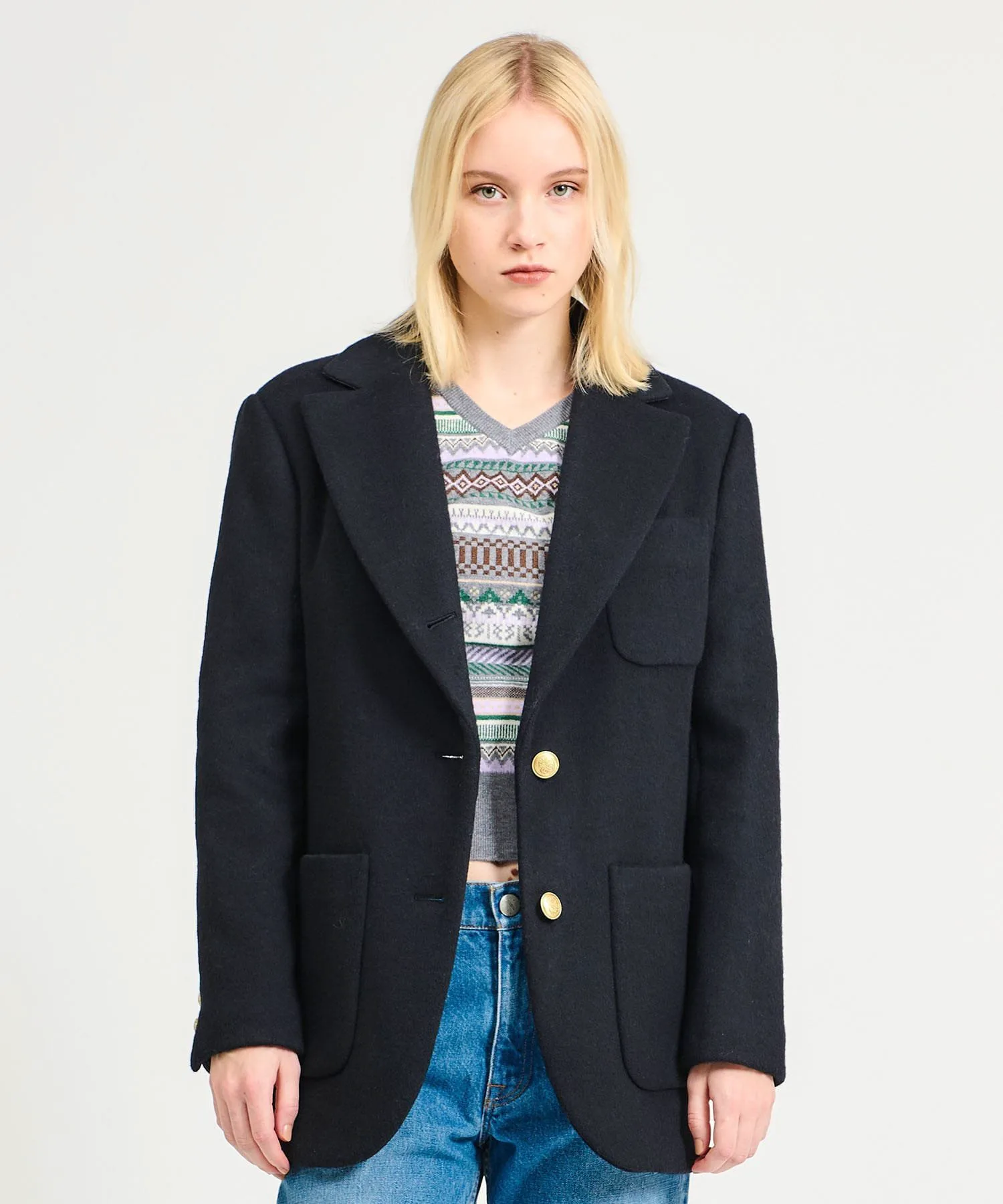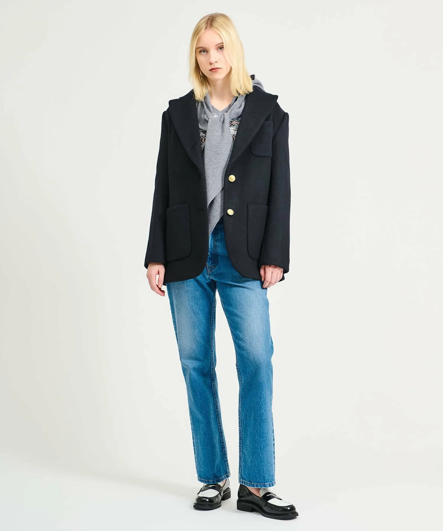 Пальто-жакет из прочной шерстяной ткани меланж.