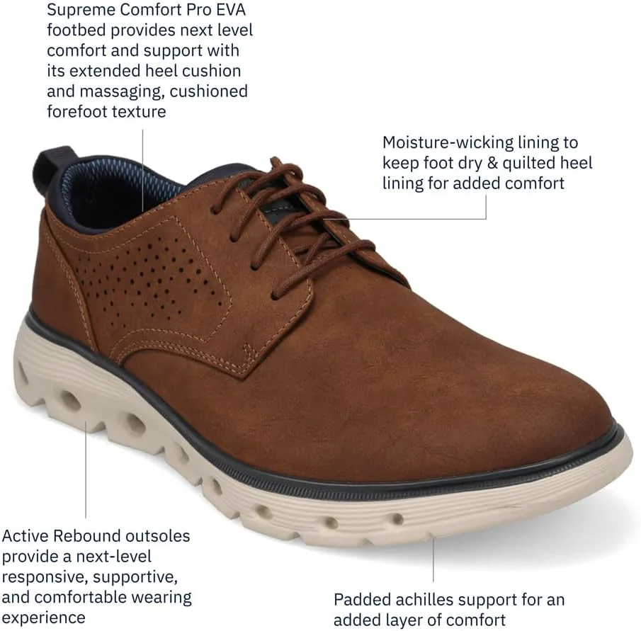Инновационные технологии обуви. Разработанные для долгосрочного комфорта, эти Oxford оснащены стелькой Dockers Supreme Comfort PRO EVA с удлиненной подушкой для каблука и поддержкой ахиллеса сухожилия. С массажирующей текстурой передней части стопы эти мужские кроссовки повышают комфорт, делая каждый шаг легким. Активная подошва с отскоком. Разработанная для гибкости и отзывчивости, эта продвинутая подошва движется естественно вместе с вашей ногой. Он впитывает нагрузку и обеспечивает устойчивую основу, чтобы вы чувствовали себя комфортно и уверенно с утра до вечера. Внутренняя подкладка этих оксфордов активно отводит влагу от стопы, помогая сохранять свежую и сухую атмосферу. Кроме того, стеганая микрофибра на столешнице добавляет дополнительный оттенок расслабления и дыхаемости. Материалы высокого качества. Гладкая синтетическая кожаная верхняя часть придает отполированный вид, оставаясь при этом легкой и удобной в ношении. Прочная конструкция обеспечивает долговечный стиль, делая эту мужскую обувь основным выбором как для работы, так и дляДля повседневных случаев. Модный стиль и вечная классика. Стройный силуэт гармонично сочетается с выразительной подошвой, создавая образ, который одновременно стильный и классический. Современный взгляд на вечный дизайн - эти оксфорды Dockers легко сочетаются с любым нарядом, от брюк до джинсов.