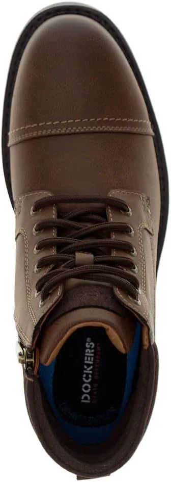 ДОЛГОВЕЧНЫЙ, НОВЫЙ УРОВЕНЬ КОМФОРТА. Стелька Supreme Comfort EVA обеспечивает превосходную амортизацию и поддержку на каждом этапе. Оснащенный чехлом для носков, отводящий влагу, он обеспечивает долгосрочный комфорт, сохраняя ваши ноги сухими, комфортными и расслабленными в течение любого дня. ПОДОШВА, ПОВЫШАЮЩАЯ СЦЕПЛЕНИЕ. Подошва TPR на этих мужских кроссовках обеспечивает исключительное сцепление, сохраняя стабильность на любой поверхности. Будь то прогулка по промокшим улицам или по неровным тропам, хват этих ботинков придает уверенности на каждом шагу. МЯГКИЙ ВОРОТНИК И ЯЗЫК. С мягкими воротниками и языками эти ботинки Dockers повышают комфорт и снижают раздражение голеностопа. Этот дополнительный слой амортизации помогает предотвратить дискомфорт во время длительного ношения, что делает эту обувь идеальной для использования в течение всего дня. ПРОЧНАЯ ВОДОСТОЙКАЯ ЗАЩИТА. Синтетические кожаные верхние части обработаны Stain Defender для защиты от воды и пятен для удобства ухода. Такое лечение гарантирует, что эти мужские ботинки оставаются свежими и чистыми, когда они стоят прижесткие условия повседневного ношения. УДОБНАЯ БОКОВАЯ МОЛНИЯ. Внутренняя молния на этих прочных ботинках обеспечивает легкое надевание и снятие, позволяя быстро надевать ботинки без ущерба для посадки или функциональности. Эта практичная особенность делает их использование в повседневной жизни более удобным.