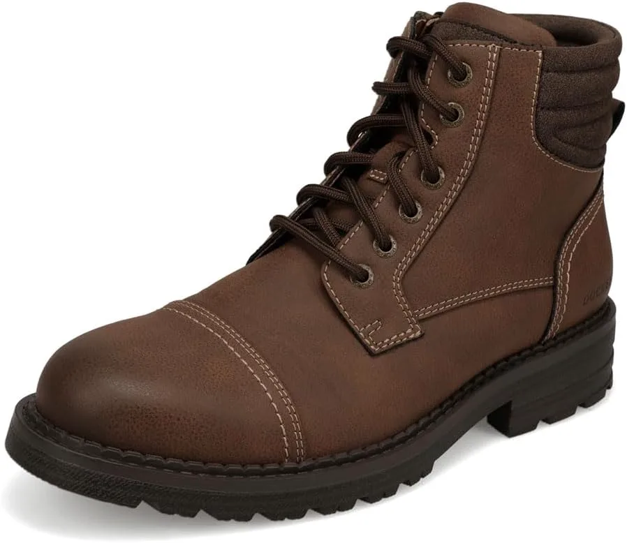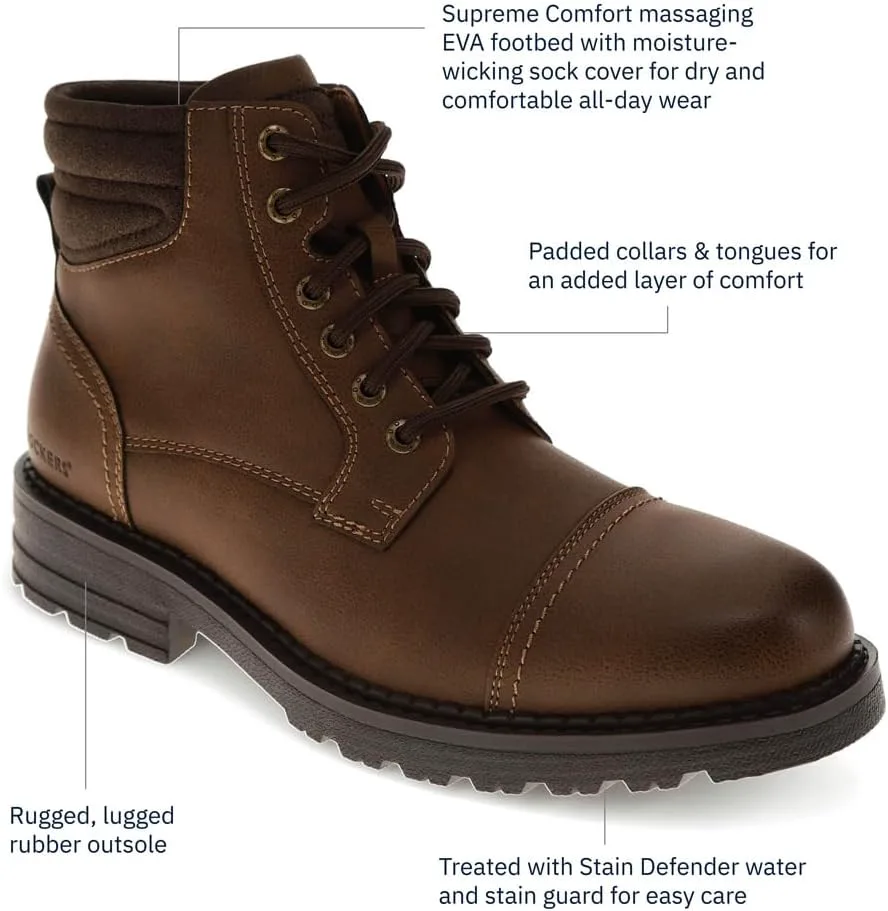 Начните свой день с уверенностью в ботинках Dockers Thomas, разработанных для сочетания практичности и стиля. С верхом из прочной синтетической кожи эти ботинки готовы противостоять любым погодным условиям. Обработанные защитой Stain Defender от воды и пятен, они так же просты в уходе, как и надежны. Стелька Supreme Comfort EVA с массажной, амортизирующей текстурой обеспечивает комфорт и поддержку на весь день. Внутренняя подкладка, отводящая влагу, сохраняет ваши ноги сухими даже в самые активные моменты. Прочная подошва TPR обеспечивает стабильность и сцепление на любой поверхности. Удобные боковые молнии для легкого надевания и снятия, а также мягкие воротники и язычки для дополнительного комфорта делают эти мужские ботинки идеальными как для городских прогулок, так и для выходных приключений, предлагая сочетание прочного повседневного стиля и высококачественной производительности в одном универсальном варианте.