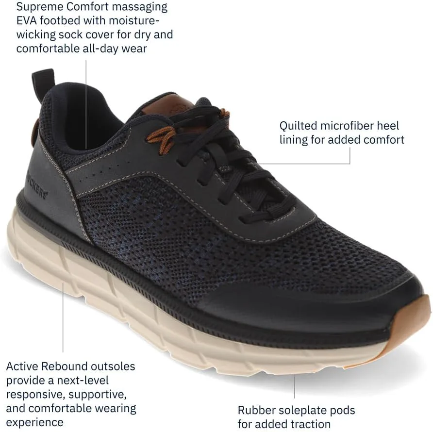 ВЫСШИЙ КОМФОРТ ЕВЫ. Разработанная для ношения на весь день, эта стелька обеспечивает исключительную амортизацию и ощущение массажа под ногами. Влагозабирающий чехол для носков в этих мужских кроссовках обеспечивает дышащимость, сохраняя ваши ноги прохладными и свежими с утра до вечера. ОТЗЫВЧИВАЯ, ГИБКАЯ ПОДОШВА. Легкая подошва EVA адаптируется к вашим движениям, обеспечивая естественный, свободный шаг. Будь вы на тренировке или на выходных, эта гибкая подошва обеспечит комфорт на каждом шагу. УЛУЧШЕННЫЙ КОНТРОЛЬ ТЯГИ. Резиновые подошвы на подошве обеспечивают дополнительное сцепление, обеспечивая устойчивость на любой местности. Исследуете ли вы город или отправляетесь на непринужденную прогулку, эти кроссовки помогут вам сохранять уверенность и устойчивость. ДЫШАЩИЕ И ПРОЧНЫЕ ВЕРХНИЕ ШТАНЫ. Сочетание синтетической кожи и трикотажного материала эти кроссовки Dockers создают стильный, современный стиль, не уступая долговечности. Вязаный дизайн улучшает поток воздуха, обеспечивая комфорт ваших стоп даже в самые теплые дни.