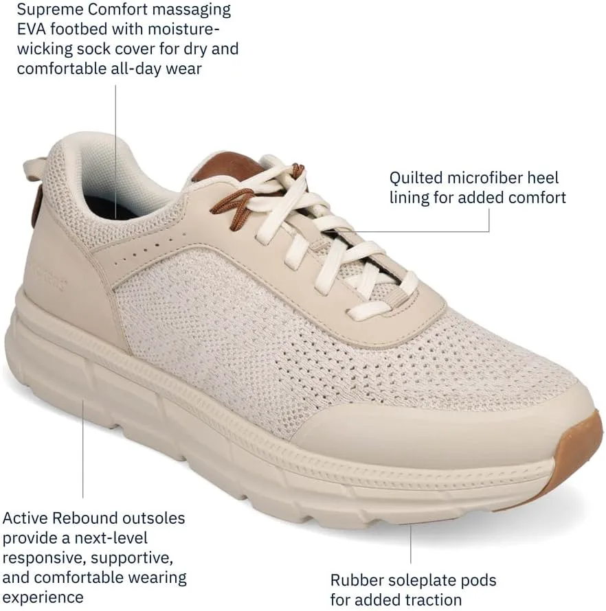 ВЫСШИЙ КОМФОРТ ЕВЫ. Разработанная для ношения на весь день, эта стелька обеспечивает исключительную амортизацию и ощущение массажа под ногами. Влагозабирающий чехол для носков в этих мужских кроссовках обеспечивает дышащимость, сохраняя ваши ноги прохладными и свежими с утра до вечера. ОТЗЫВЧИВАЯ, ГИБКАЯ ПОДОШВА. Легкая подошва EVA адаптируется к вашим движениям, обеспечивая естественный, свободный шаг. Будь вы на тренировке или на выходных, эта гибкая подошва обеспечит комфорт на каждом шагу. УЛУЧШЕННЫЙ КОНТРОЛЬ ТЯГИ. Резиновые подошвы на подошве обеспечивают дополнительное сцепление, обеспечивая устойчивость на любой местности. Исследуете ли вы город или отправляетесь на непринужденную прогулку, эти кроссовки помогут вам сохранять уверенность и устойчивость. ДЫШАЩИЕ И ПРОЧНЫЕ ВЕРХНИЕ ШТАНЫ. Сочетание синтетической кожи и трикотажного материала эти кроссовки Dockers создают стильный, современный стиль, не уступая долговечности. Вязаный дизайн улучшает поток воздуха, обеспечивая комфорт ваших стоп даже в самые теплые дни.