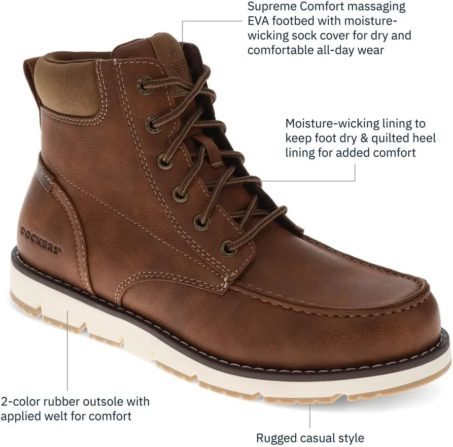 Материалы высокого качества и мастерское исполнение. Верх из синтетической кожи и конструкция с пришитой подошвой не только усиливают прочность ботинка для долгого использования, но и добавляют эстетичности.дополнительный штрих стиля. Эти эффектные детали обеспечивают долговечность, сохраняя при этом элегантный, отполированный вид ботинок. Вневременной прочный стиль для любого случая. Эти ботинки Dockers сочетают в себе грубую привлекательность и повседневную изысканность, легко переходя от приключений на свежем воздухе к непринужденным социальным мероприятиям. Классический дизайн подчеркивает любой повседневный образ, добавляя как стиль, так и функциональность.
