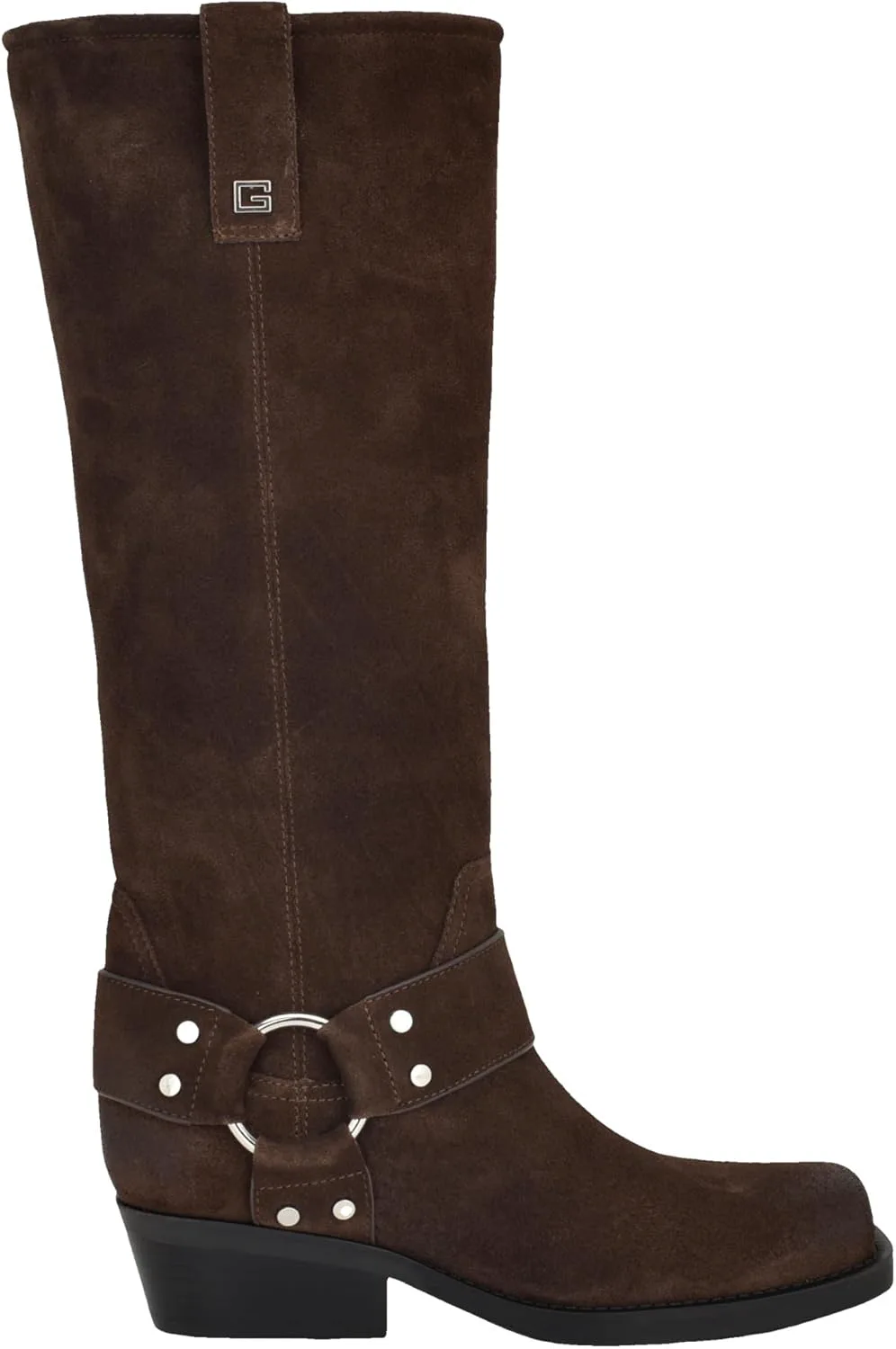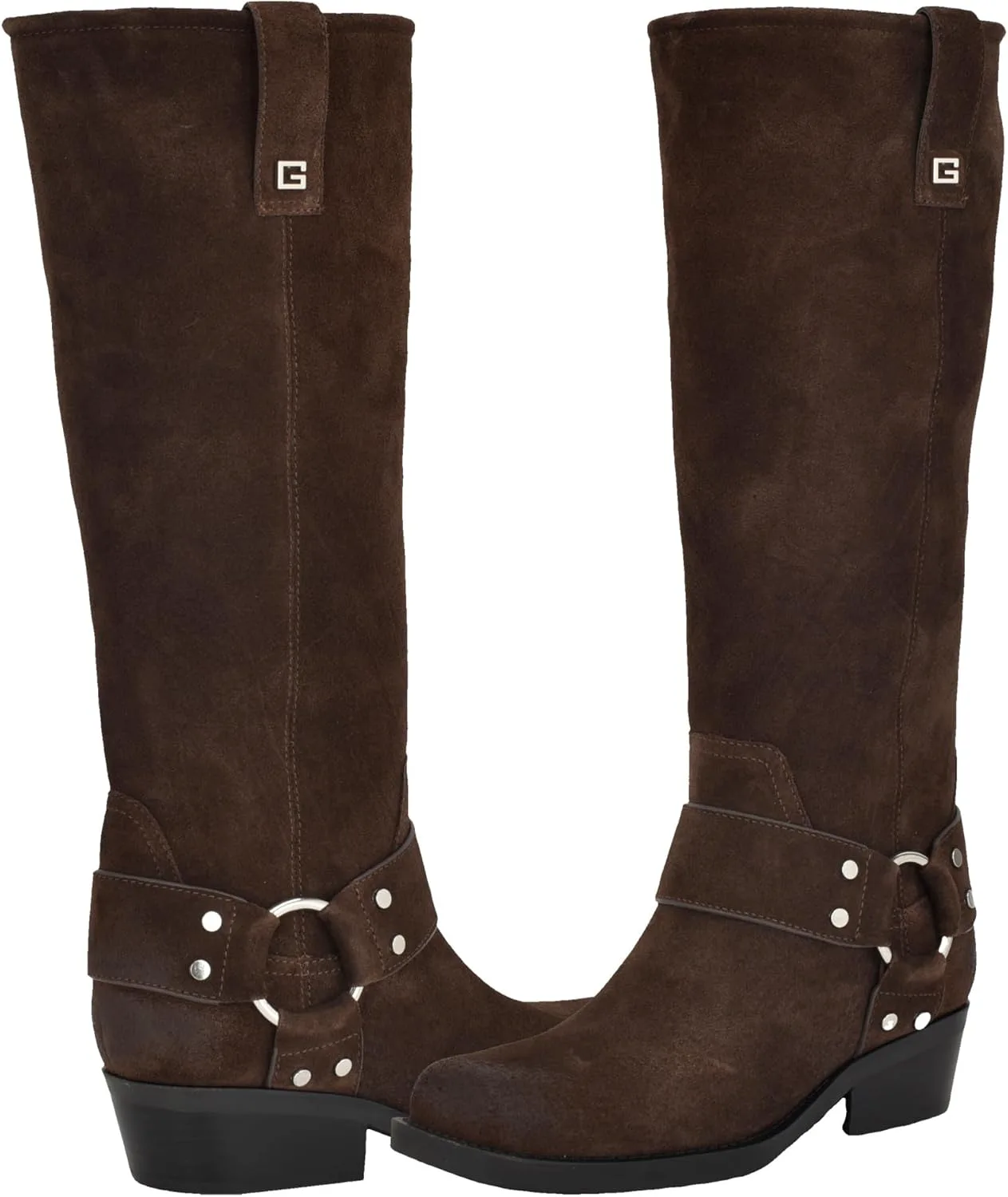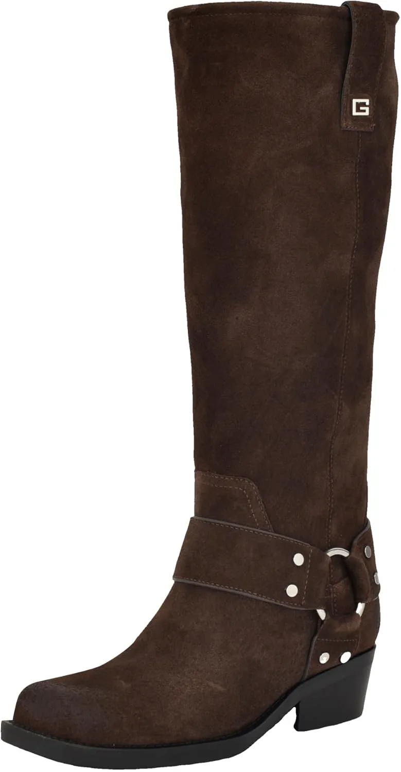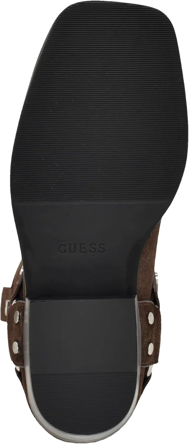 Ботинок Guess Felysse с квадратным носком, вдохновленным мотоциклетной обувью, с элементами западного стиля. Выполненный из замши, с металлическими деталями и петлями для облегчения надевания, он имеет элегантный и уникальный дизайн. Основанная в 1981 году, Guess - это глобальный бренд в сфере образа жизни и символ молодой, авантюрной жизни.
