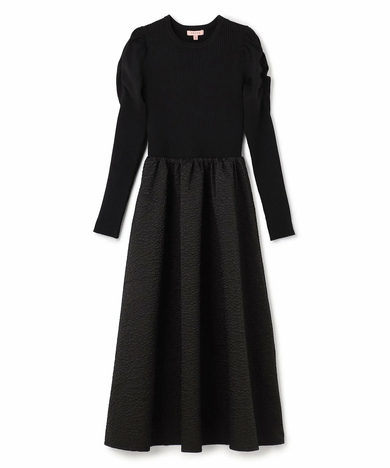 Это платье сочетает в себе комфорт и изысканность, сочетая в себе трикотажный верх и тканую юбку, создавая привлекательное сочетание различных материалов. Верх выполнен из мягкого, облегающего трикотажа, а изящные детали на плечах придают платью утонченный вид. Юбка сшита из модной фактурной жаккардовой ткани с цветочным узором, создавая красивый силуэт, мягко струящийся при каждом движении. Платье не имеет молний или других застежек, что позволяет легко надевать и снимать его, сохраняя при этом изысканный вид. Добавьте жакет или жемчужные или золотые аксессуары для стильного образа, будь то работа, учеба или посещение особых мероприятий. Универсальная вещь, которую можно носить как на работе, так и в повседневной жизни, сочетая с различной обувью и аксессуарами для сумок. У нас также есть трикотажные топы из того же материала. [Материал] Устойчив к смятию и сохраняет красивый силуэт даже при длительном сидении. Легкий и удобный в ношении. ☆ Толщина ткани: Обычная