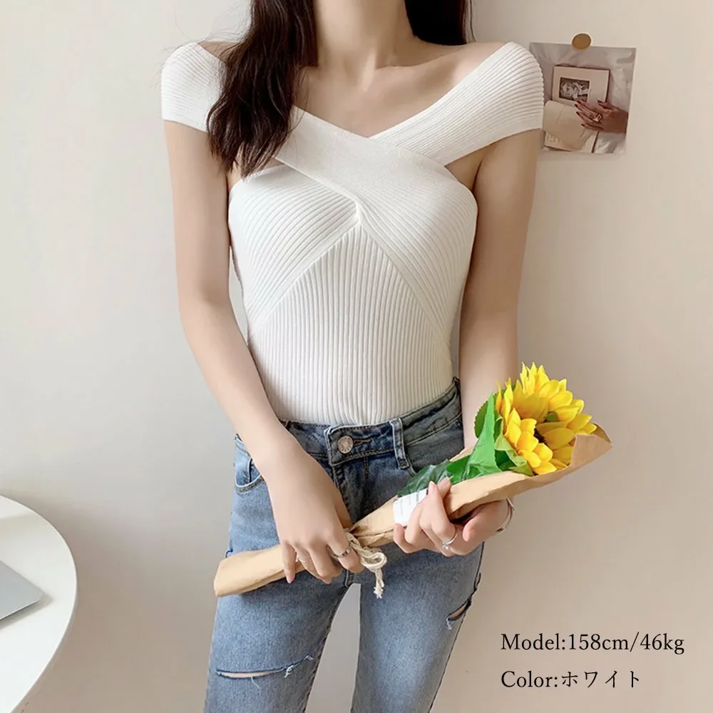 Женский трикотажный топ, перекрестный узор, сексуальная ребристая вязка, V-образный вырез, однотонный, трикотаж с открытыми плечами, облегающее трикотажное нижнее белье