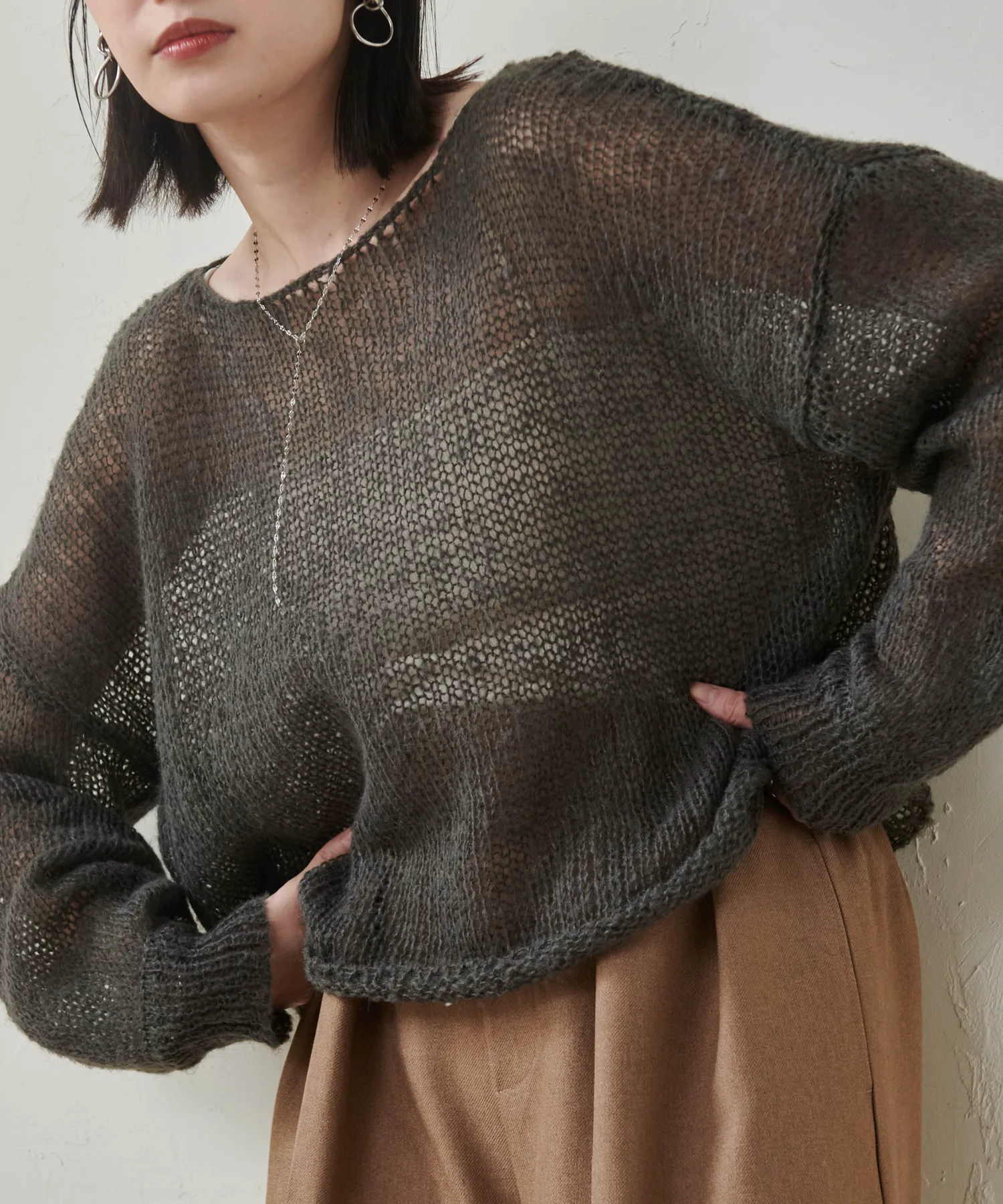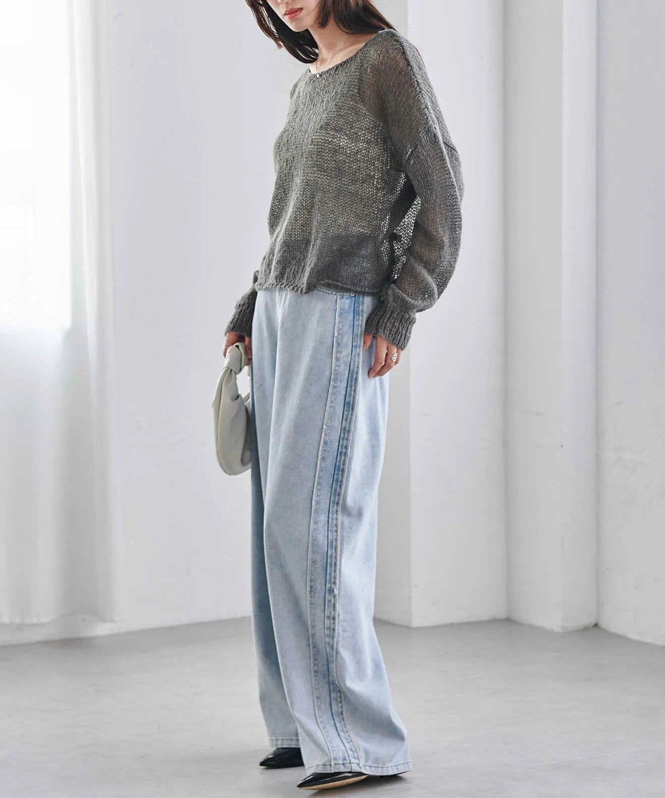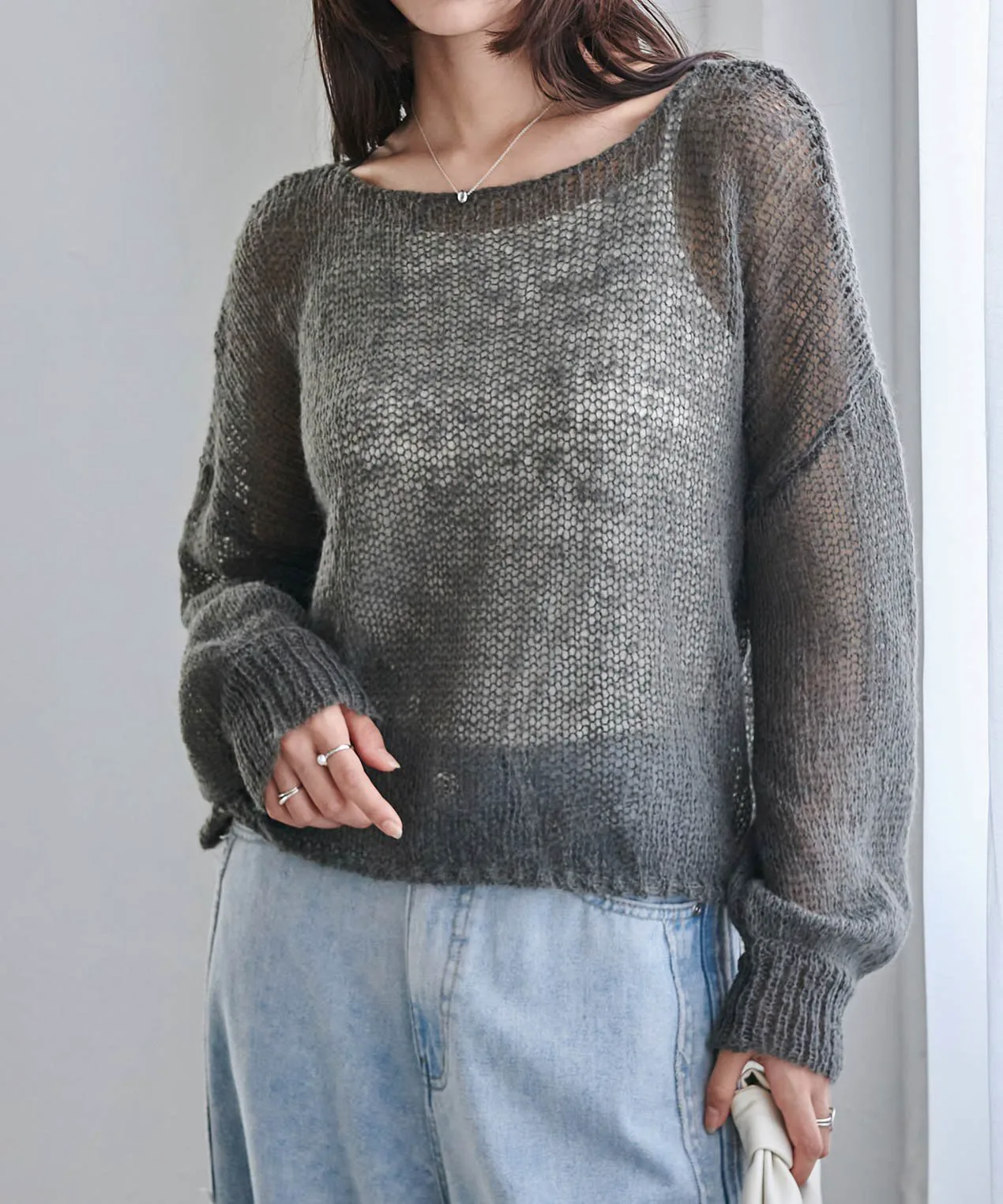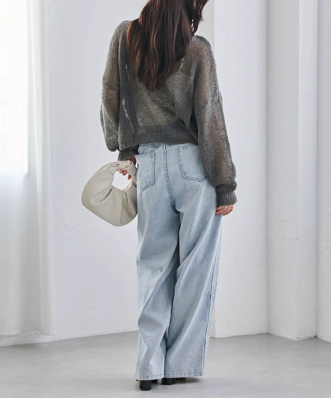 ※Поскольку это изделие выполнено из деликатного плетения, будьте осторожны при зацеплении сумок или аксессуаров.