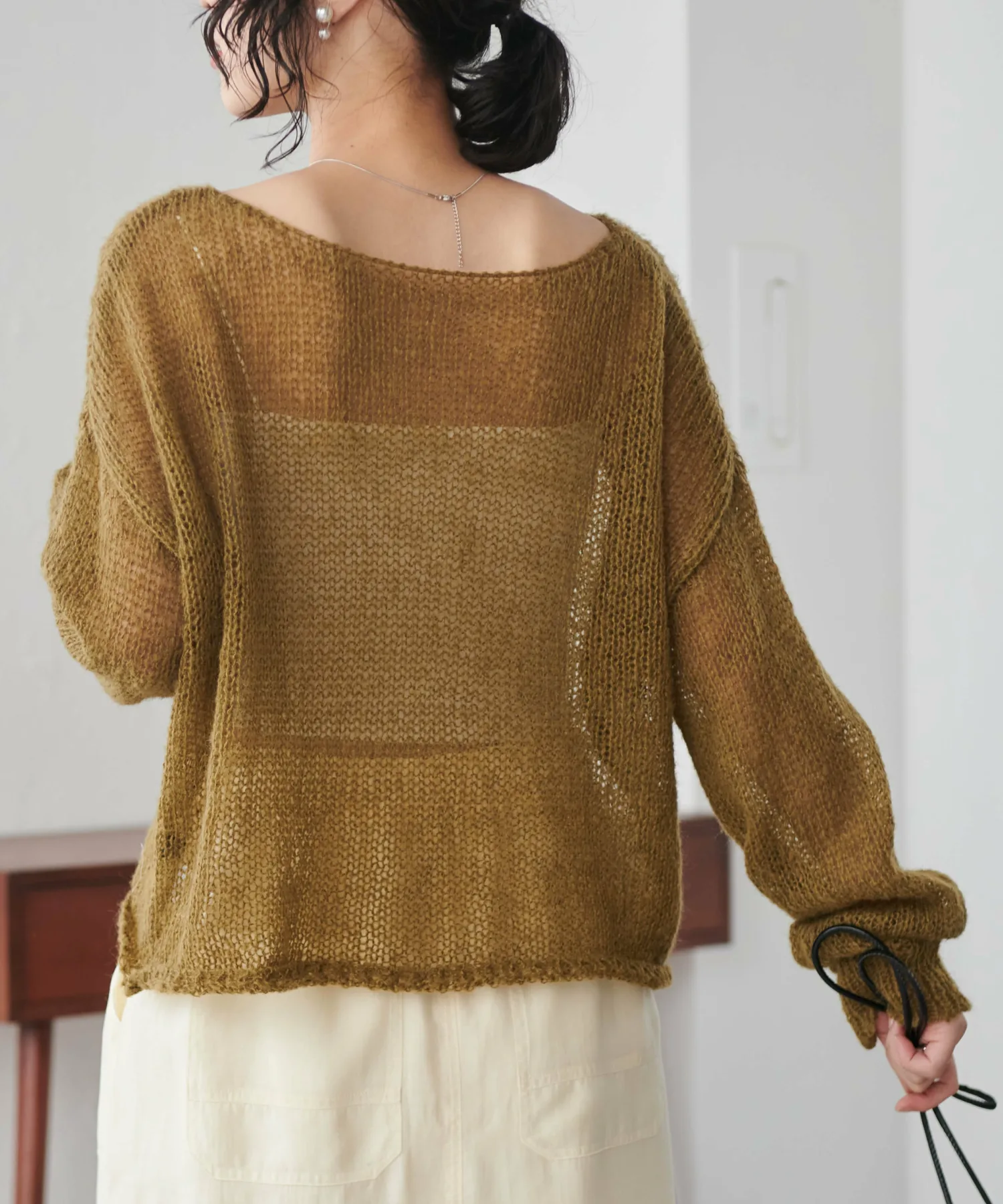 ※Поскольку это изделие выполнено из деликатного плетения, будьте осторожны при зацеплении сумок или аксессуаров.