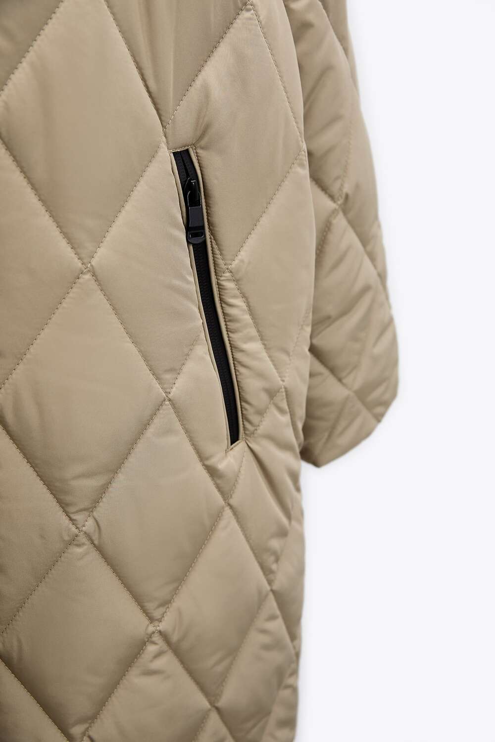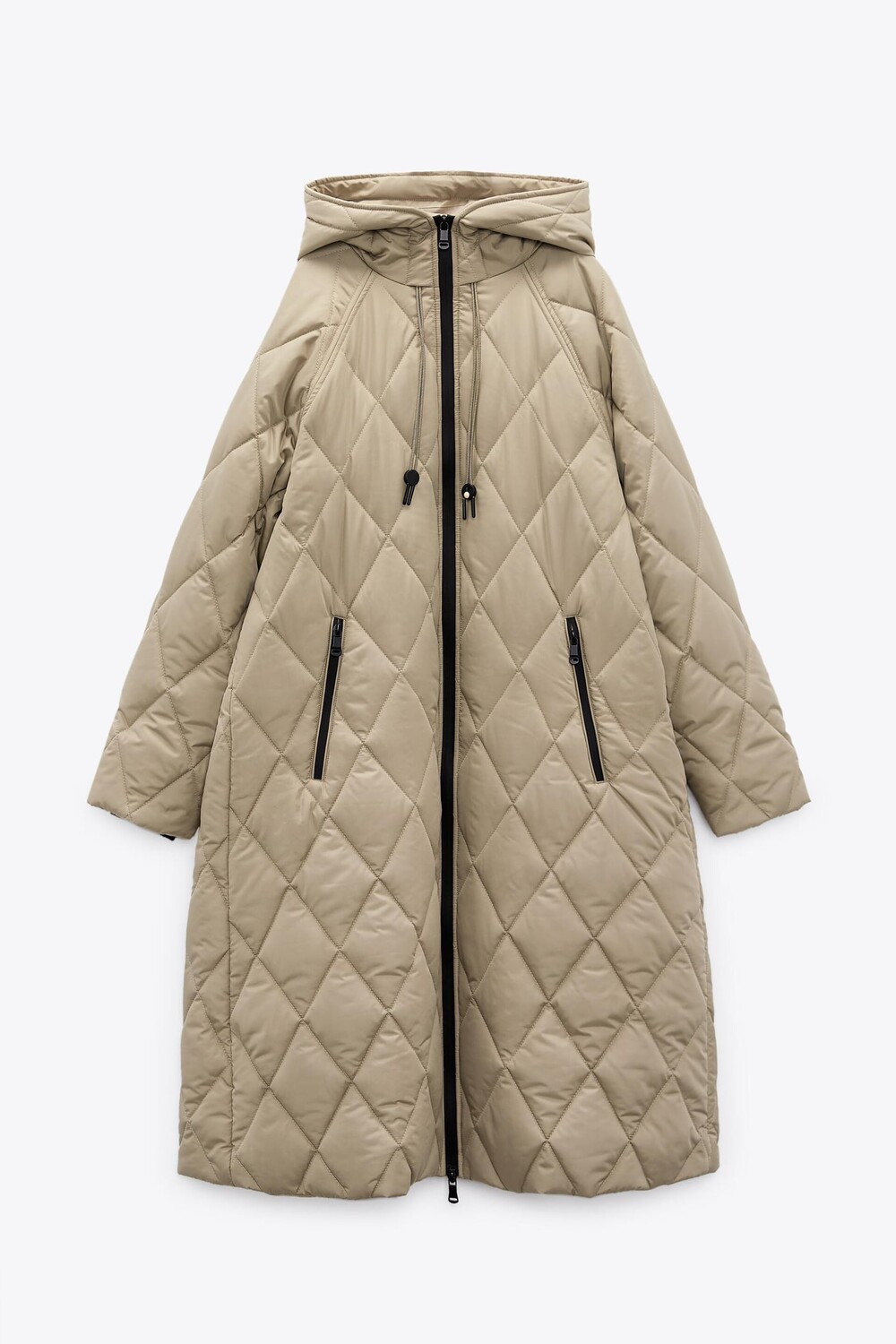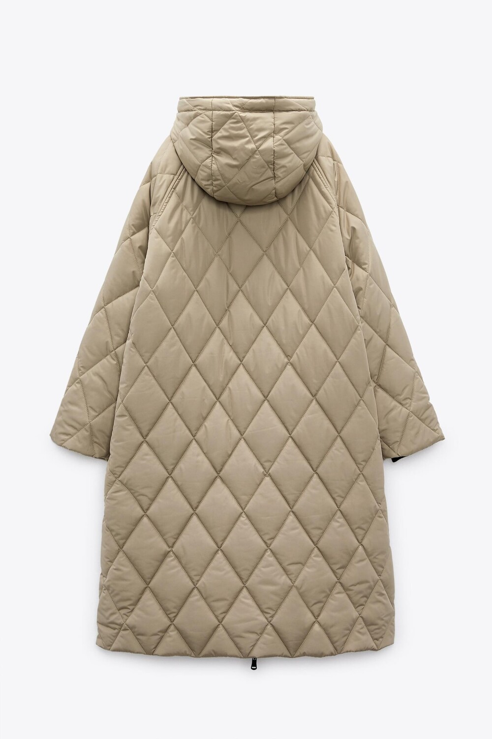 Стеганое пальто с капюшоном ZARA, светлый хаки