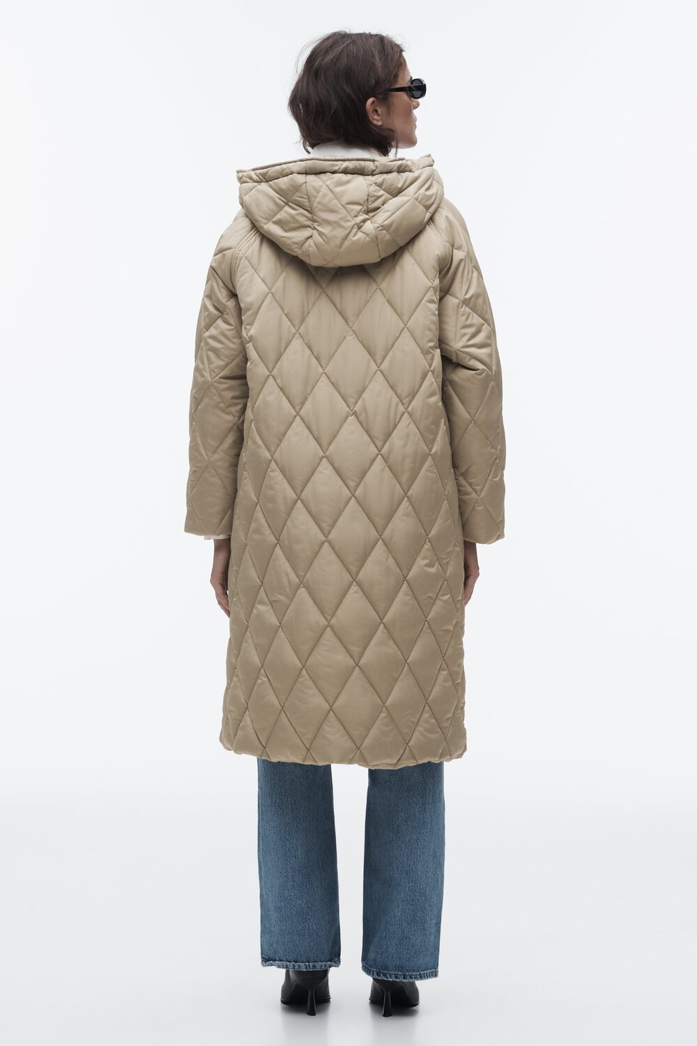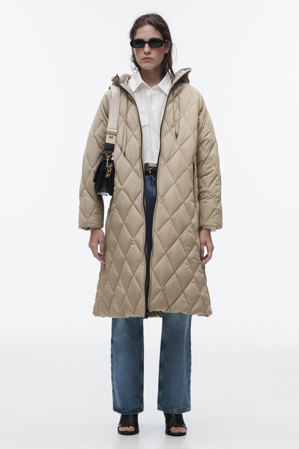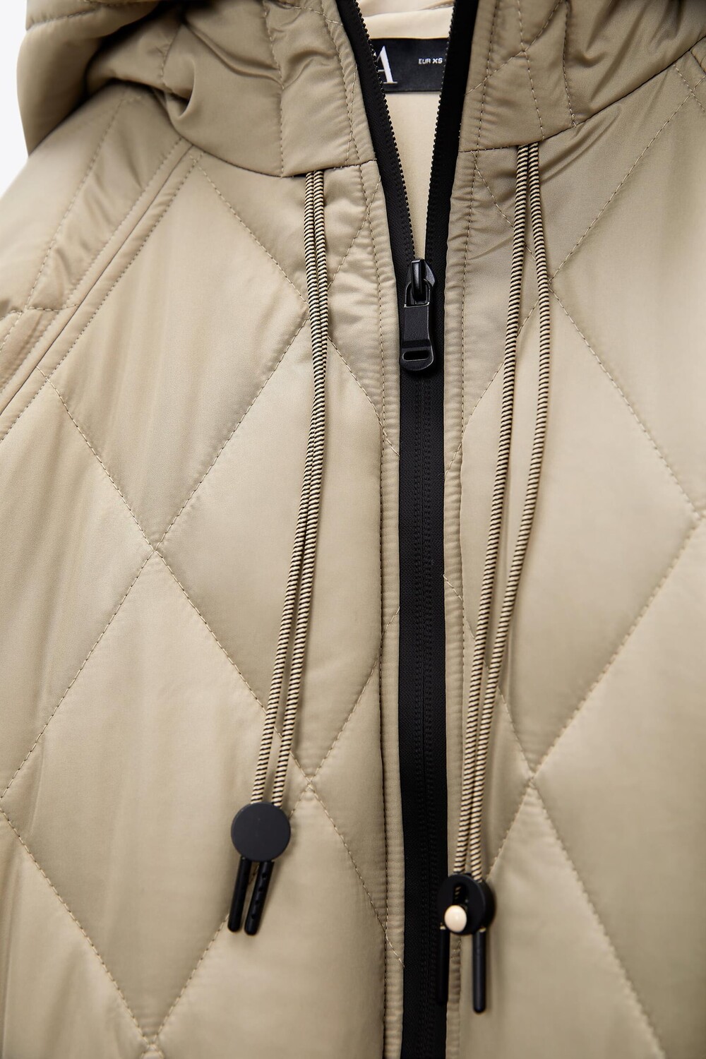 Стеганое пальто с капюшоном ZARA, светлый хаки