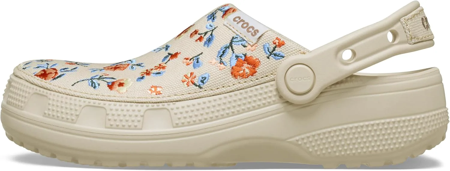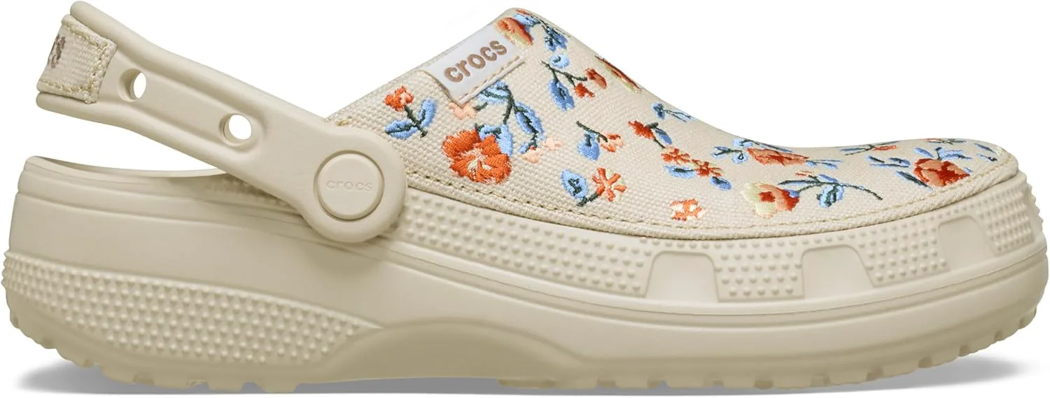 Sabо Cl оgs Crocs Classic Crafted с хлопковой верхней частью переосмысливают универсальный стиль благодаря своему изысканному тканевому верху, идеально подходящему как для элегантного, так и для повседневного образа. Независимо от того, сочетаете ли вы их с брюками чинос для более аккуратного вида или с джинсами для повседневного комфорта, эти водонепроницаемые сабо обеспечивают легкость. Без подкладки. Низкая посадка. Закругленный носок.