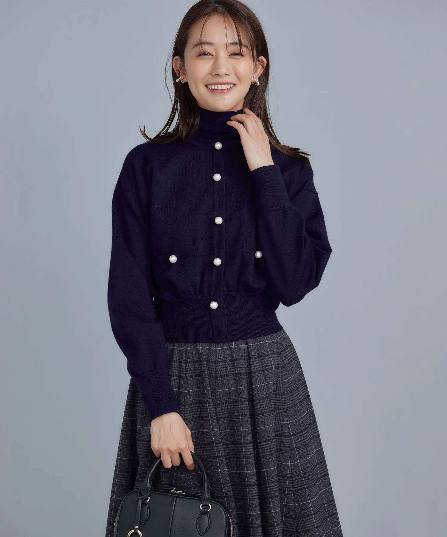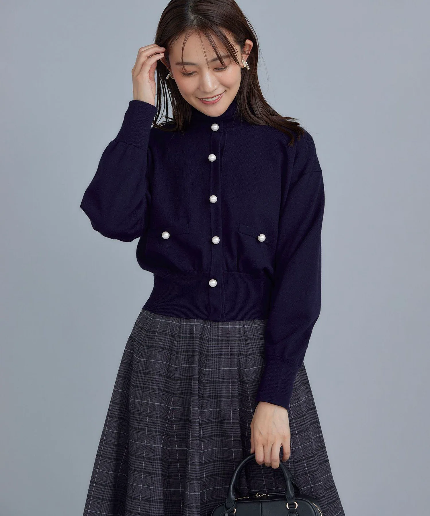 Крупные пуговицы с перламутровым эффектом и укороченная длина добавляют кардигану нужной доли нежности, создавая ощущение жакета.