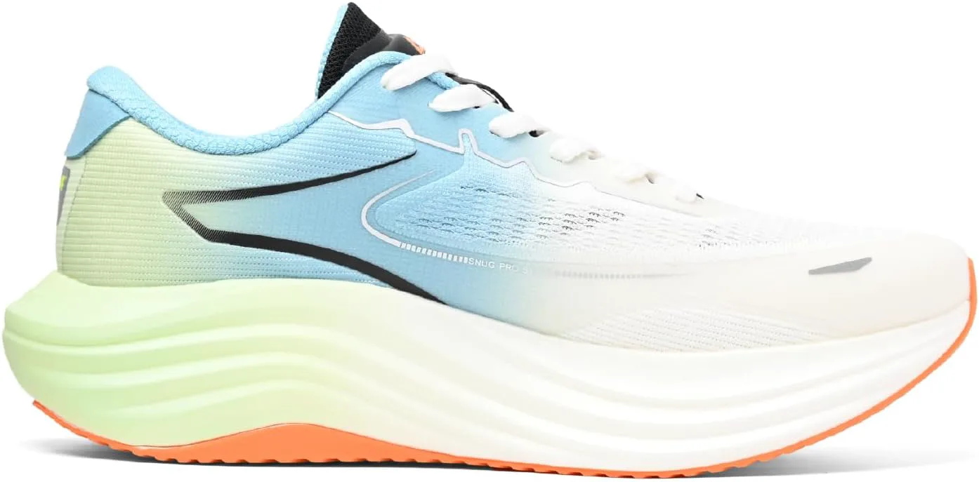 Беговые кроссовки TAICHI с высокой амортизацией, сверхтолстые и легкие. Примерно 4 см (1,6 дюйма) сверхтолстая средняя подошва с высокой амортизацией и уникальной технологией TAICHI для изменения отдачи, которая защищает ваши ноги и поддерживает движение. Исключительно толстые, но при этом легкие - 250 г (8,8 унции).
