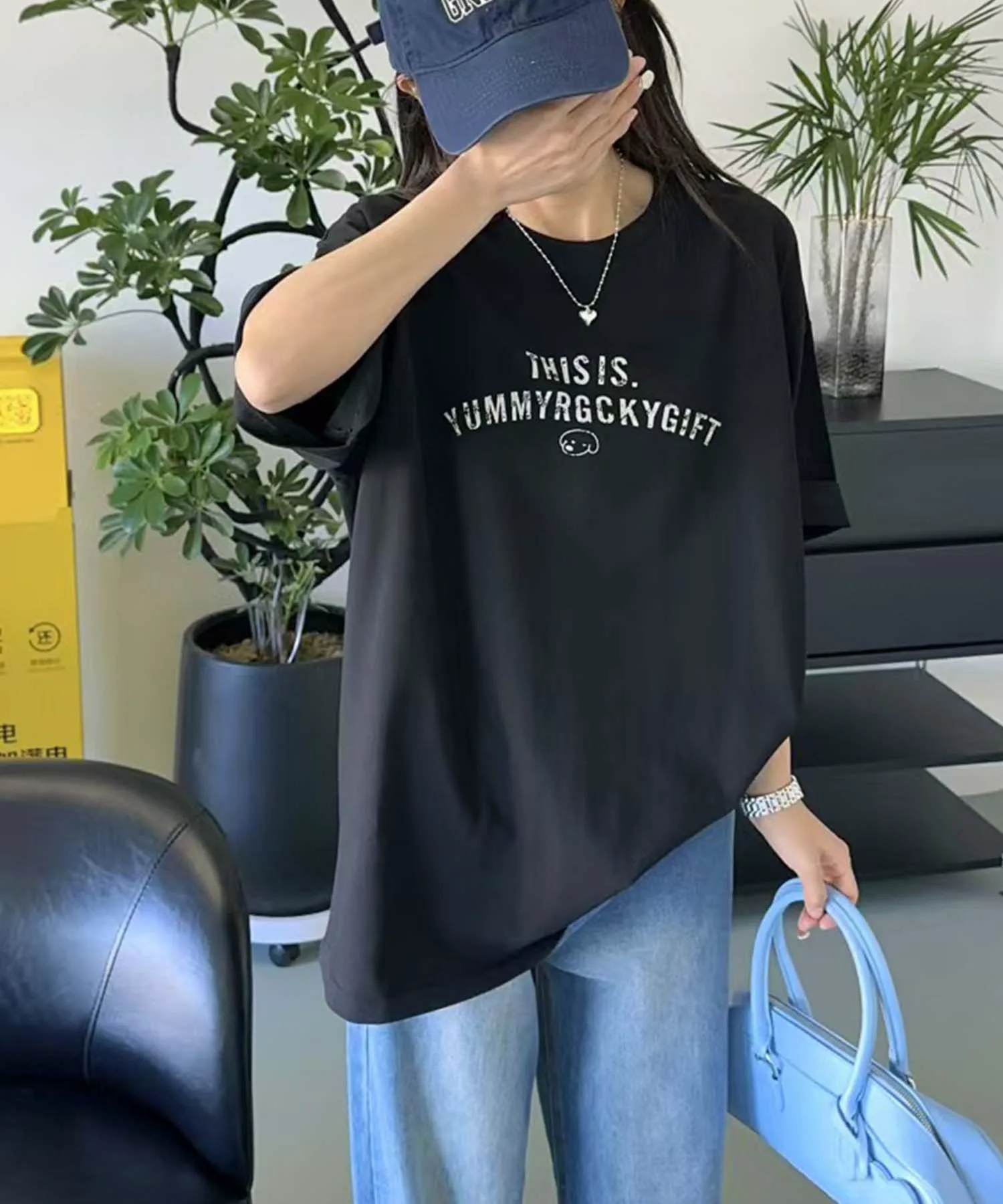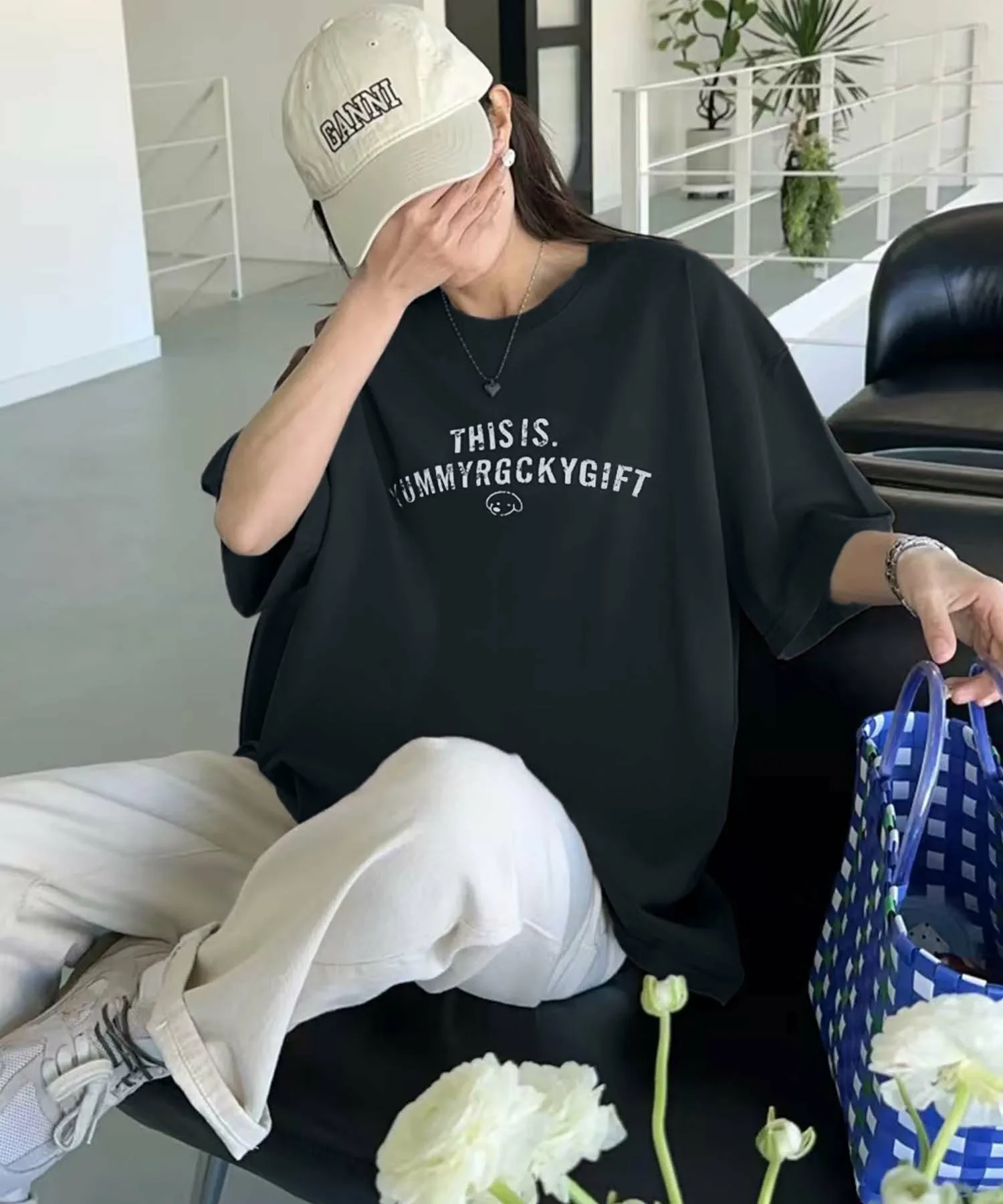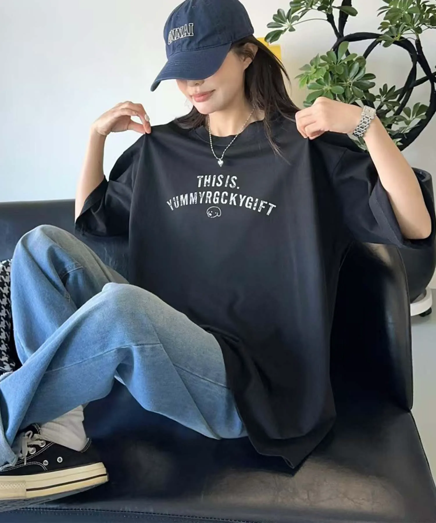 Эта футболка украшена простым, но привлекательным принтом с надписью. Свободный силуэт создает непринужденное, но стильное впечатление.