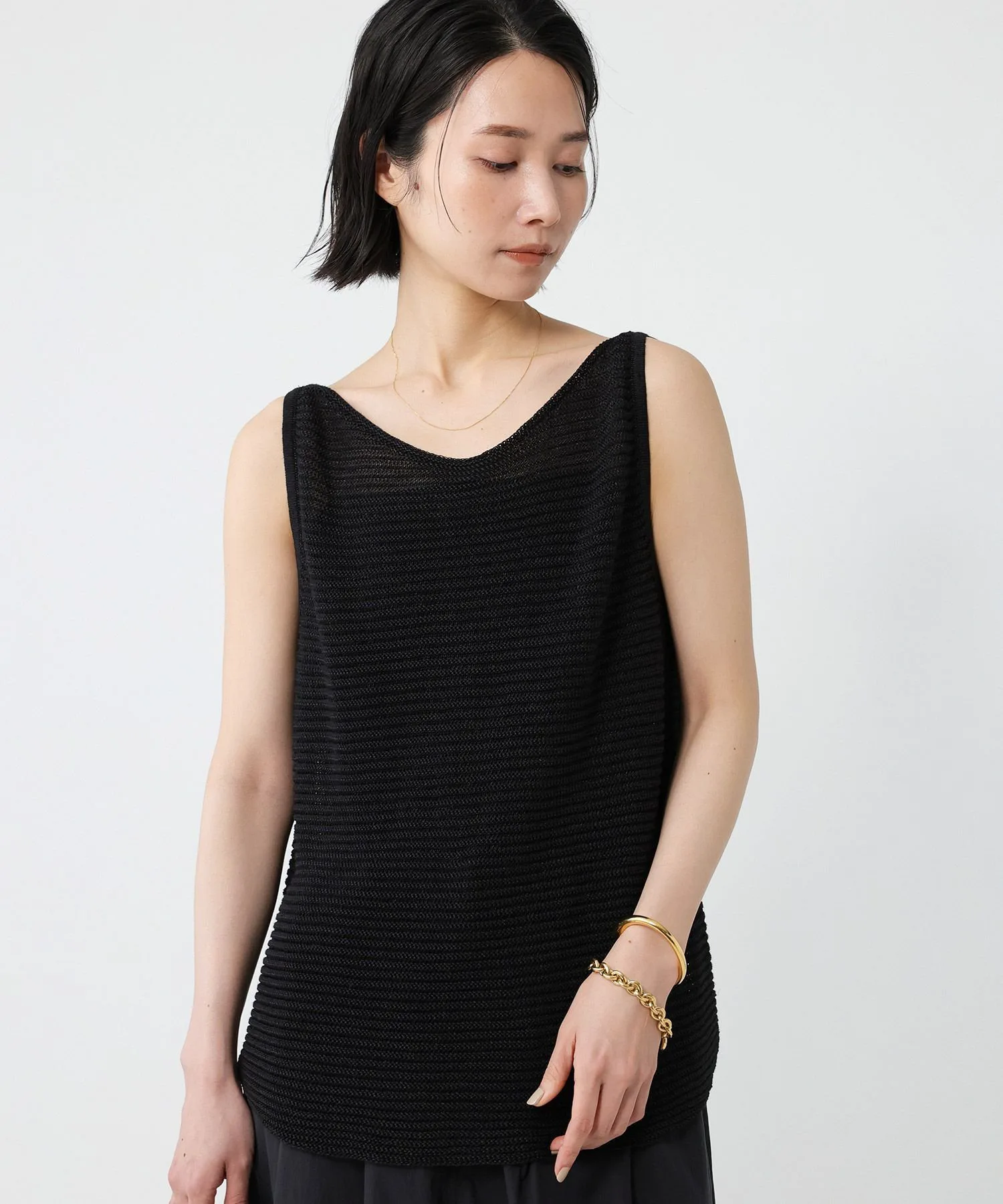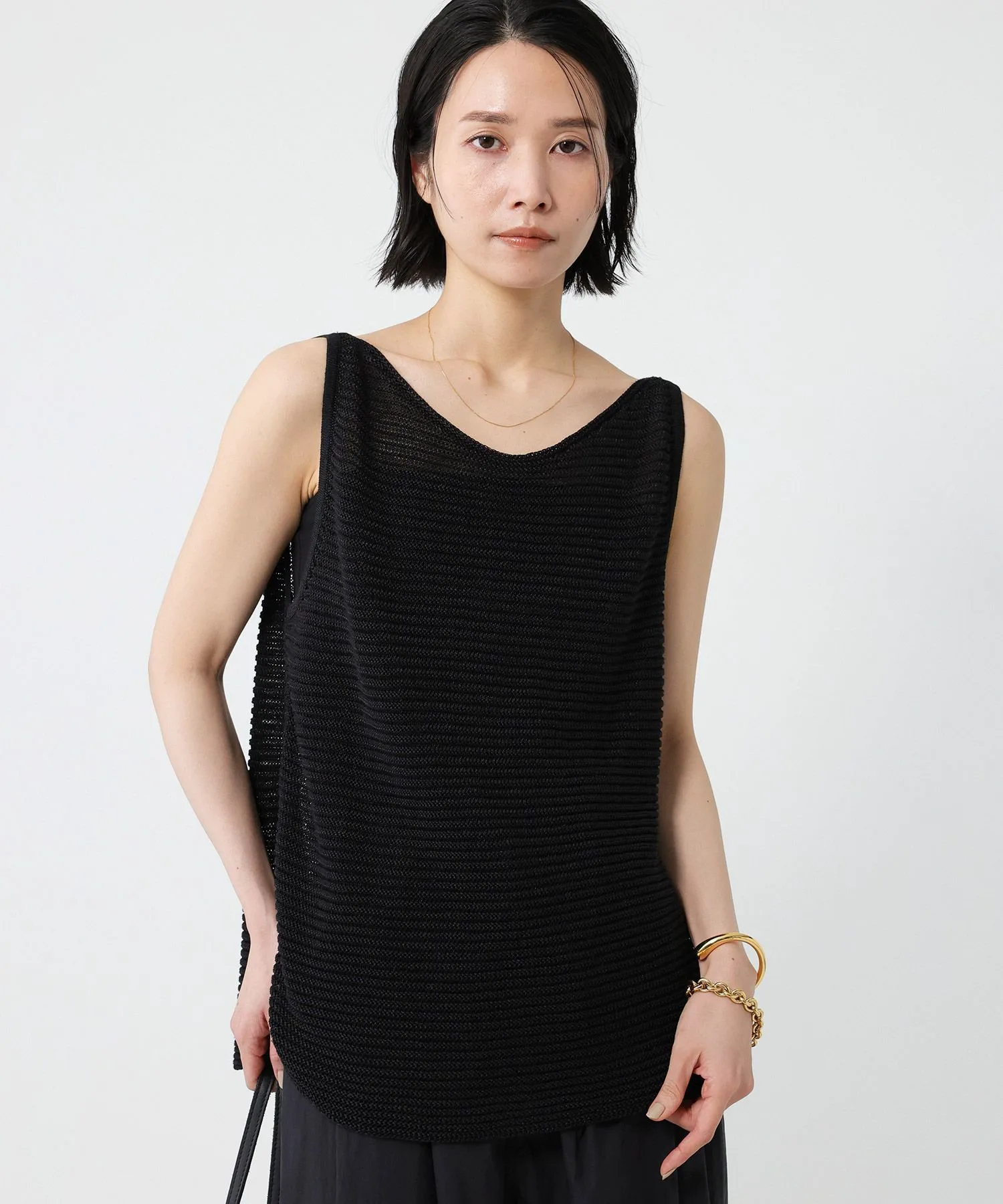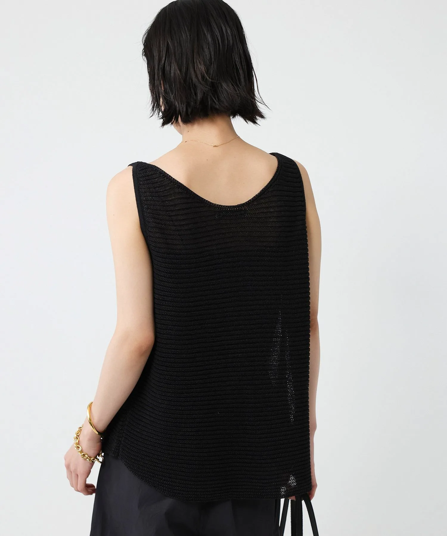 ・Трикотаж без рукавов, приятный на ощупь и великолепный благодаря фактурному материалу — обязательный элемент гардероба.