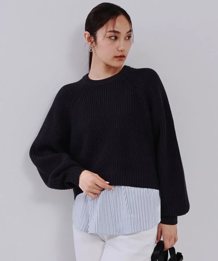 - Свободный крой трикотажа с длинными рукавами и короткой длиной, которая меняется от передней части к задней, создает изысканный, сбалансированный силуэт.