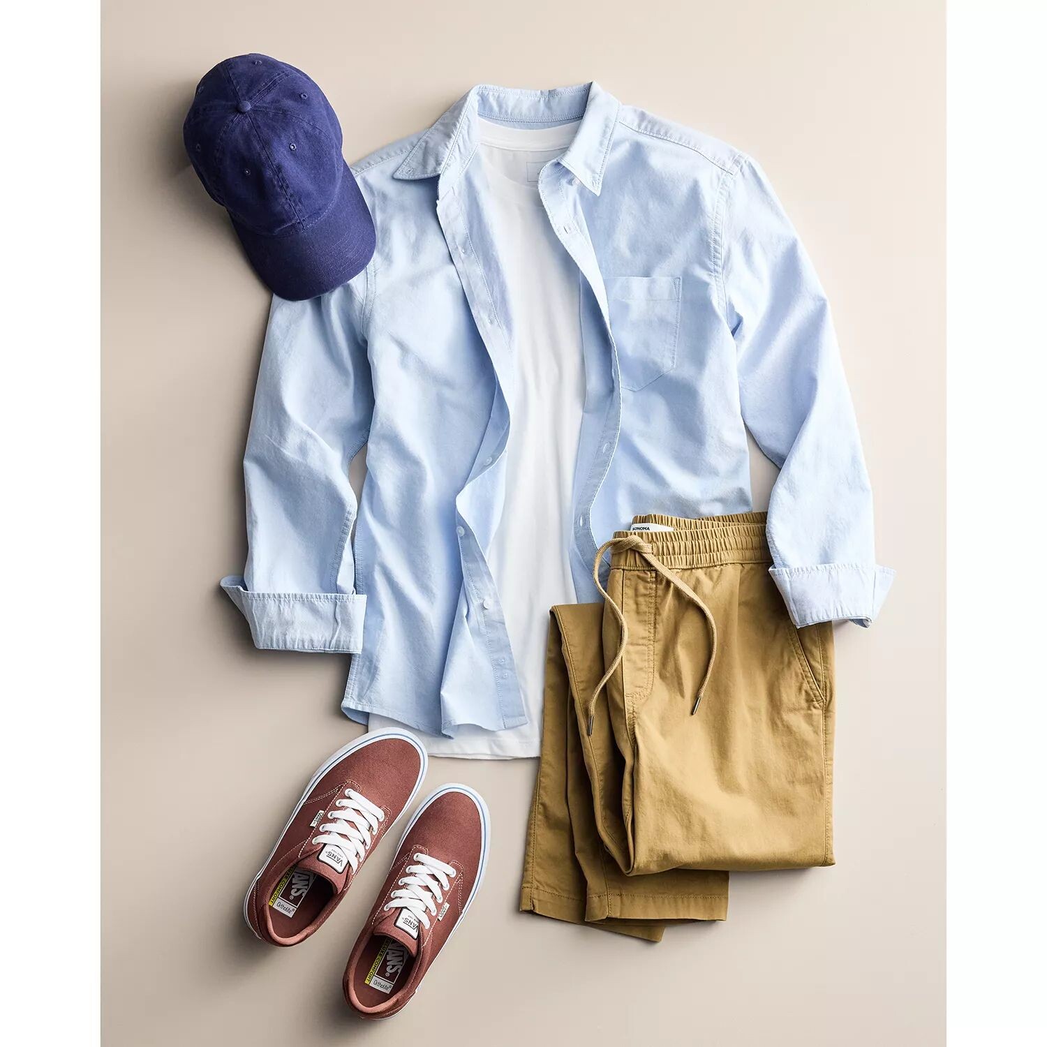 В этих модных и удобных мужских брюках узкого кроя Sonoma Goods For Life вы будете хорошо выглядеть, куда бы вы ни пошли.