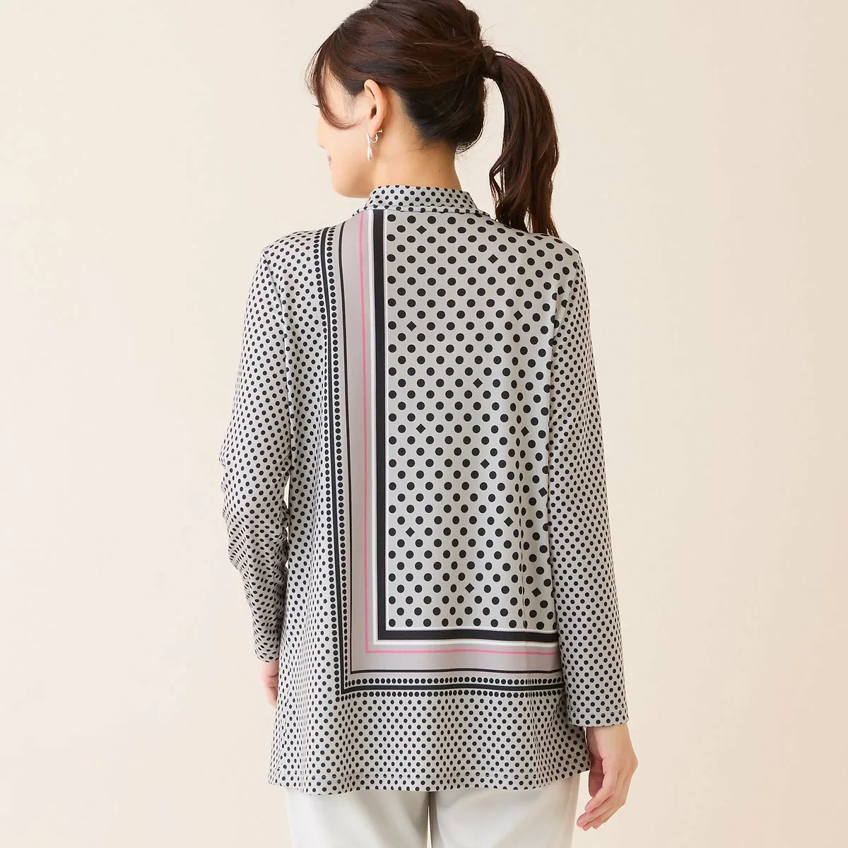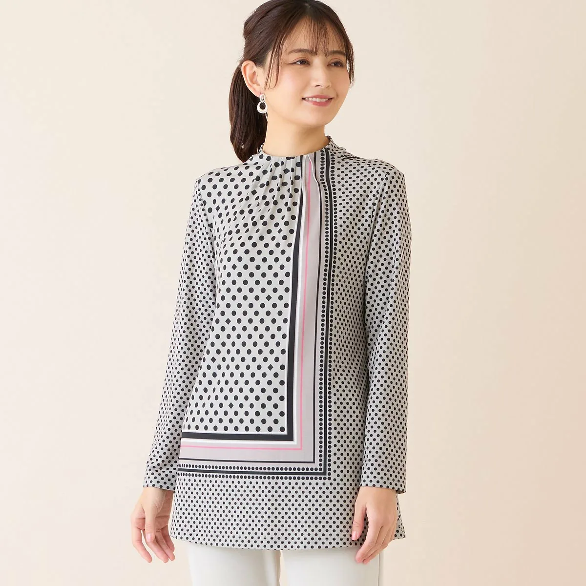 Эффектная туника с выразительным узором, напоминающим шарф
