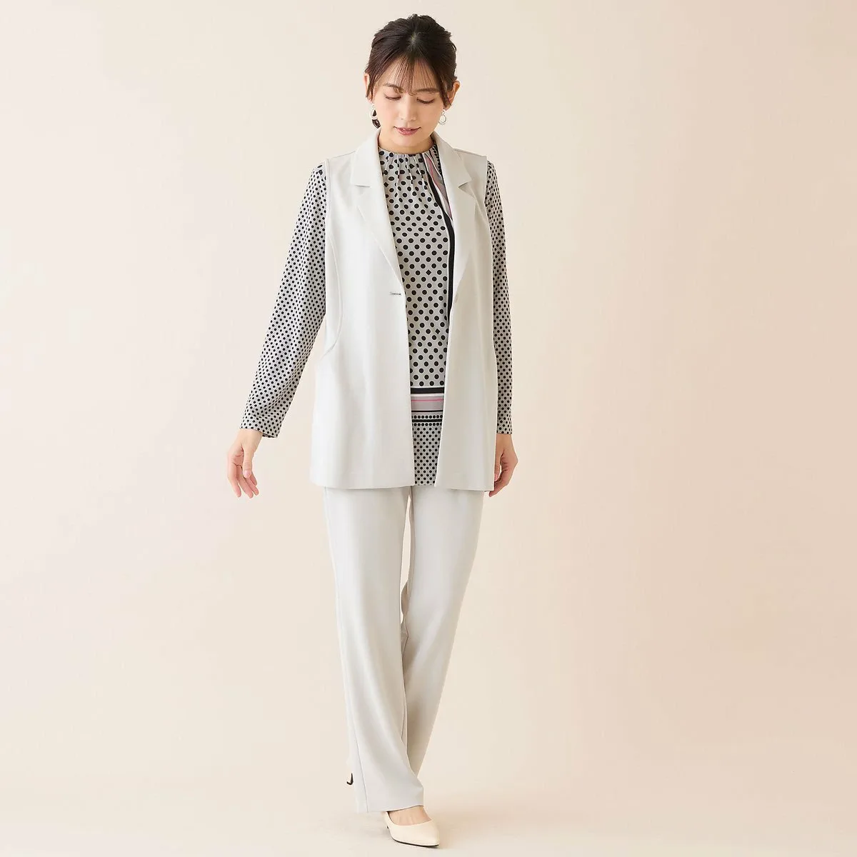 Длина туники, закрывающая ягодицы, хорошо сочетается с брюками.