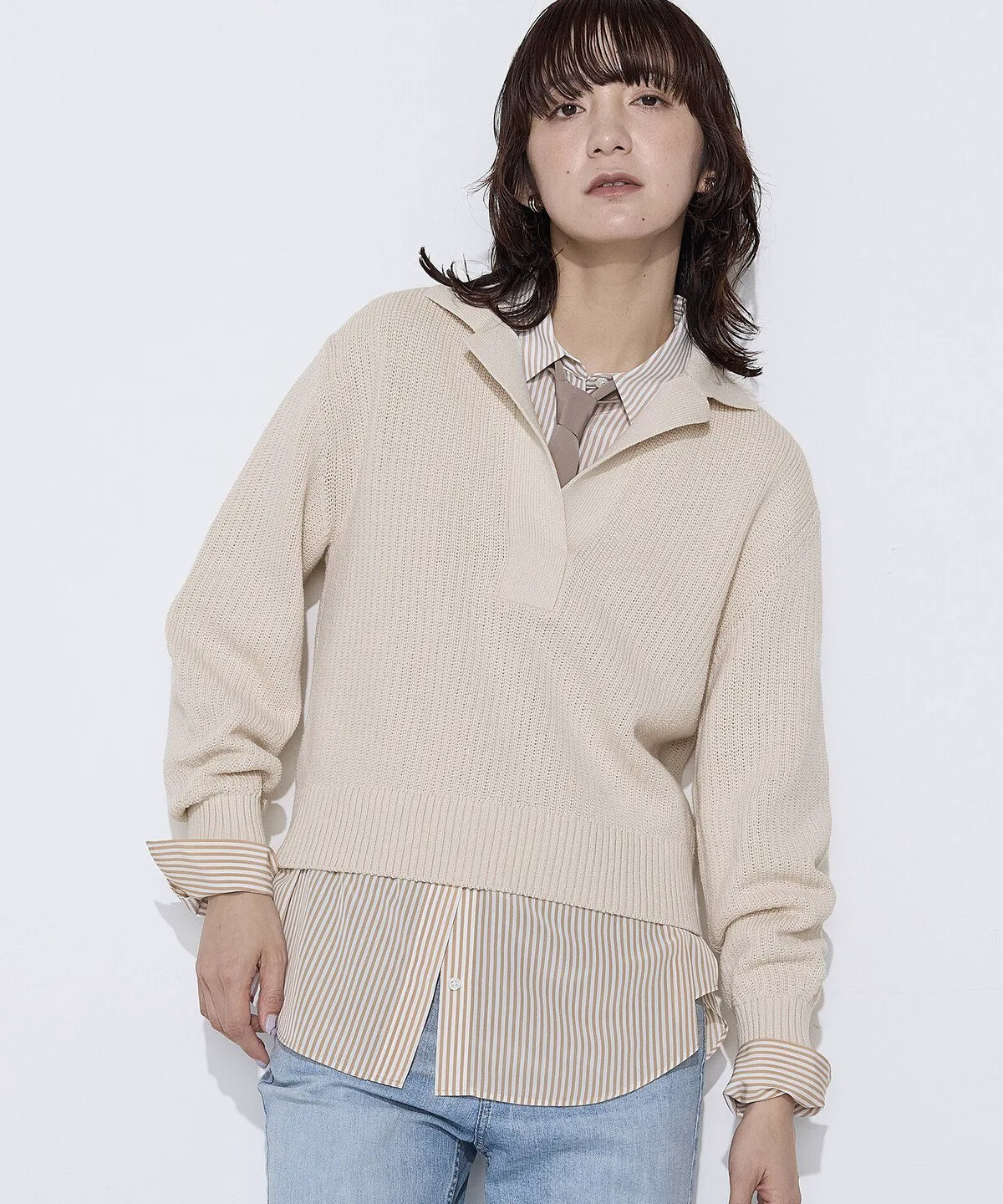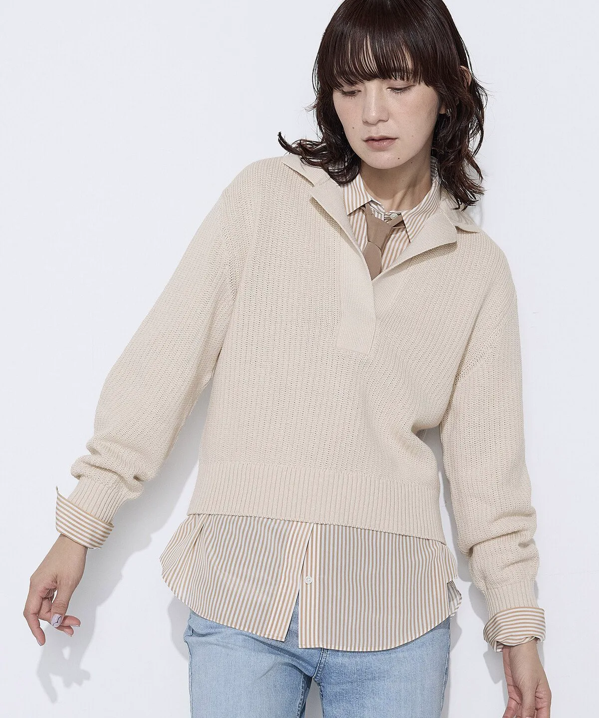 Модный вязаный пуловер, сочетающий в себе воротник-стойку и воротник-поло.