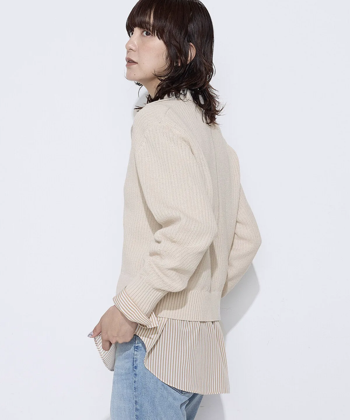 Узор Laben, сочетающий в себе трикотажное полотно и вязание с защипами, выполнен в свободной вязке, создавая ткань с оптимальной плотностью.