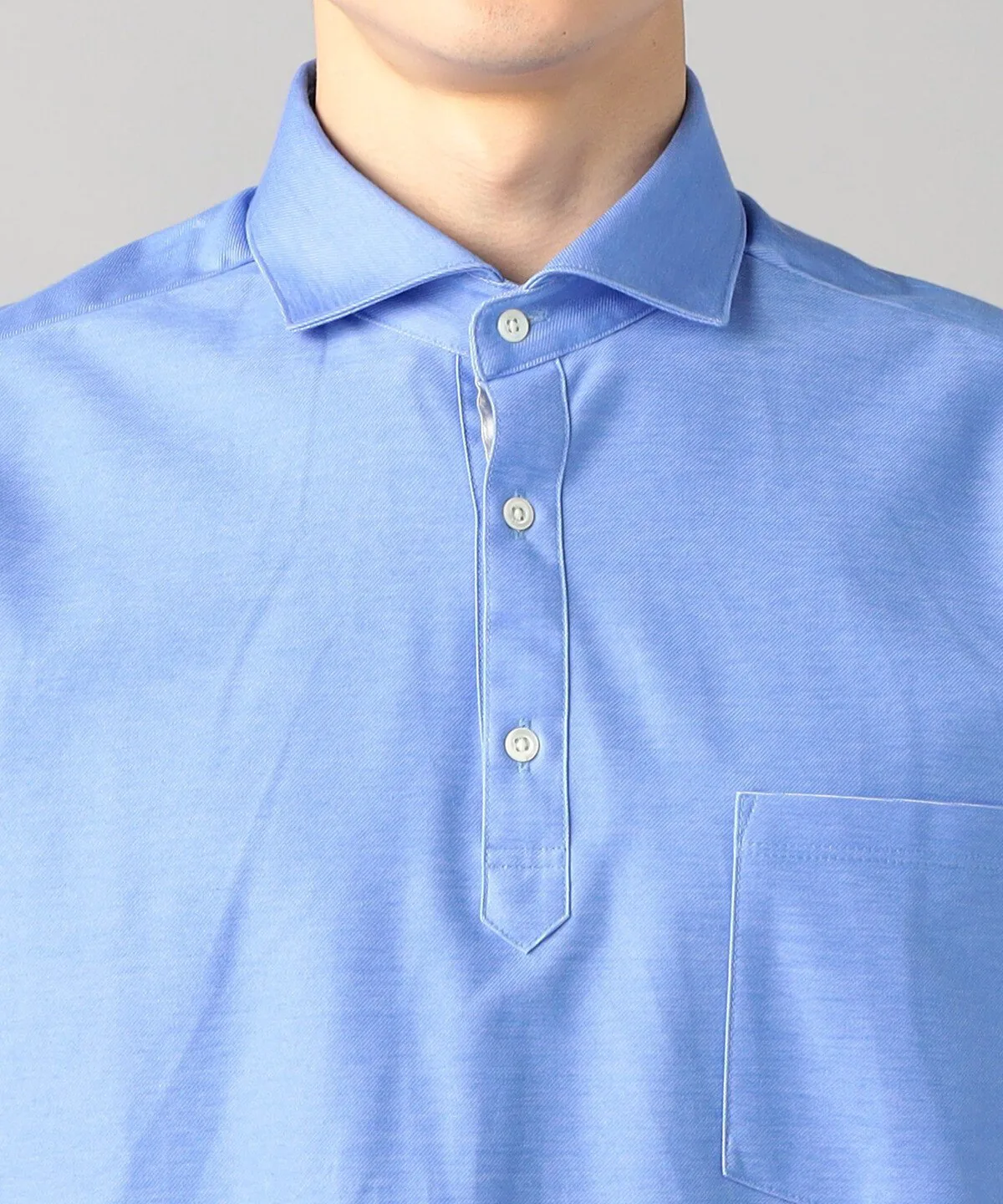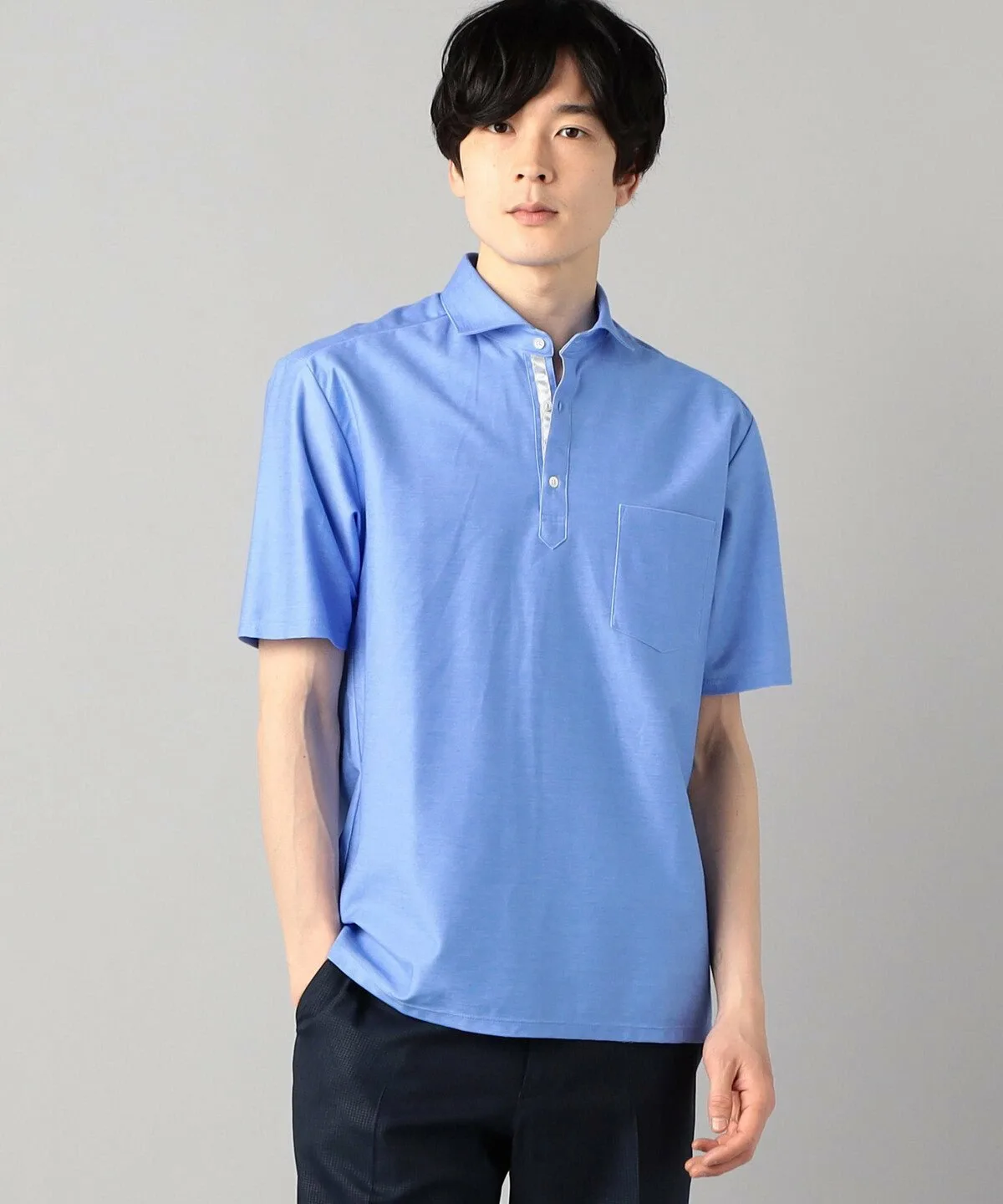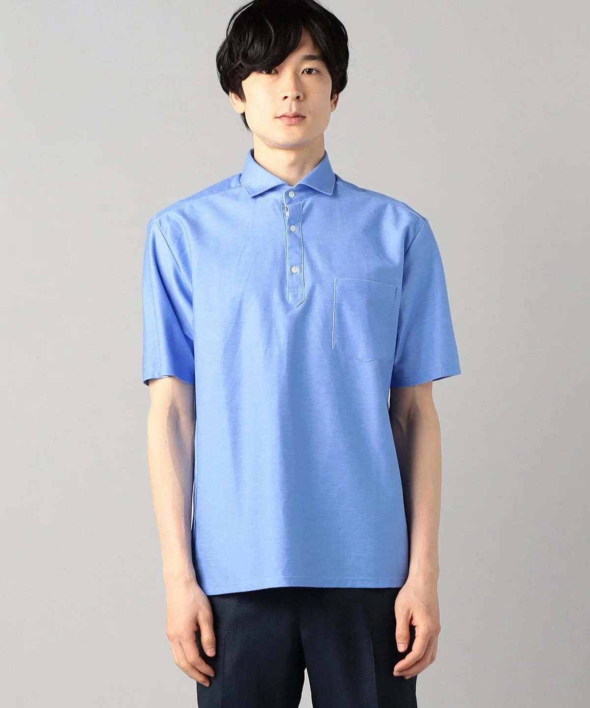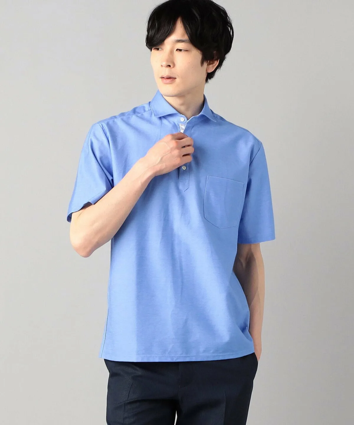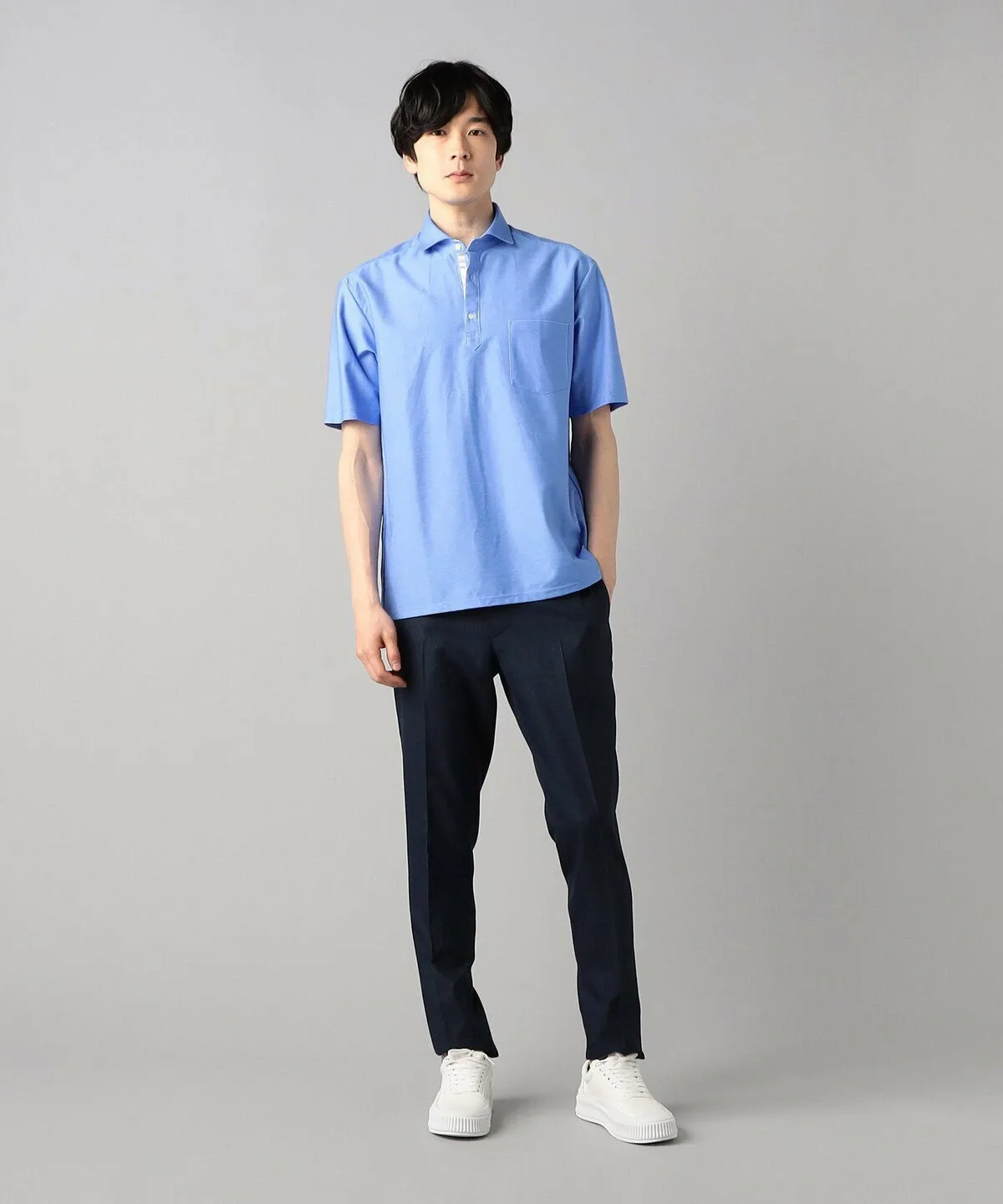 Четыре насыщенных цвета окрашены максимально полно, с учетом уникальных качеств материала. На этот раз приоритетом была и функциональность: изнаночная сторона полностью выполнена из впитывающего, быстросохнущего полиэстера, а передние петли — из хлопчатобумажной пряжи, смешанной с упомянутым выше хлопком Suvin. Двойное плетение, напоминающее двухстороннюю вязку, улучшает текстуру ткани, не делая её слишком плотной. Дизайн: это поло с короткими рукавами и «горизонтальным воротником». Термин «горизонтальный», также используемый для мужских рубашек, означает «горизонтальный», и вырез воротника почти горизонтальный, создавая красивую, четко очерченную форму воротника. Воротник расположен немного выше, что обеспечивает удобную посадку даже под пиджаком. Кокетка на спине создает более рубашечный силуэт, а складки увеличивают свободу движений.