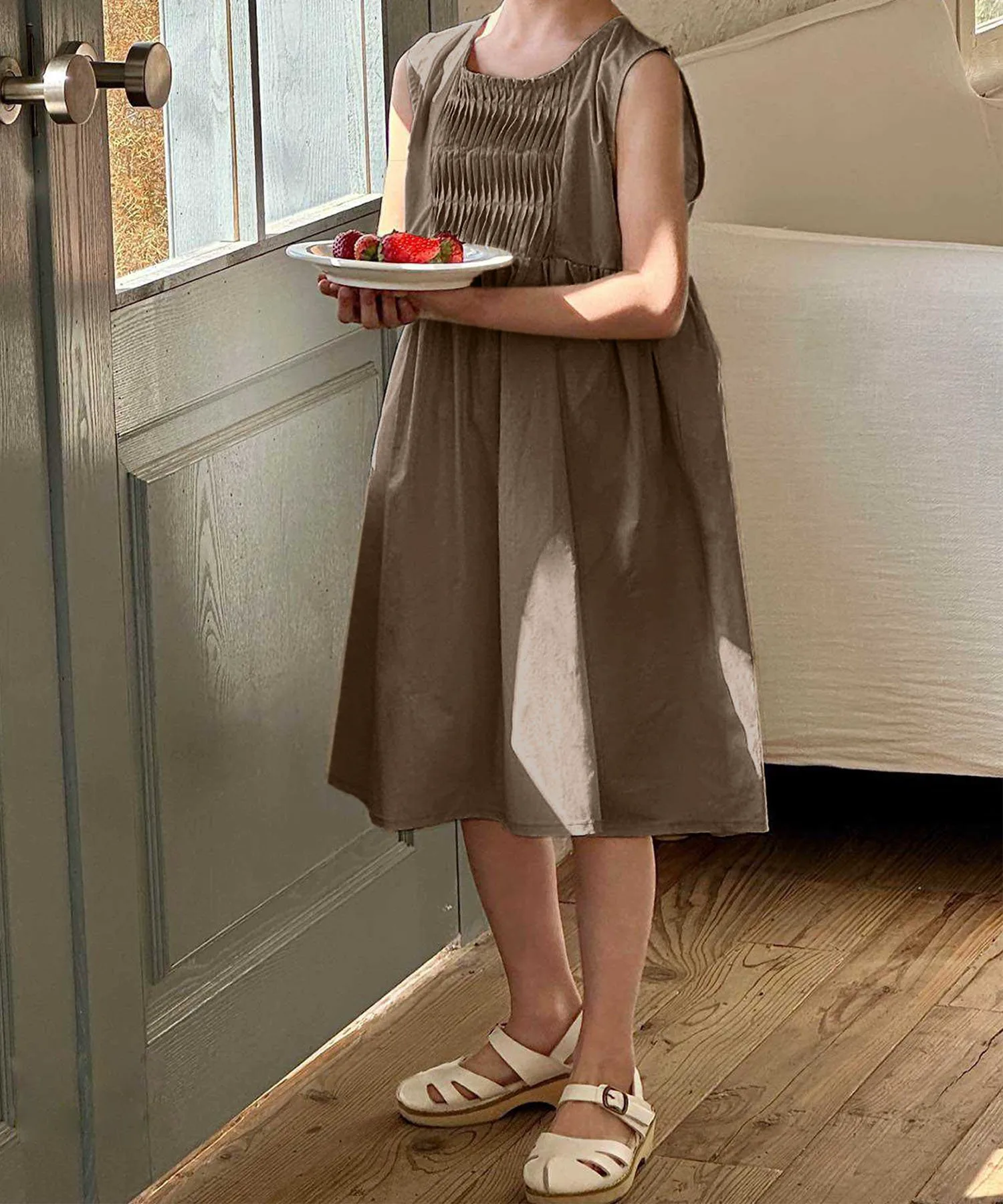 Сборка на груди добавляет акцент, создавая стильный образ и обеспечивая комфорт.