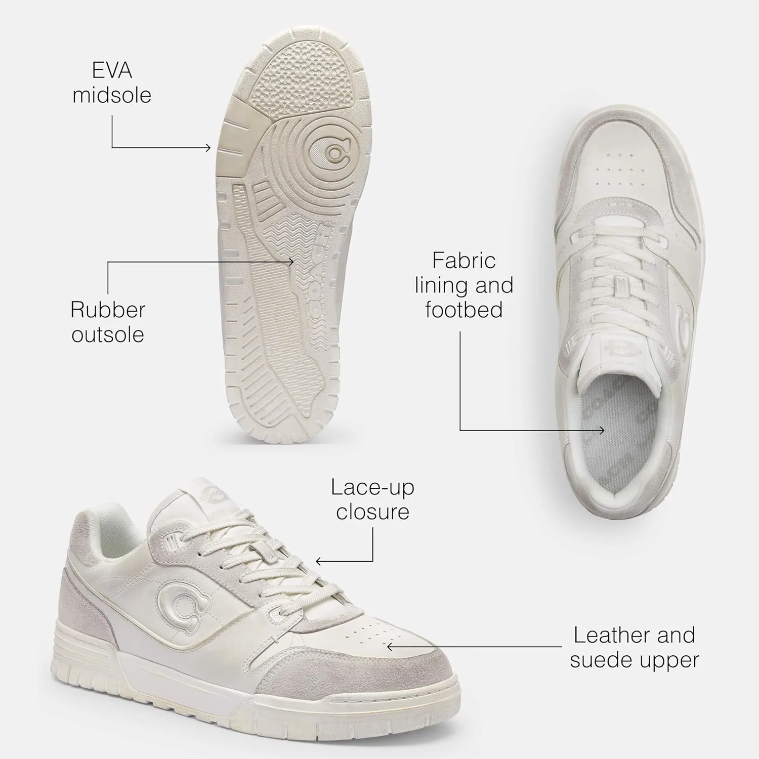 Smooth Leather Upper: стильные, спортивные кроссовки Coach с гладкой кожаной верхом. Мгновенная классика