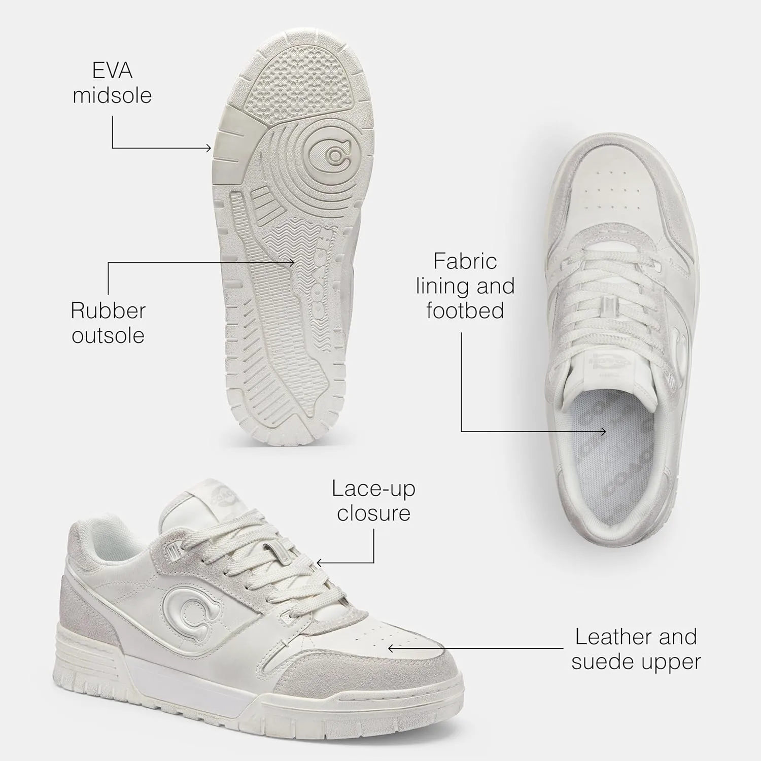 Наши кроссовки Coach SoHo вдохновлены смелым свободным духом нашего родного города Нью-Йорка и созданы, чтобы идти в ногу с жизнью на ходу. Изготовленные из гладкой кожи, они имеют подошву с содержанием не менее 28% био-материалов, созданных с использованием возобновляемых источников вместо ископаемого сырья. Удобный стиль завершается рифленой резиновой подошвой с детализированной картой Манхэттена.