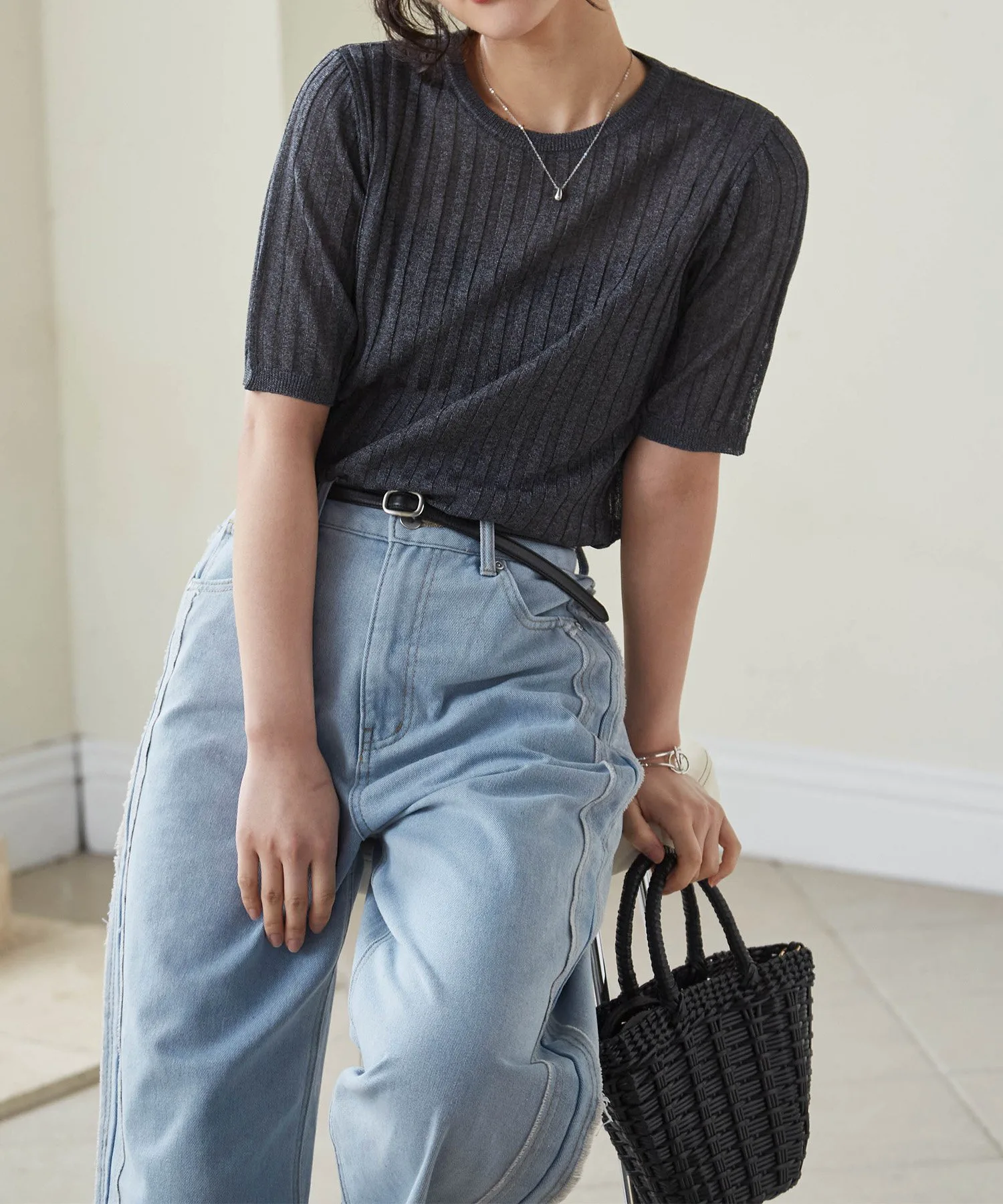 - Этот прозрачный трикотаж сочетает в себе модные прозрачные и блестящие элементы, создавая «милый и зрелый» образ.