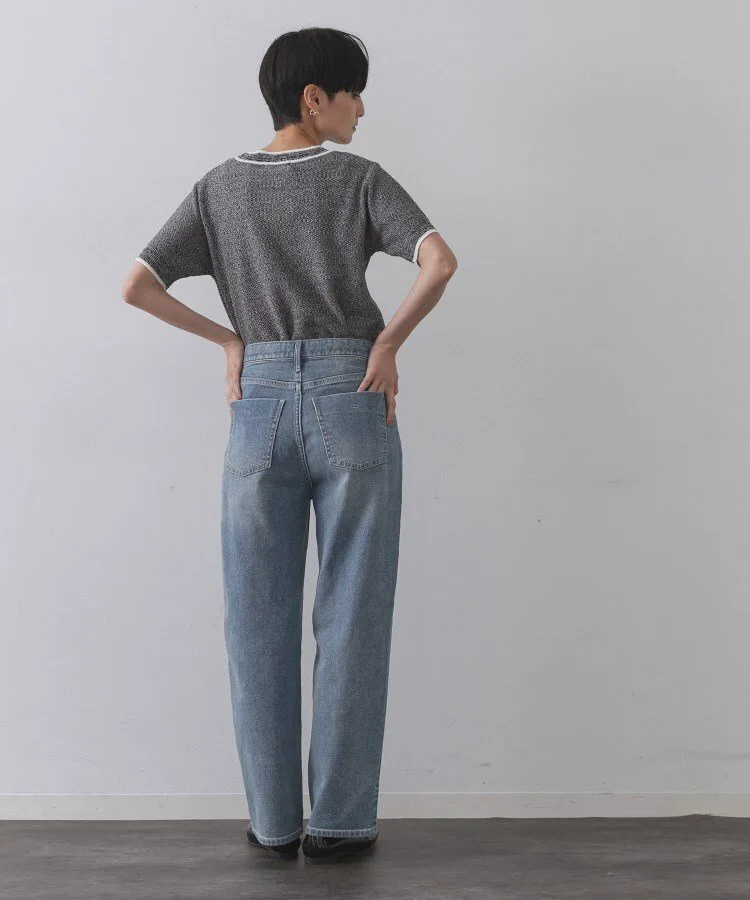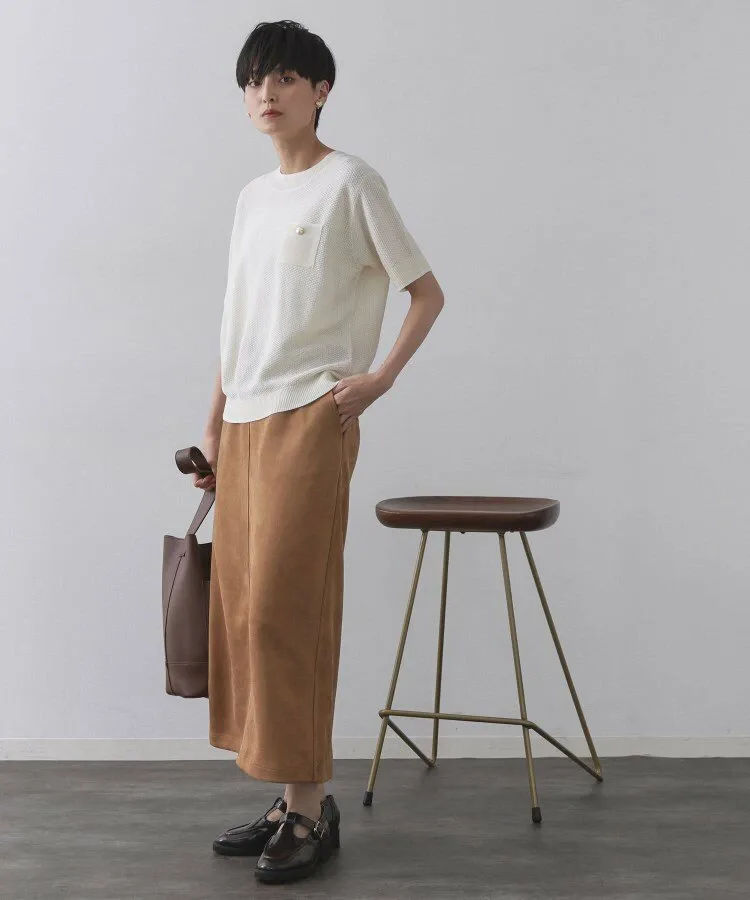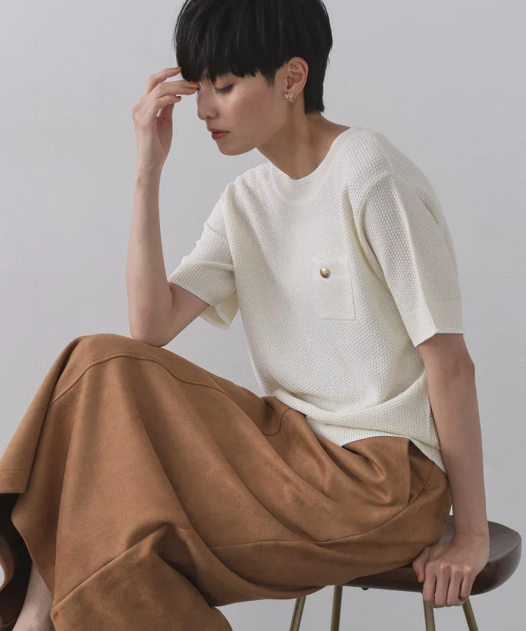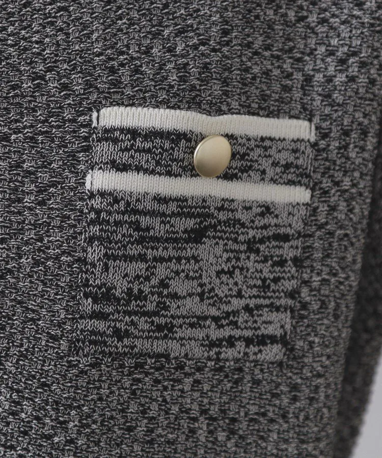- Летний трикотаж из ткани, имитирующей твид, смешанных цветов, выполненной из пряжи двух цветов.