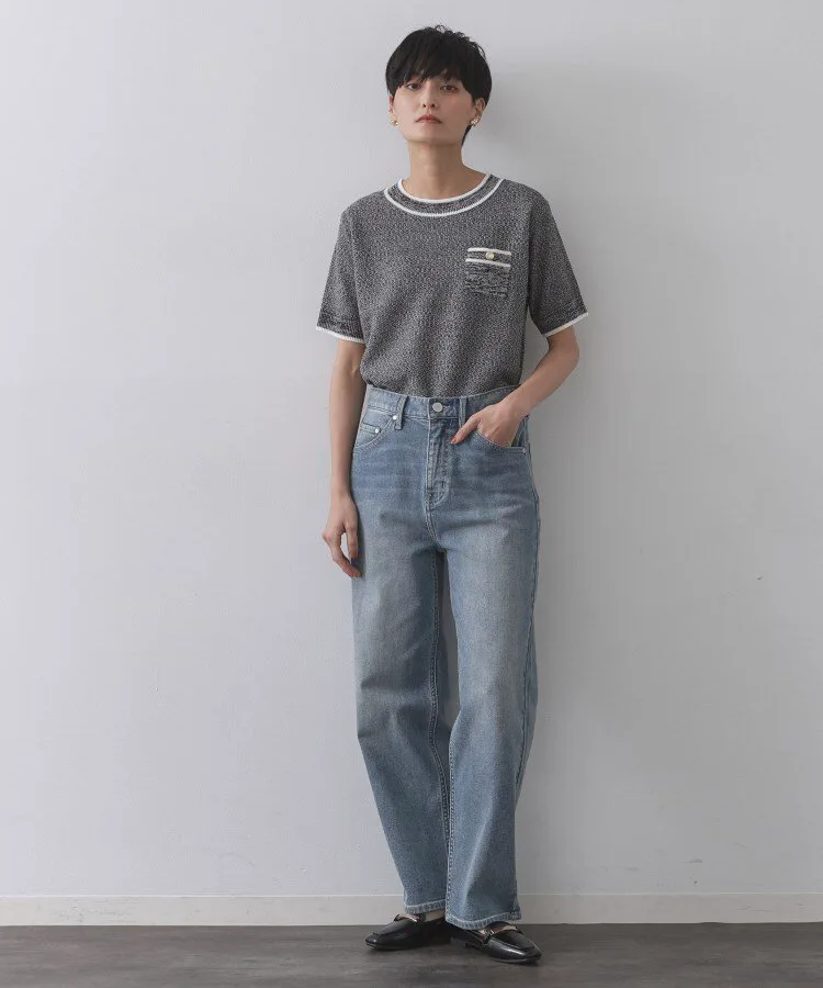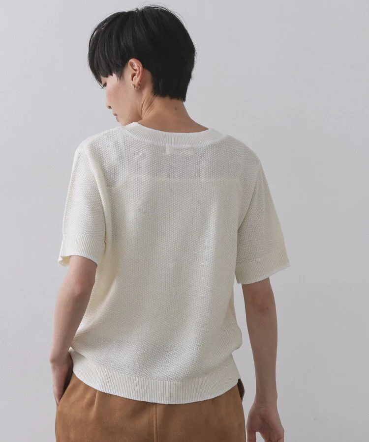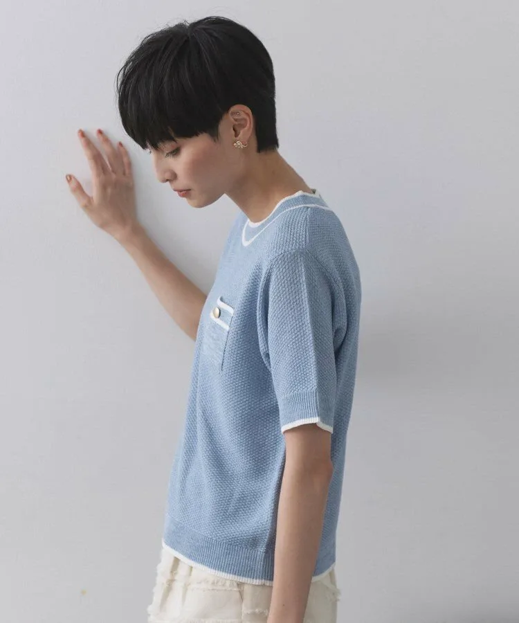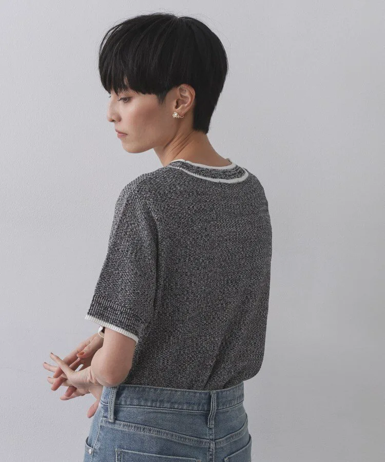 - Трикотажный пуловер с короткими рукавами, выполненный из пряжи двух цветов, имитирующей твид.