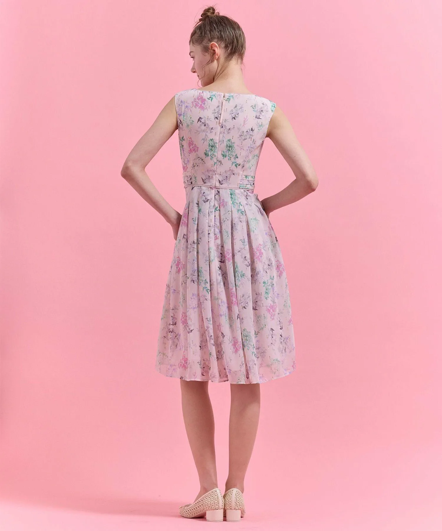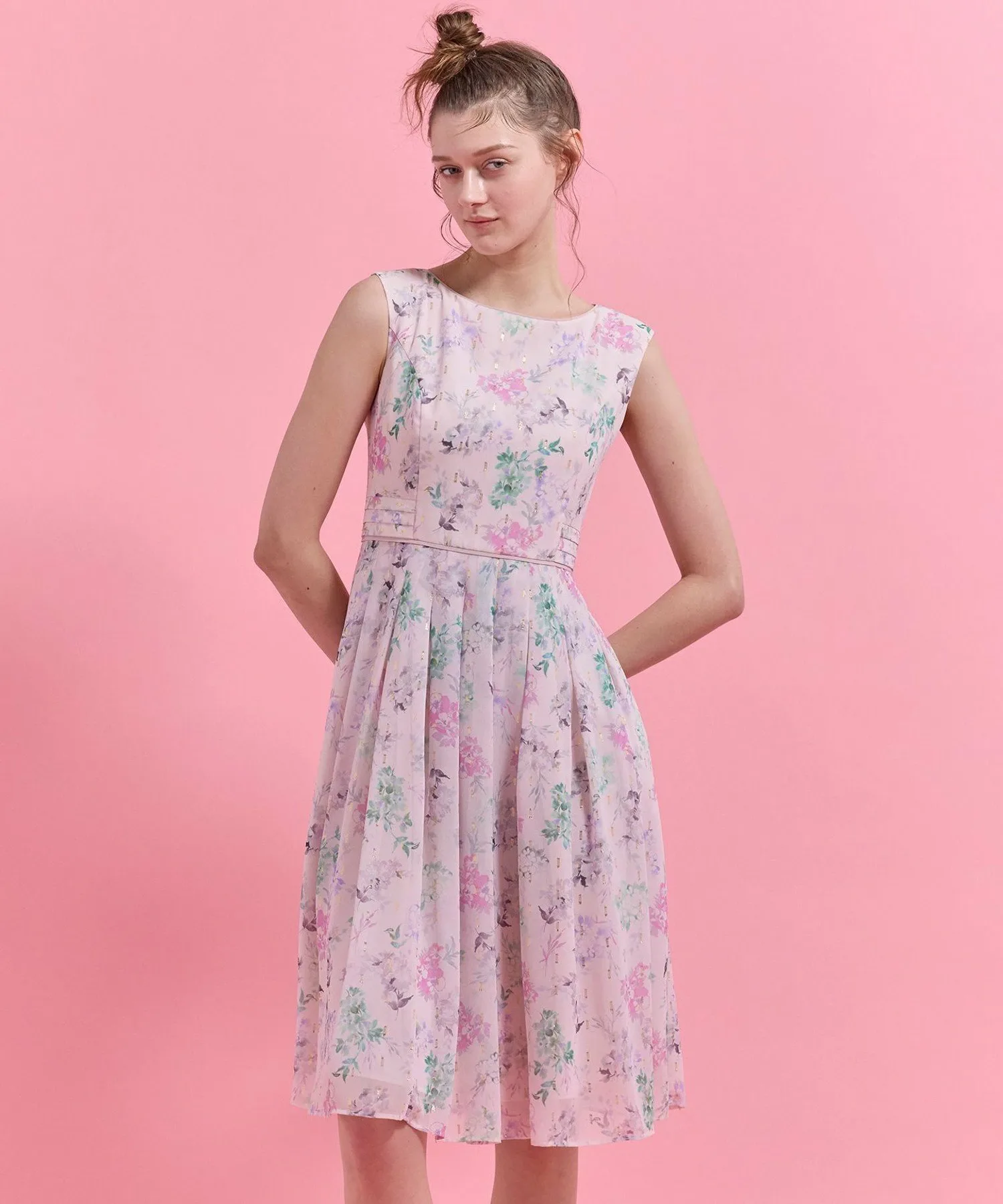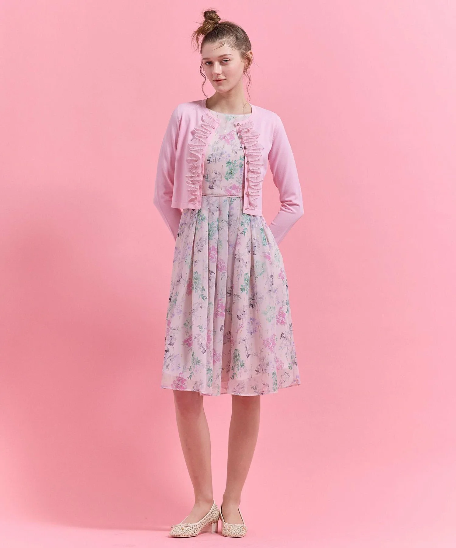 Мягкий цветочный мотив создает ощущение легкости, добавляя сезонный штрих элегантности. Изящная окантовка вокруг талии и выреза горловины создает чистый, гладкий силуэт, добавляя нотку элегантности. Умеренный силуэт «приталенный и расклешенный» подчеркивает женственность, обеспечивая при этом свободу движений. Это платье идеально подходит для весенних прогулок и особых случаев, а также может носиться поверх кардигана или жакета для более длительного ношения.
