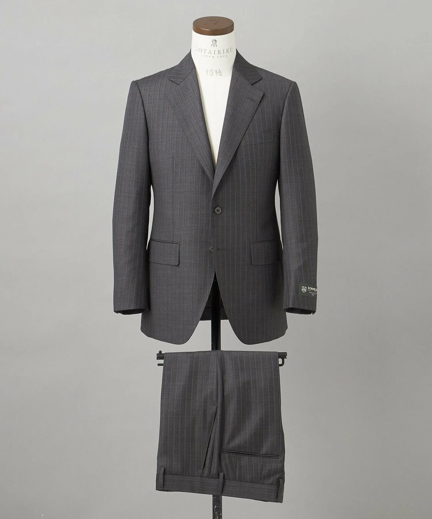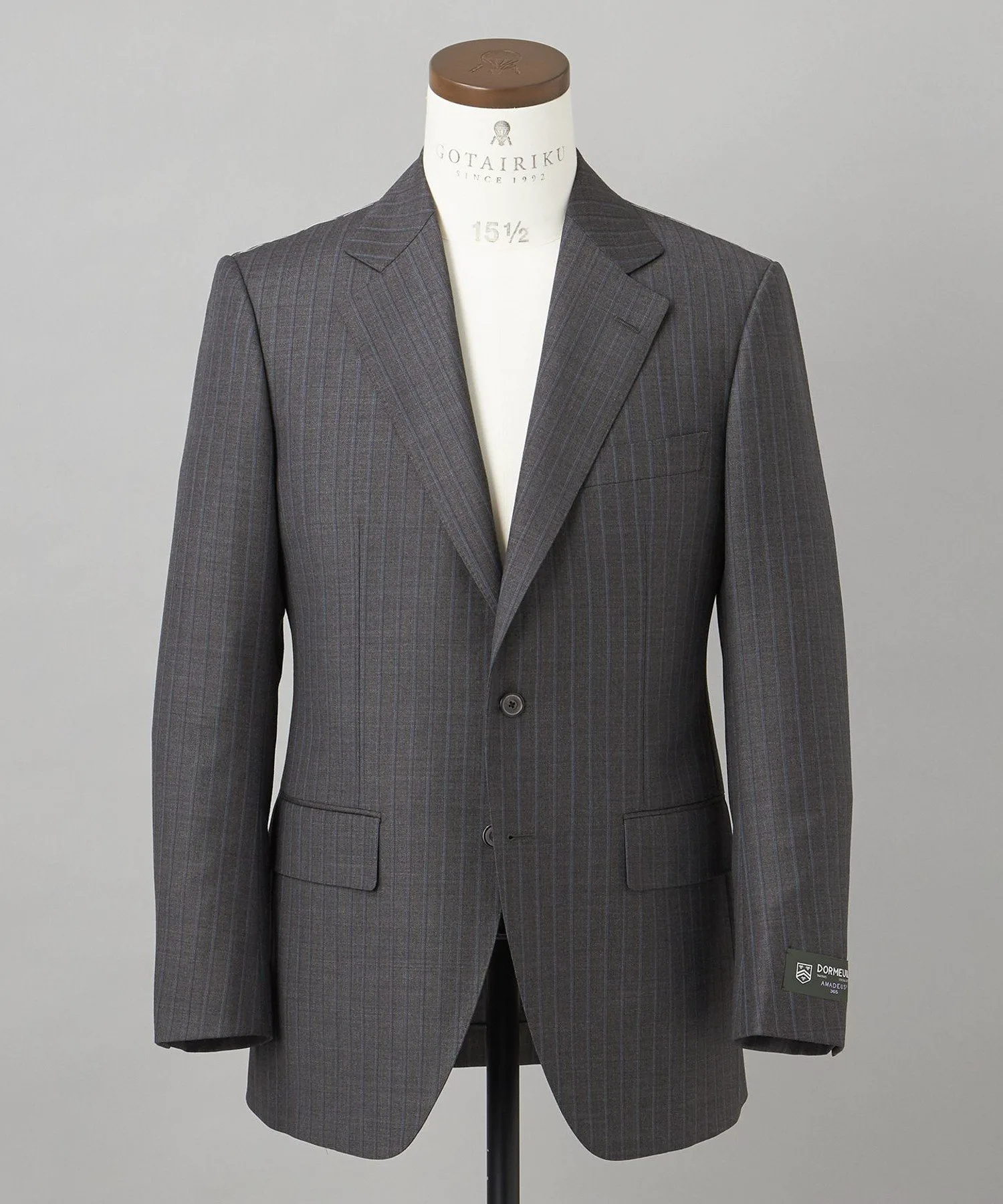 DORMEUIL: Основанная в 1842 году как французская торговая компания по продаже тканей. Это самобытный бренд, выражающий французский дух и элегантность, используя при этом прочные и простые технологии Великобритании. Gotairiku начала сотрудничество с Dormeuil в сезоне осень-зима 2013 года и вместе создала ряд оригинальных качественных изделий.