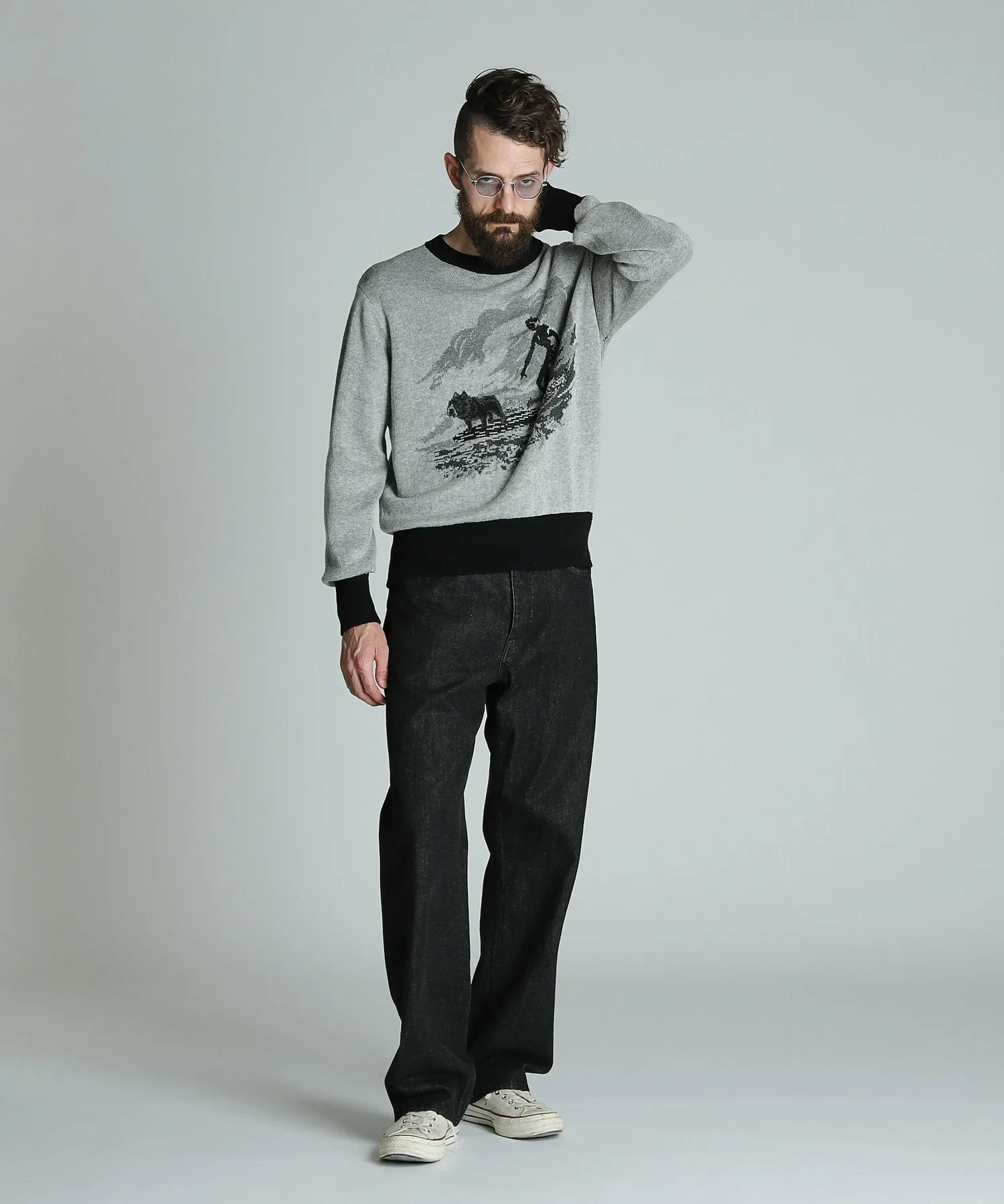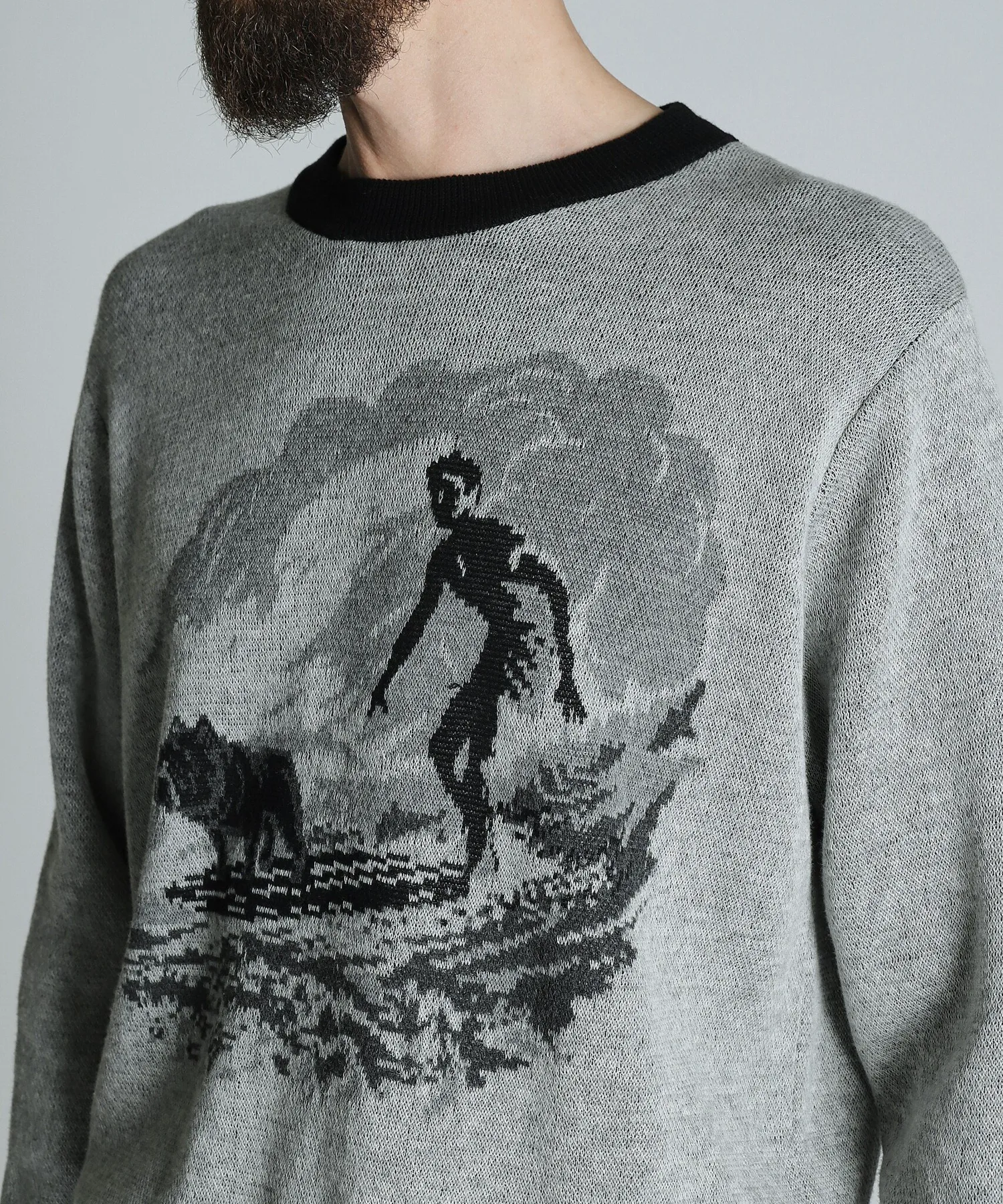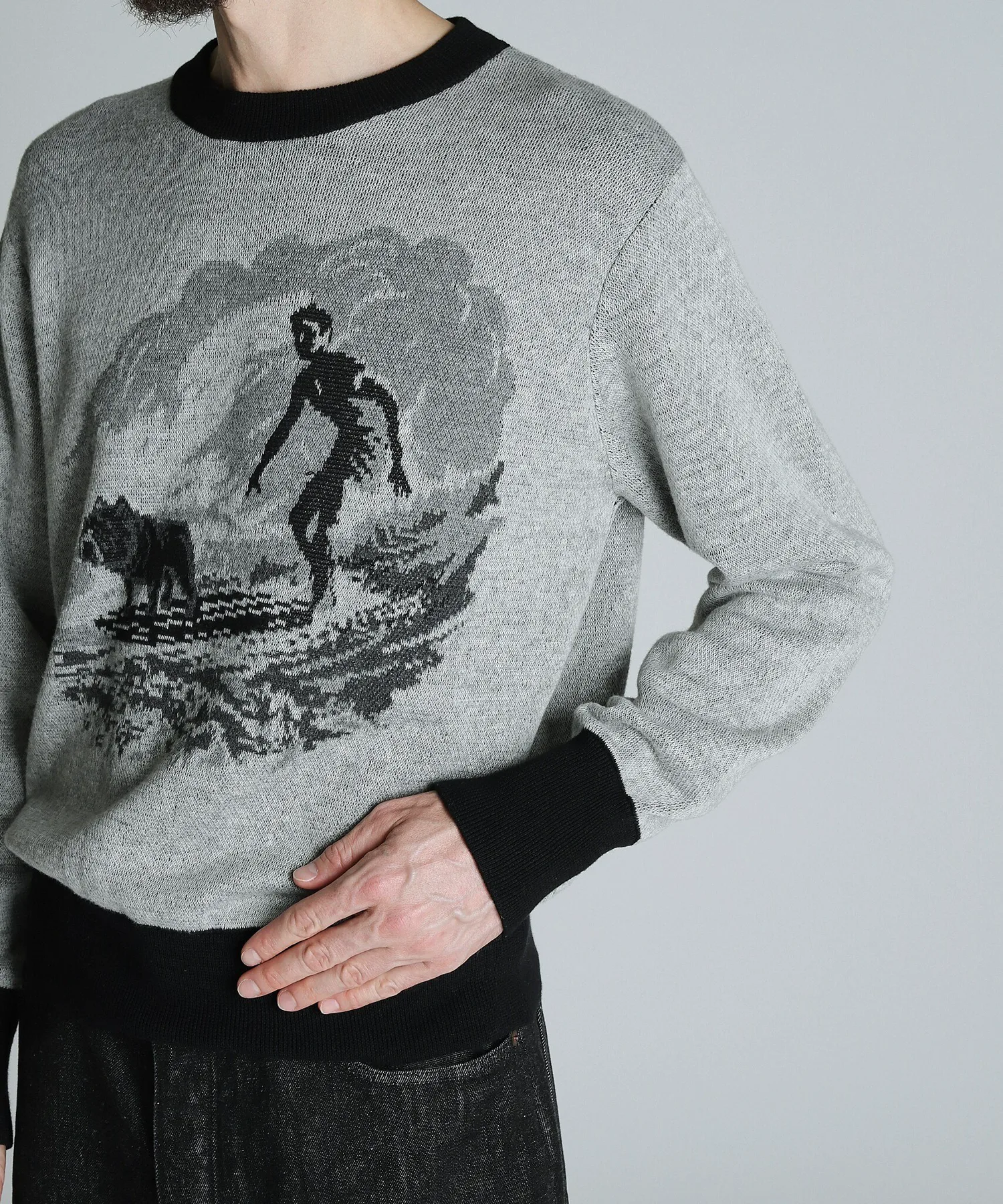 Этот свитер из 100% хлопка с двойным жаккардовым узором был создан путем разборки и анализа винтажной летней трикотажной одежды.