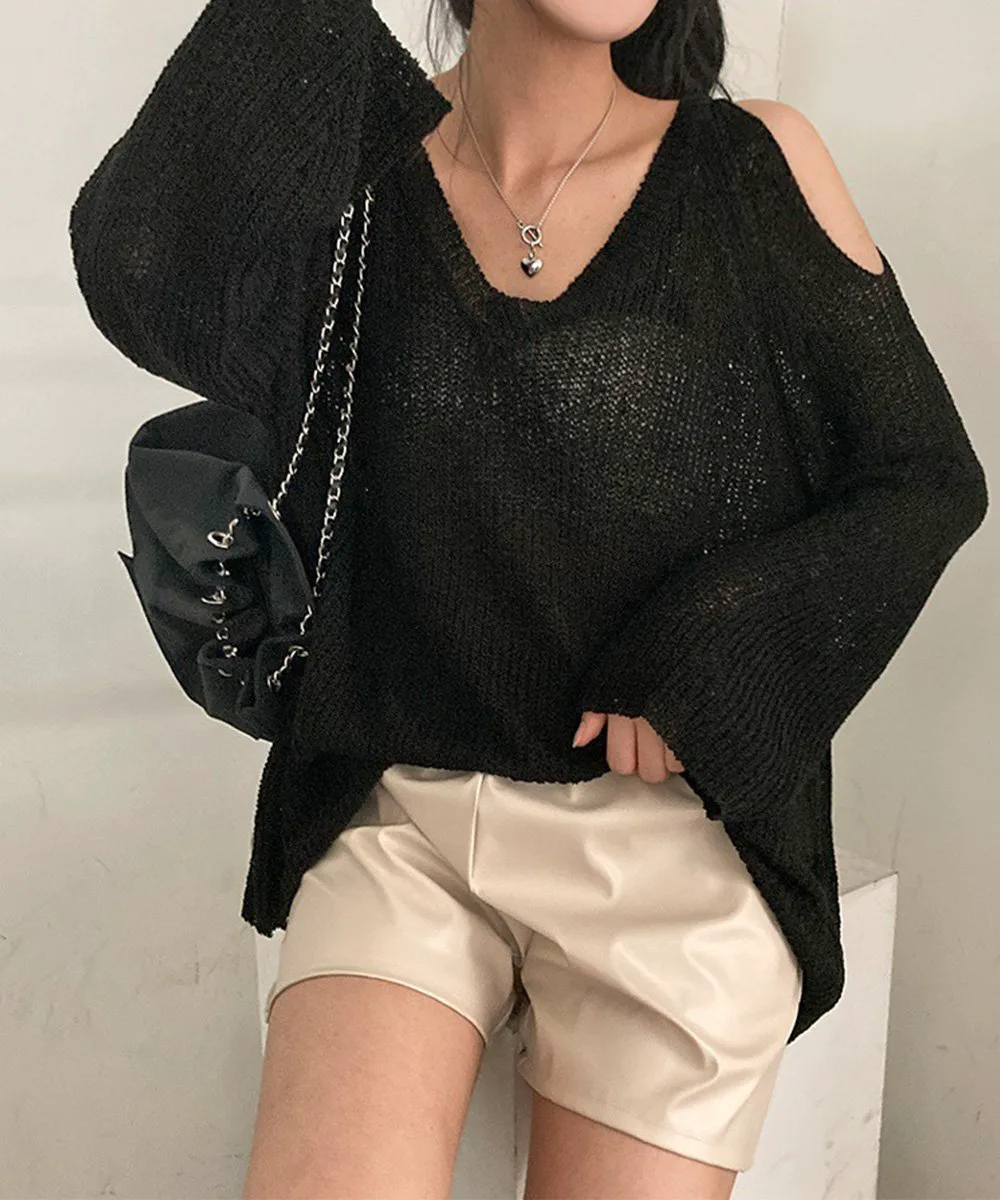 Вязаный свитер с V-образным вырезом и умеренной прозрачностью,