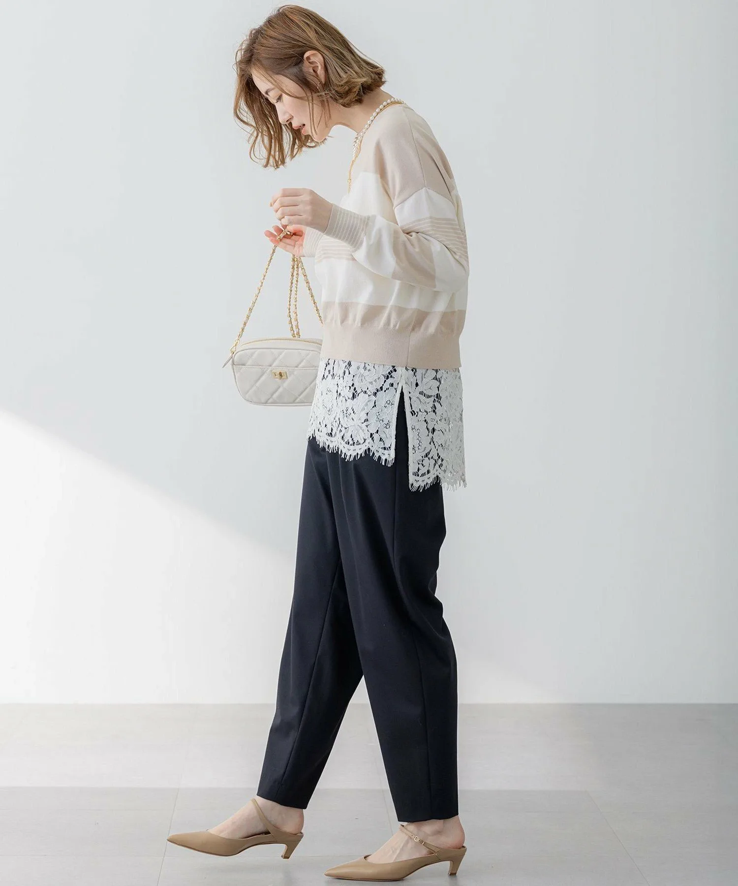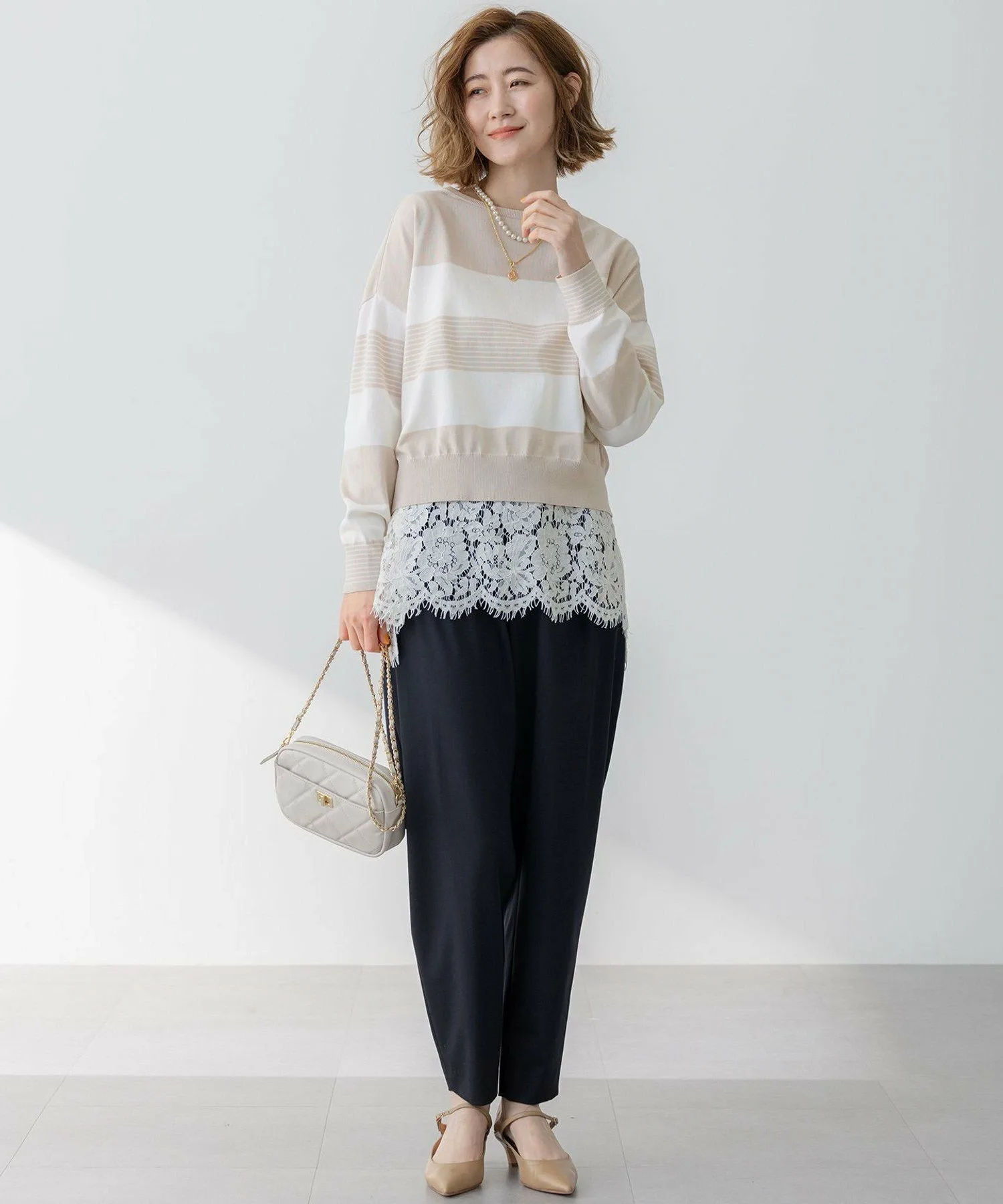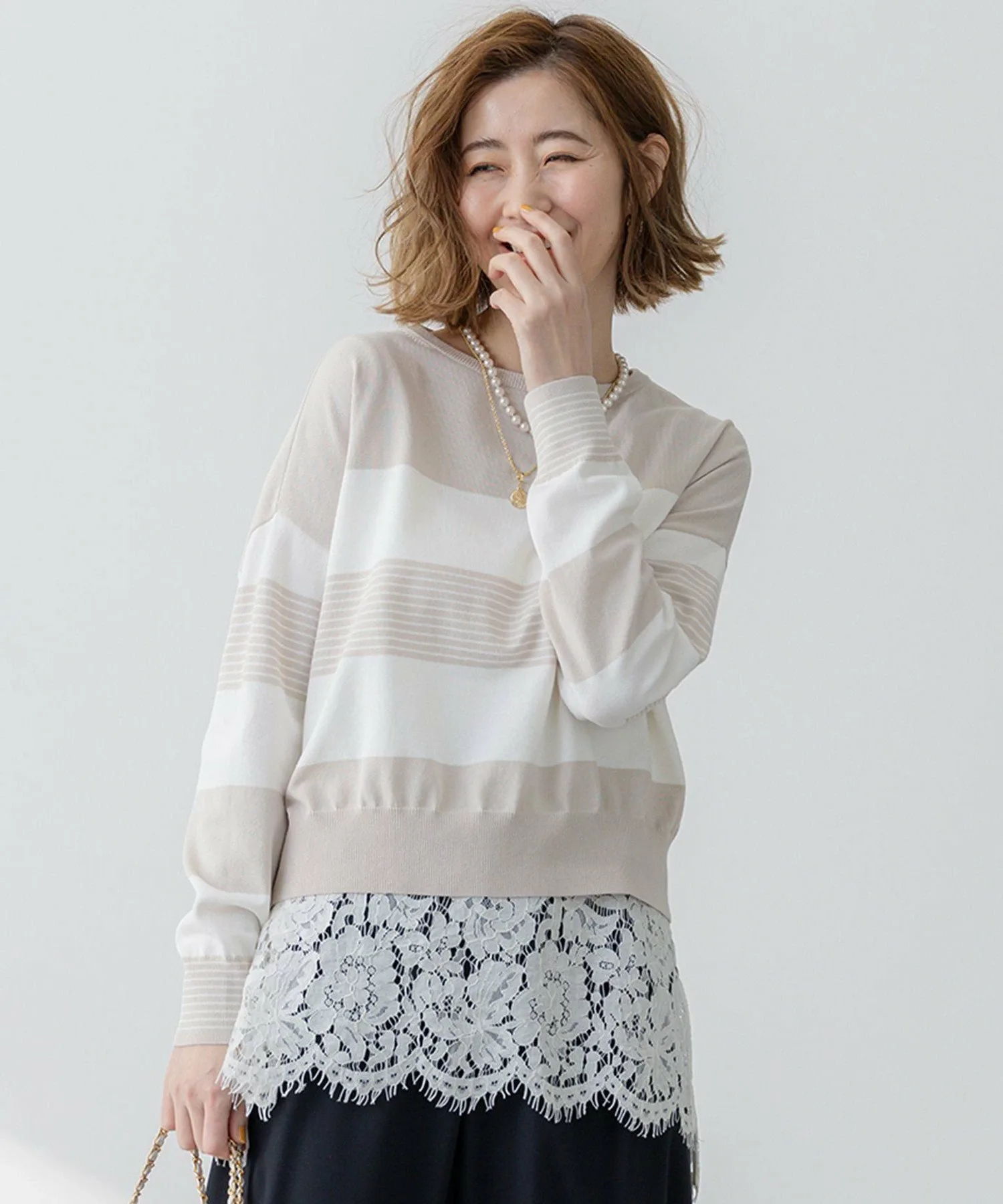 Трикотаж с длинными рукавами и короткой длиной, выполненный из трикотажа. Основная часть кардигана имеет свободный силуэт. Воротник-лодочка позволяет носить его с блузкой или сшитым на заказ топом в прохладное время года, или отдельно ранней весной, что делает его универсальным предметом гардероба на все сезоны. Сочетайте его с широкими брюками для создания расслабленного образа или с облегающими брюками или юбкой для более изысканного образа. Доступны только полосатые расцветки в трех цветах: мягкий бежевый x кремовый (#133), шикарный шалфейный x кремовый (#162) и элегантный темно-синий x кремовый (#175).