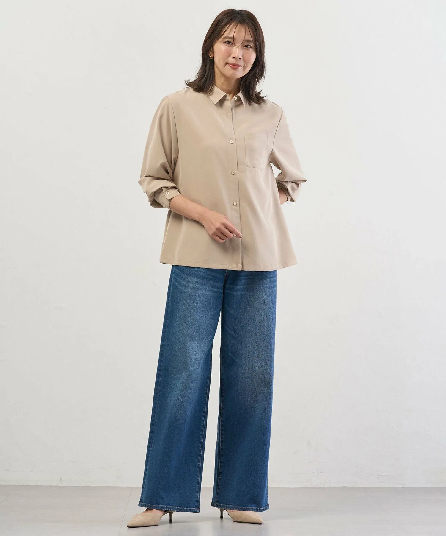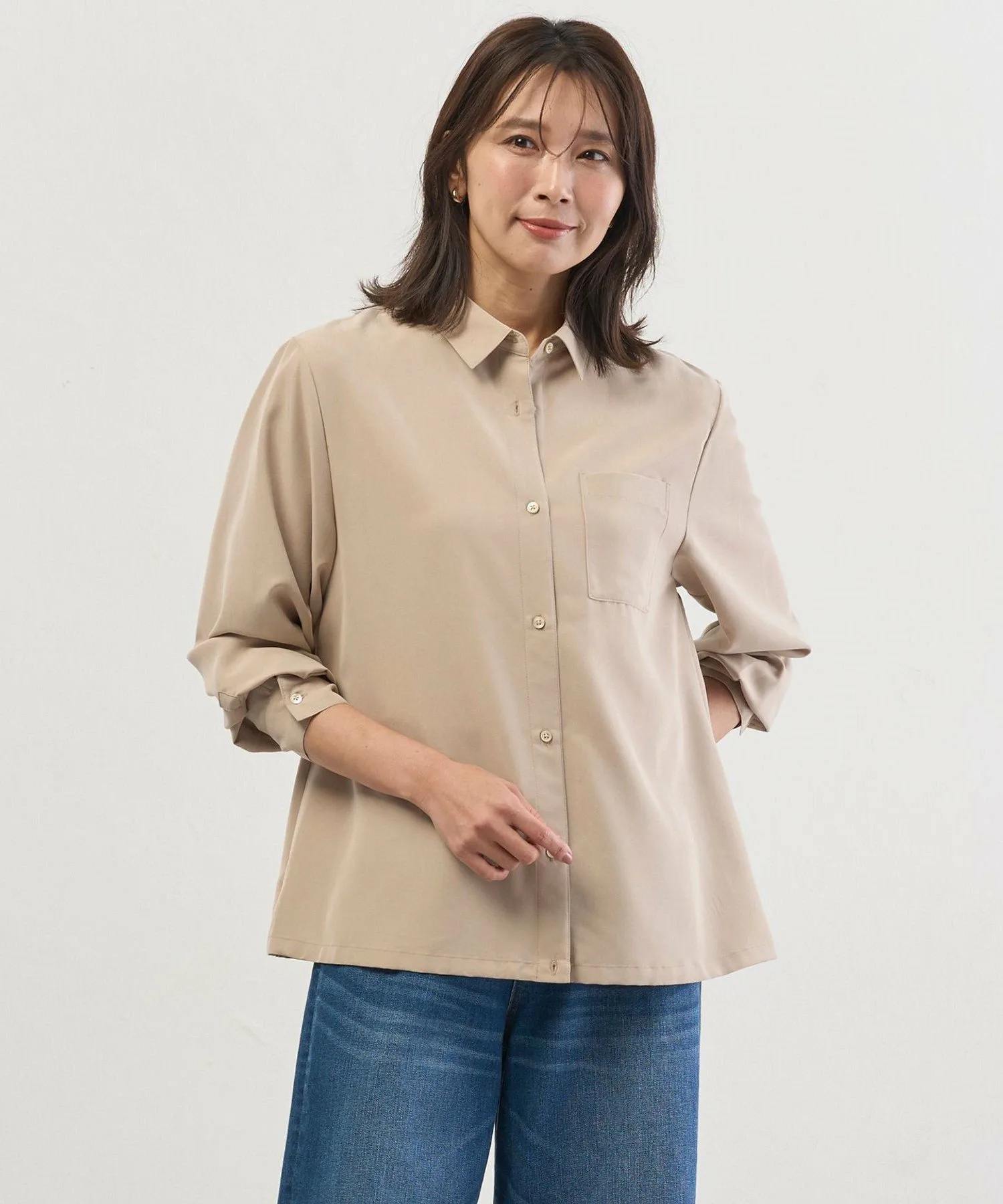 Эта универсальная блузка имеет затягивающийся низ для создания многогранного образа. Дизайн Эта блузка выполнена в свободном стиле рубашки с затягивающимся низом. Слегка затянутый низ создает трехмерный силуэт, что позволяет легко сочетать ее с соответствующими брюками или юбками. Она отлично смотрится как сама по себе, так и в качестве легкой куртки, а также хорошо сочетается с нарядными брюками или юбками. Это универсальная вещь, которая создает изысканный повседневный стиль и может носиться в течение всего сезона. Доступна в трех цветах: успокаивающий и теплый бежевый мокко (#030), натуральный и воздушный бежевый песочный (#033) и освежающий и утонченный дымчато-мятный (#062). Материал: Этот фибриллярный материал идеально подходит для прохладного времени года. Смесь вискозы создает красивую драпировку, а поверхность ткани имеет тонкую, ворсистую текстуру, напоминающую персиковую кожу (персиковая текстура). Такая обработка создает мягкое, влажное ощущение на коже. Ткань тоньше, чем кажется, и имеет приятную на ощупь драпировку, благодаря чему её удобно носить. Она не прилипает к коже, гладкая и комфортная, что делает её универсальным материалом, подходящим для переходных сезонов и начала осени. Товары из того же материала: Полуширокие брюки (PRGJLS0230) Большой размер (PRGTLS0230) Маленький размер (PRG0LS0230) *Большой размер L доступен только в рамках обычной распродажи. *Изображения товара являются образцами, поэтому обратите внимание, что цвет, размер и другие характеристики могут быть изменены. Модель: H171 B80 W58 H86
