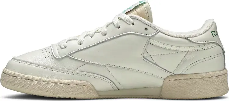 Reebok Club C 85 Vintage остается верным своим корням 80-х с кожаным верхом мелового белого цвета и внутренней подкладкой из махровой ткани. Контрастные всполохи Glen Green появляются на логотипах Reebok, которые украшают боковую панель, язычок на пятке и тканую бирку на язычке. Низкопрофильный силуэт установлен на вырубленной промежуточной подошве из ЭВА, окрашенной в тональный оттенок Off-White.