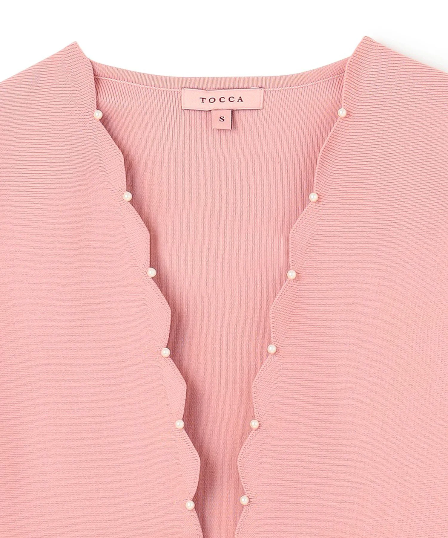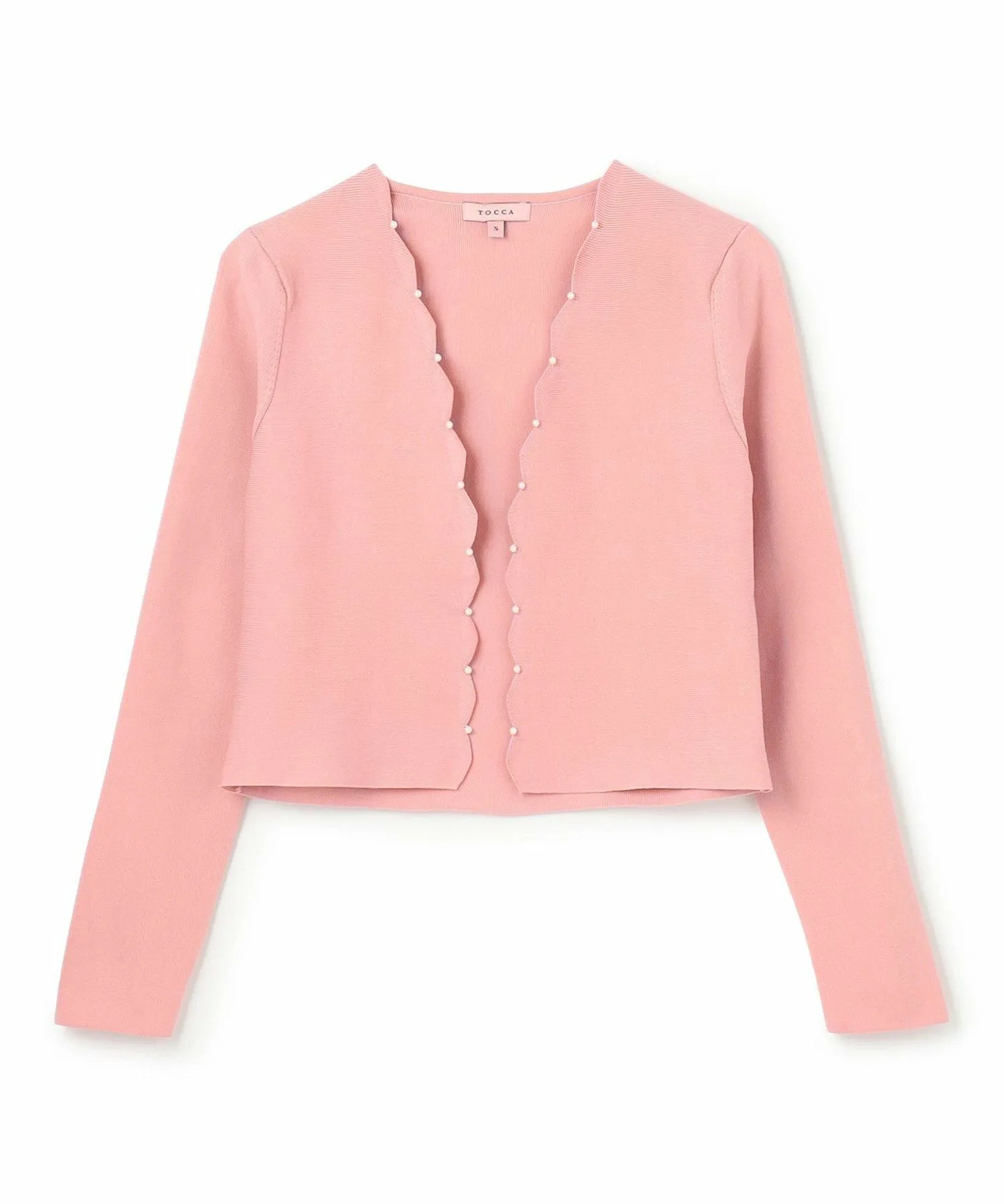 Это болеро отличается очаровательным дизайном, сочетающим фестоны и жемчужные бусины.